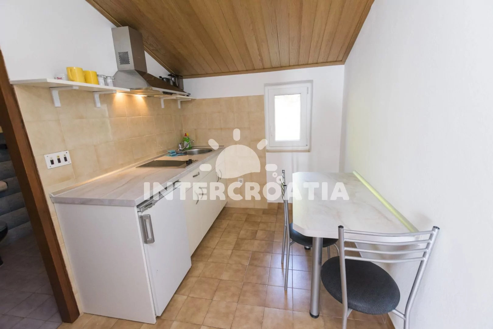 Apartmán s vlastní terasou a výhledem na moře se nachází v podkroví domu a je vhodný pro 2 osoby. Kuchyň je vybavena jídelním stolem pro 2 osoby, kuchyňskou linkou s dvouplotýnkovým sporákem,…