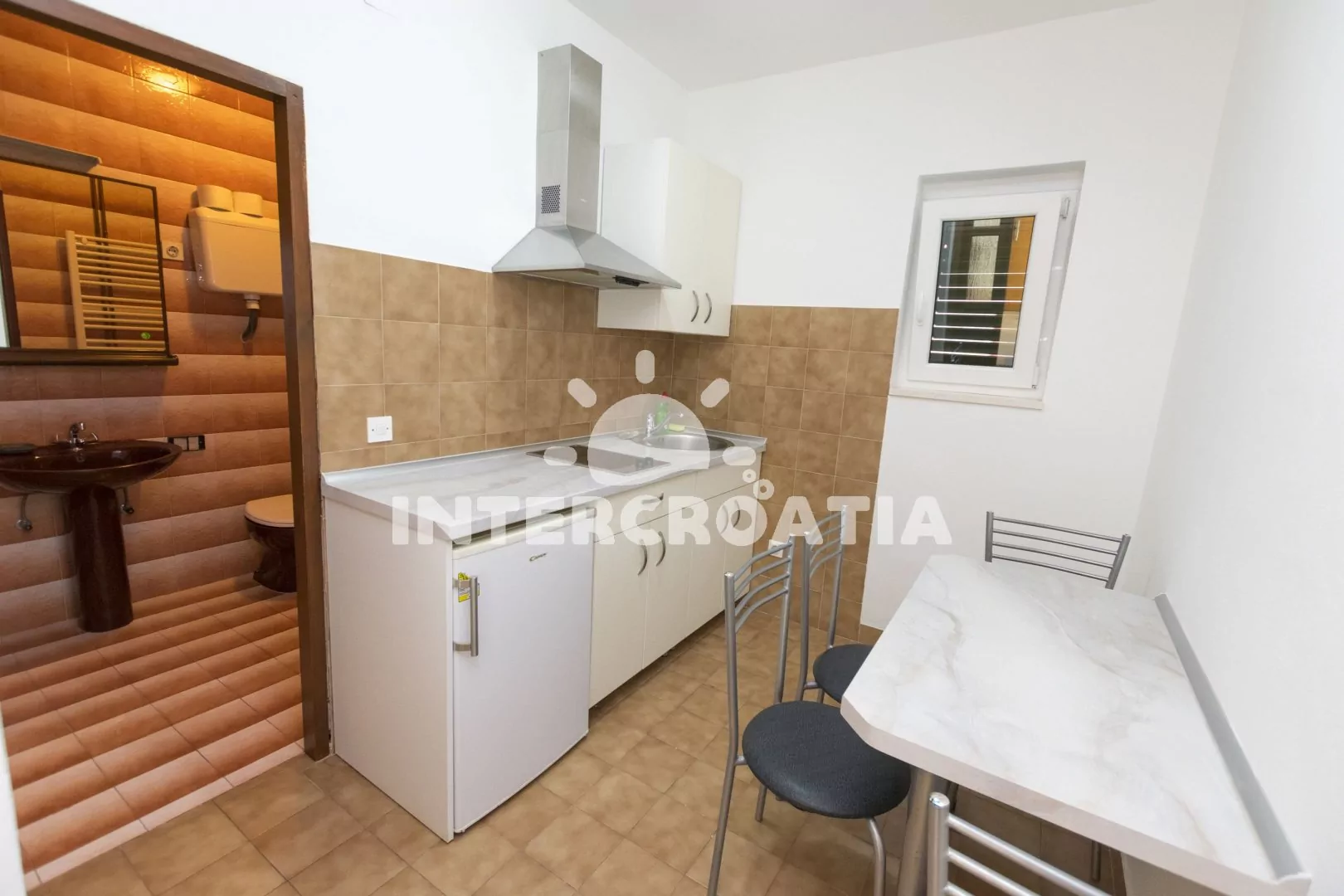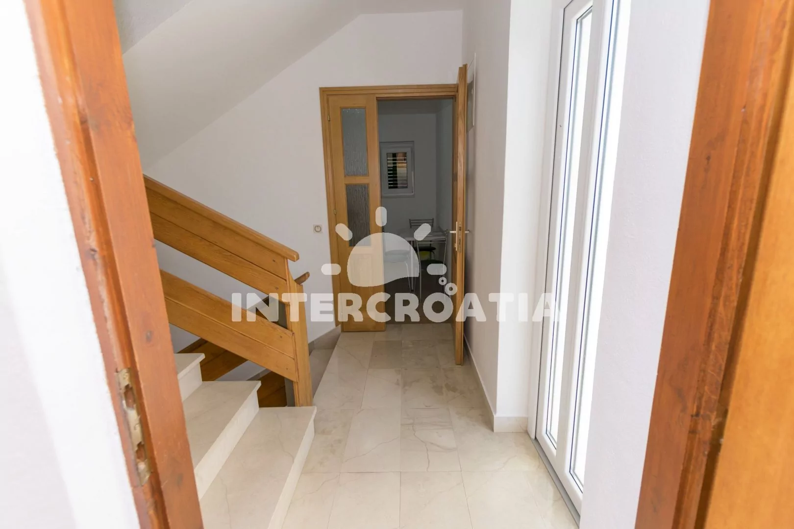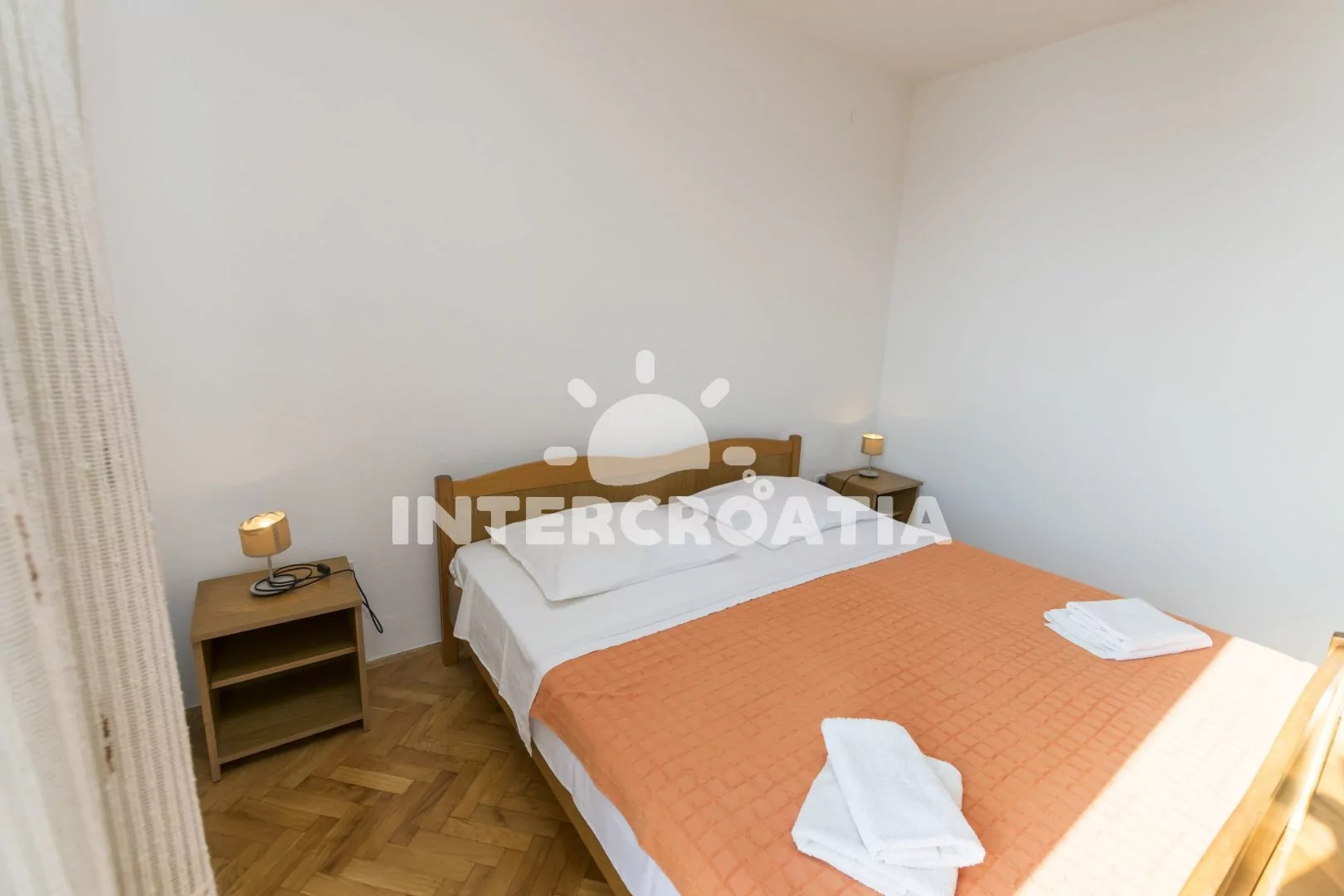 Apartmán s vlastní terasou a výhledem na moře se nachází v prvním patře domu a je vhodný pro 4 osoby. Kuchyň je vybavena jídelním stolem pro 4 osoby, kuchyňskou linkou s dvouplotýnkovým sporákem, digestoří, nádobím a lednicí s mrazákem. První ložnice je vybavena jedním dvoulůžkem a vstupem na terasu. Druhá ložnice s dvěma jednolůžky. Koupelna se sprchovým koutem, umyvadlem a wc. Apartmán se skládá ze dvou samostatných částí, oddělených schodištěm. V jedné části je kuchyň a koupelna a ve druhé části jsou ložnice.Hostům je k dispozici parkování u objektu zdarma.