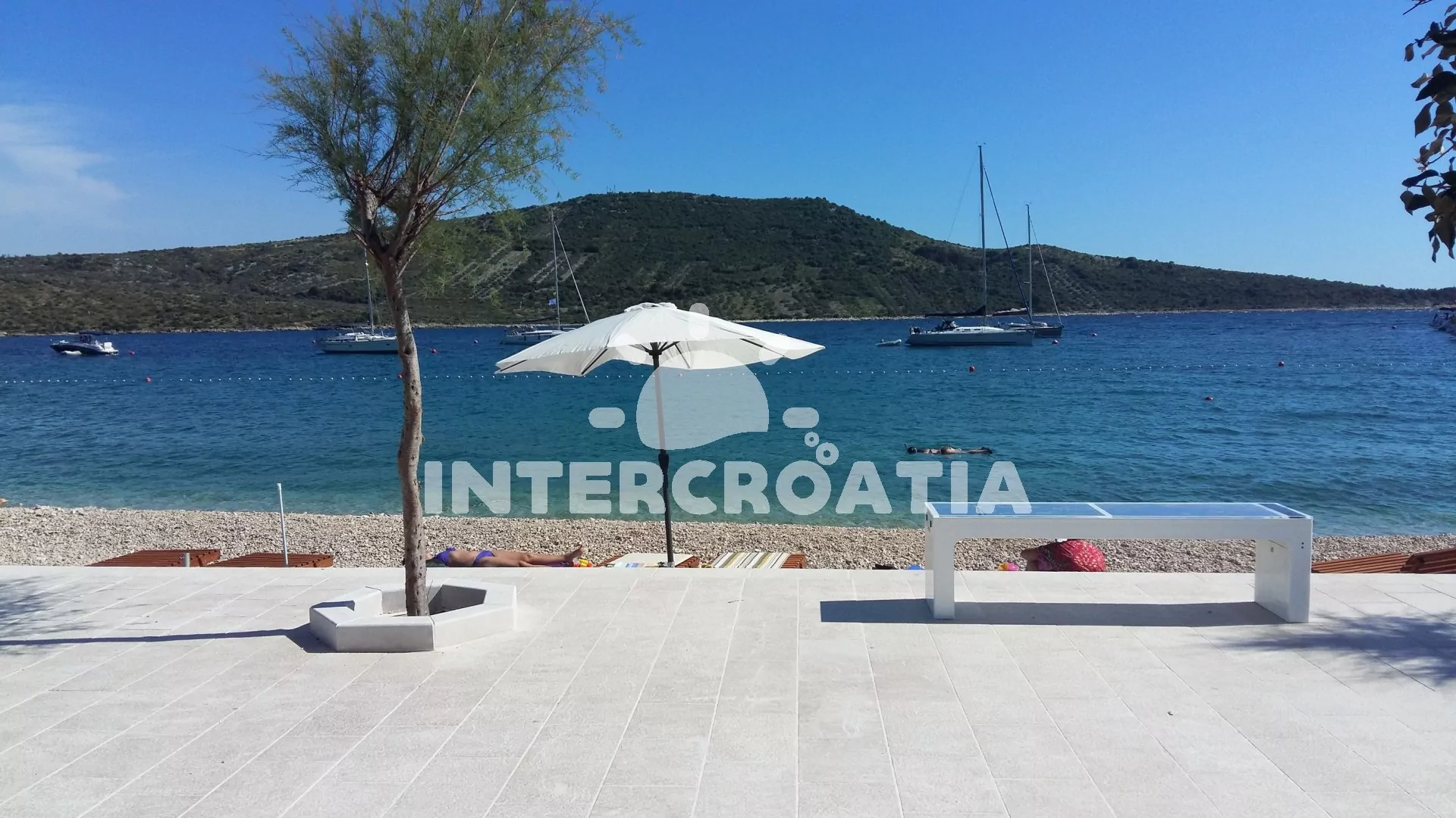 Vzdálenosti: Moře a oblázková pláž 70 m, supermarket 75 m, půjčovna motorových člunů, lékárna 200 m, čerpací stanice 230 m, veřejná doprava 250 m, restaurace 270 m, pošta 280 m, banka, směnárna 300 m, centrum , půjčovna cyklistických kol 350 m, tenis 450 m, minigolf 500 m, ambulance 1,2 km, diskotéka 1,5 km, přístav 2 km, letiště 30 km, trajekt 60 km.