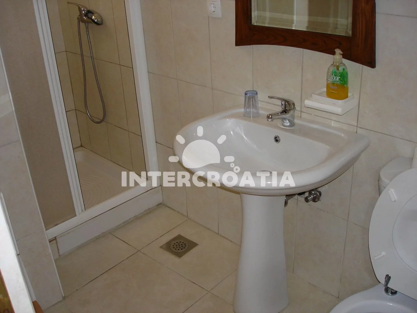 Apartmán (23 m2) s terasou se nachází v 1. patře domu. Apartmán má 1 ložnici a je vhodný pro 2 až 3 osoby. Obývací pokoj je spojený s kuchyní. Kuchyňská linka je vybavena dvouplotýnkovým vařičem, nádobím a lednicí s mrazákem. Obývací pokoj s jídelním stolem, pohovkou (rozložitelná na extra lůžko pro 1 osobu), televizí se satelitním programem, klimatizací a vstupem na terasu. Ložnice s dvoulůžkem. Koupelna se sprchovým koutem, umyvadlem a wc.