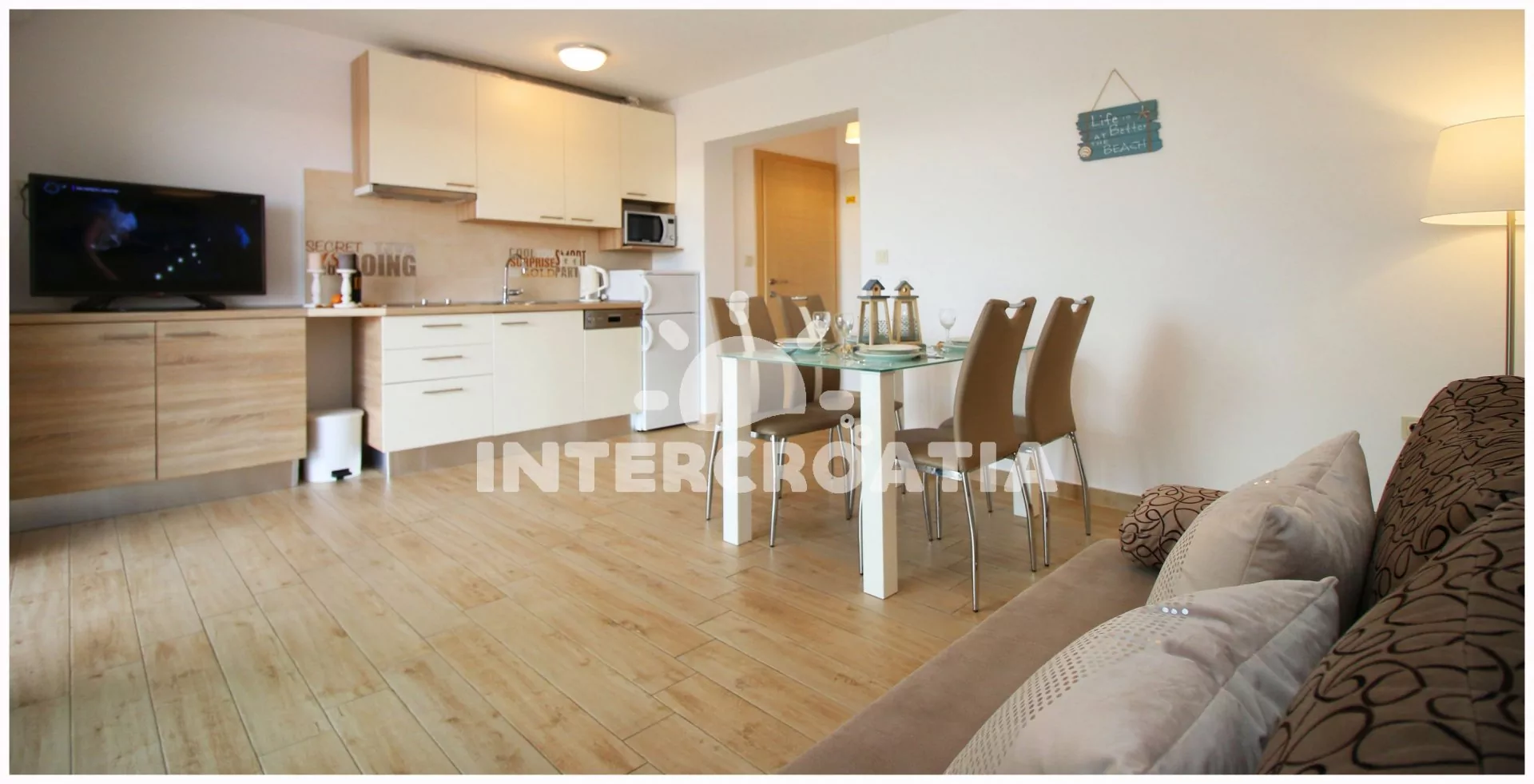 Vzdálenosti: Moře a pláž (oblázková a větší kamení) 150 m, centrum 100 m, supermarket 65 m, restaurace 150 m, bar 200 m, banka, tenisové kurty, mini golf a půjčovna cyklistických kol 150 m, pošta a směnárna 100 m, lékárna a čerpací stanice 200 m, ambulance 2 km, potápěčský klub 500 m, veřejná doprava 100 m, přístav 2 km, diskotéka 2,5 km, trajekt 60 km, letiště (Split) 30 km.