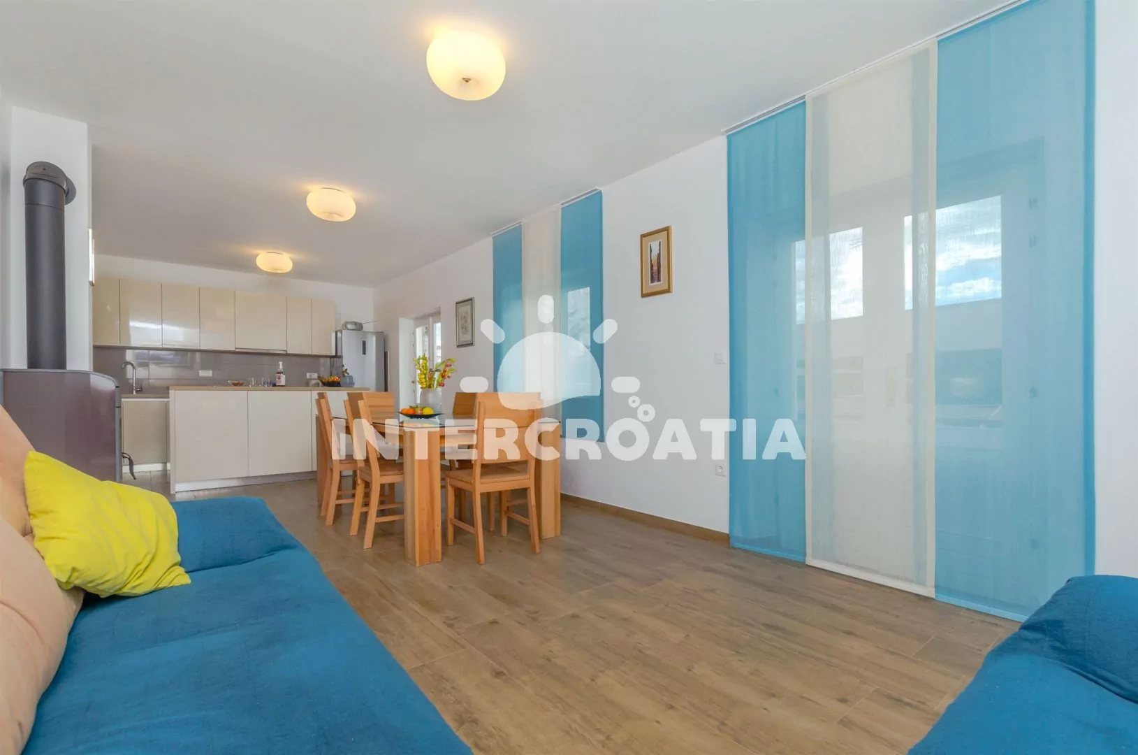 Vzdálenosti: Moře 250 m, pláž (oblázková a větší kamení) 300 m, supermarket 150 m, centrum, restaurace, bar a veřejná doprava 250 m, pošta a banka 200 m, směnárna 165 m, čerpací stanice 160 m, půjčovna cyklistických kol 225 m, lékárna 260 m, tenisové kurty a mini golf 300 m, potápěčský klub 550 m, ambulance 2 km, diskotéka a přístav 2,5 km, park Plitvice 45 km, trajekt (Split) 60 km, letiště (Split) 30 km.