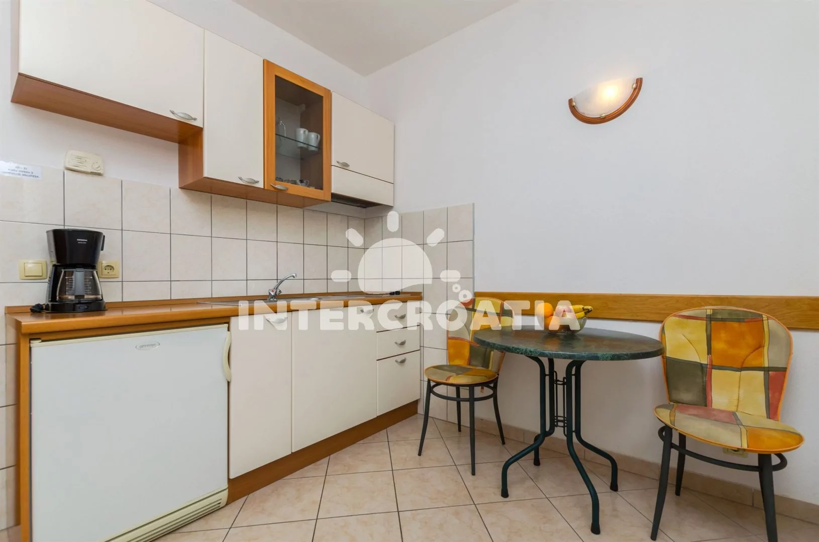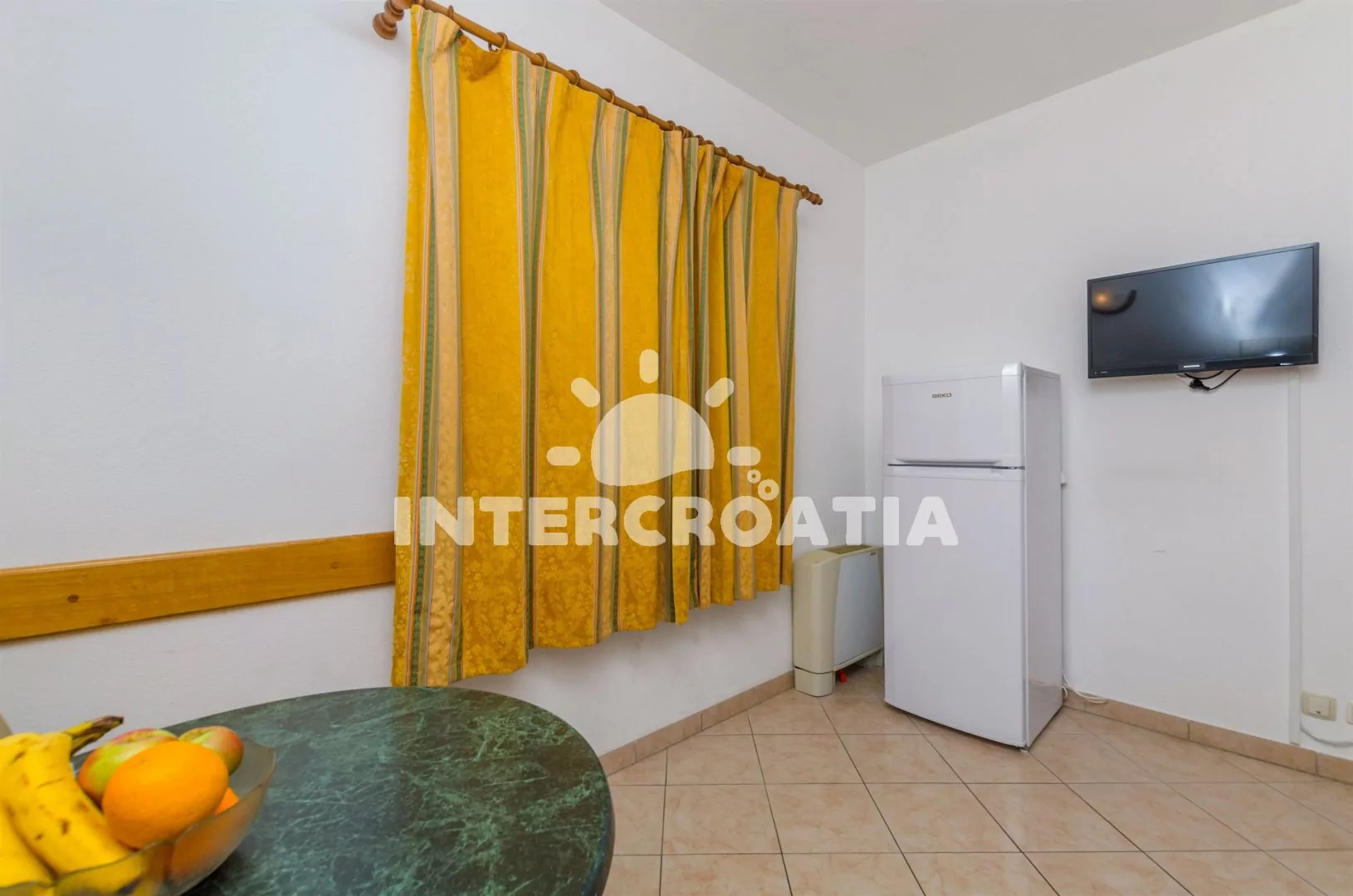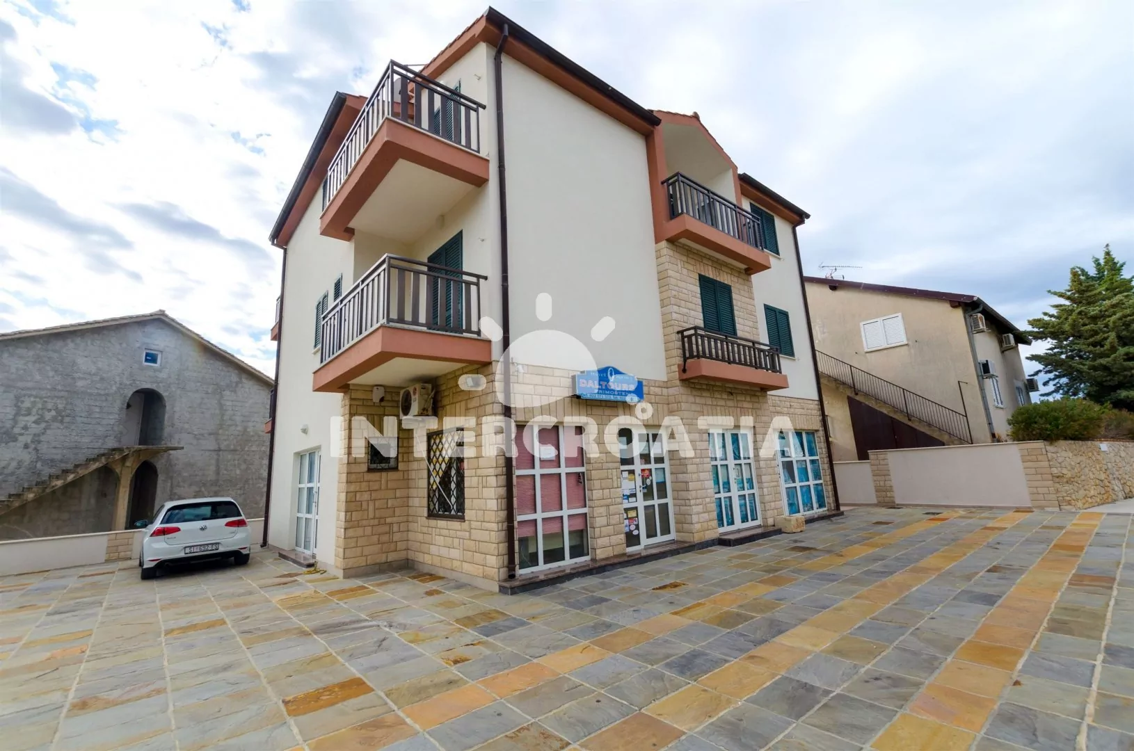 Vzdálenosti: Moře a oblázková pláž 200 m, supermarket 100 m, restaurace a lékárna 200 m, bar a čerpací stanice 300 m, banka 160 m, pošta 140 m, veřejná doprava 180 m, tenisové kurty, mini golf a půjčovna cyklistických kol 250 m, směnárna 180 m, centrum 250 m, potápěčský klub 400 m, ambulance 2 km, diskotéka a přístav 2,5 km, park Plitvice (45 km), letiště (Split) 35 km, trajekt 60 km.