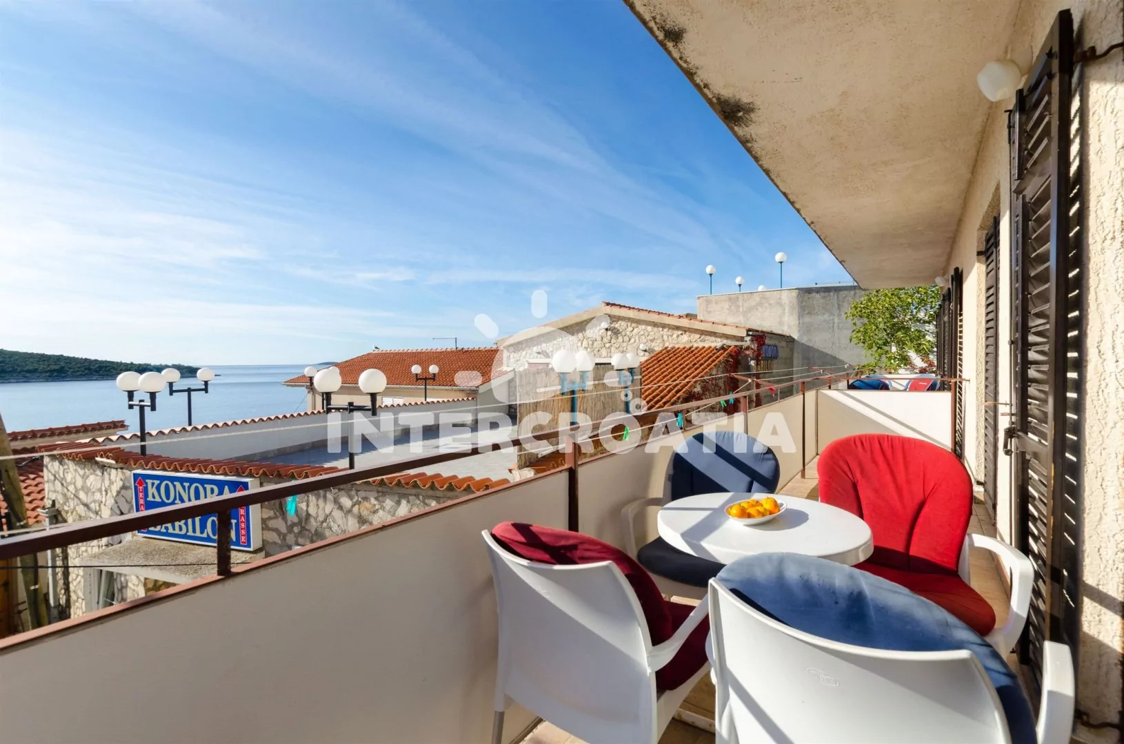 Apartmán (45 m2) s balkonem a výhledem na moře se nachází v 1. patře domu. Apartmán má 2 ložnice a je vhodný pro až 4 osoby. Obývací místnost je spojena s kuchyní. Kuchyňská linka je vybavena…