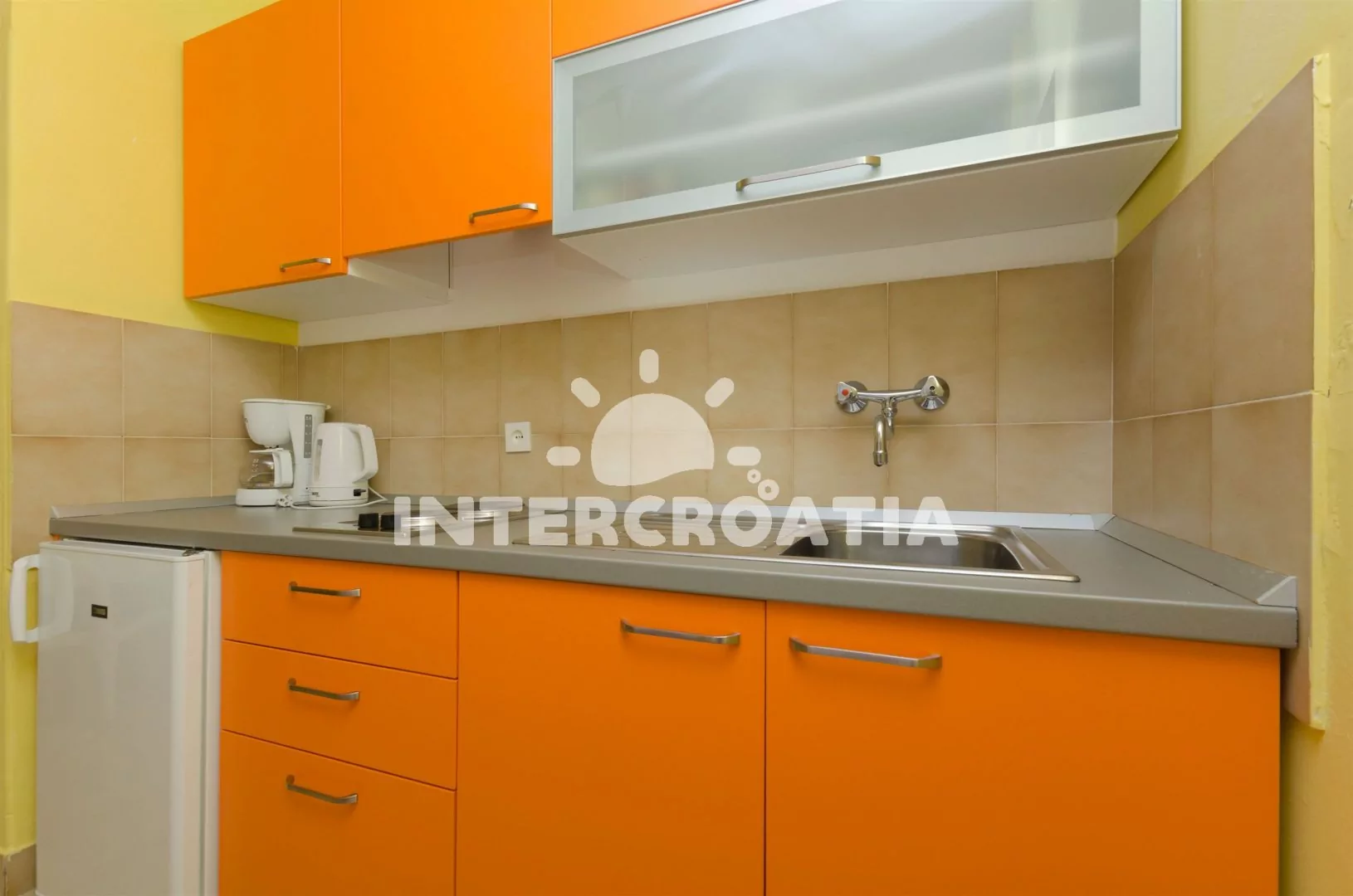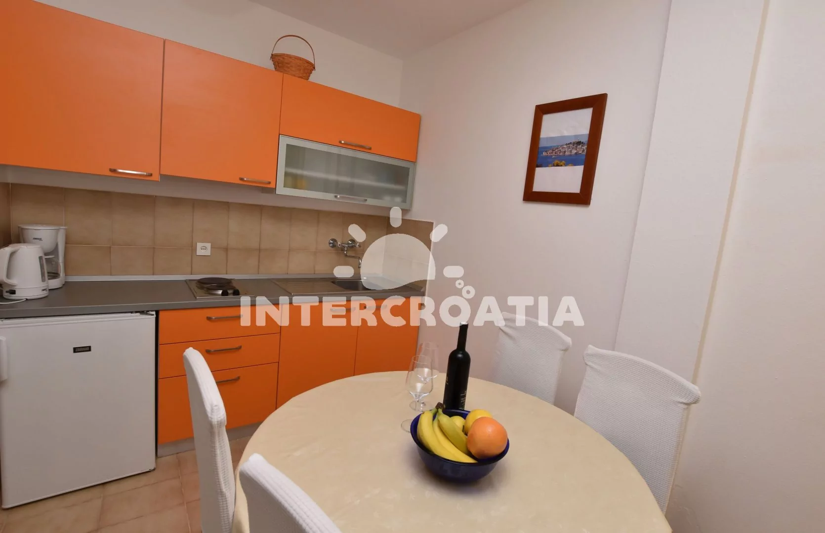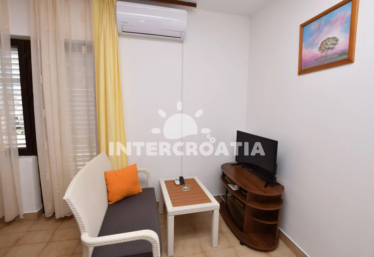 Apartmán (45 m2) s balkonem a výhledem na moře se nachází v 1. patře domu. Apartmán má 2 ložnice a je vhodný pro až 4 osoby. Obývací místnost je spojena s kuchyní. Kuchyňská linka je vybavena dvouplotýnkovým vařičem, rychlovarnou konvicí, kávovarem, nádobím a lednicí s mrazákem. Obývací místnost s jídelním stolem, televizí se satelitním programem a klimatizací. Koupelna s vanou, umyvadlem a wc. Hostům je k dispozici parkování pro automobily 500 - 1000 m od objektu zdarma.