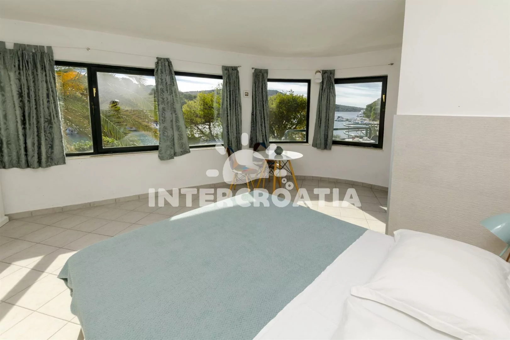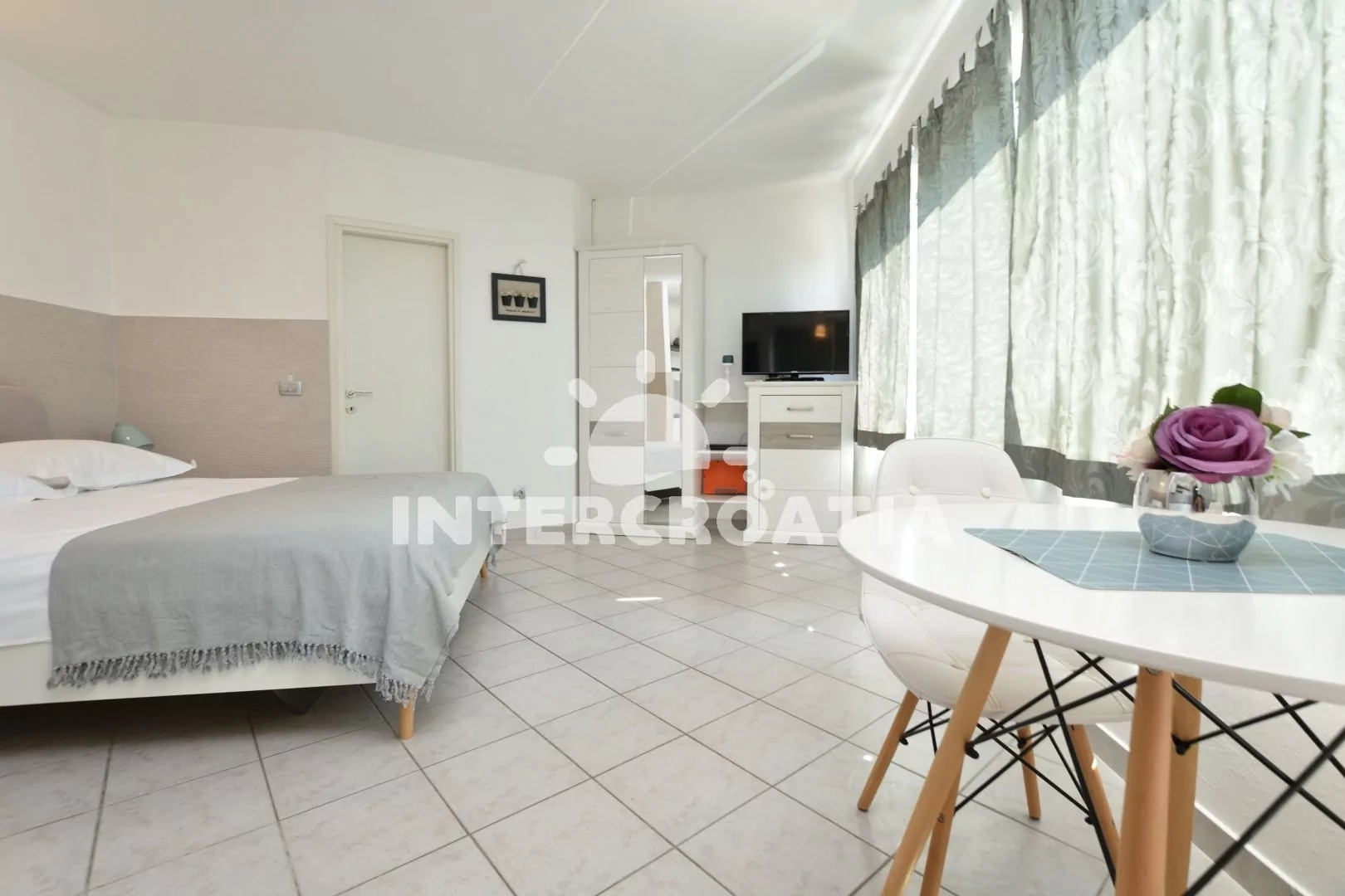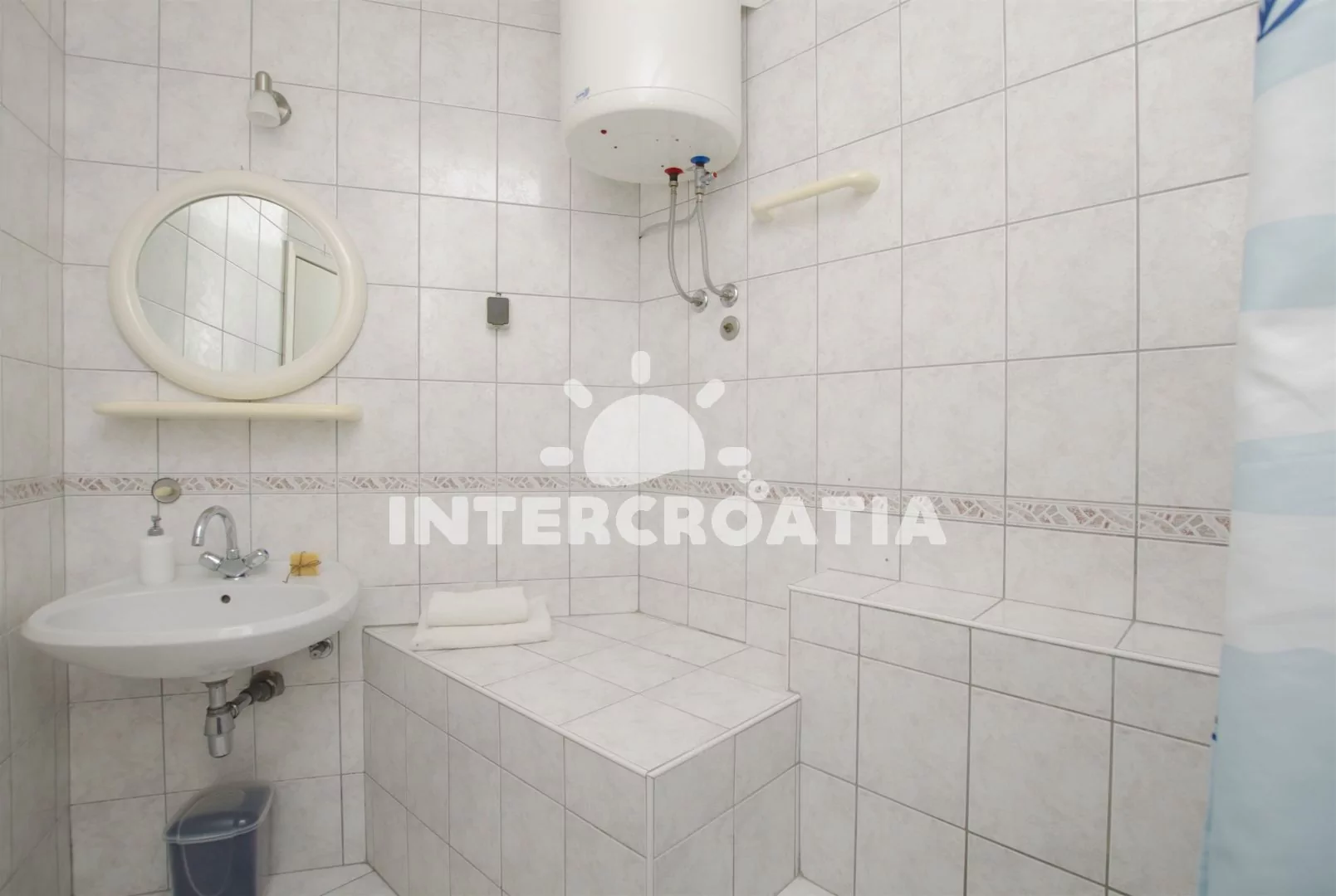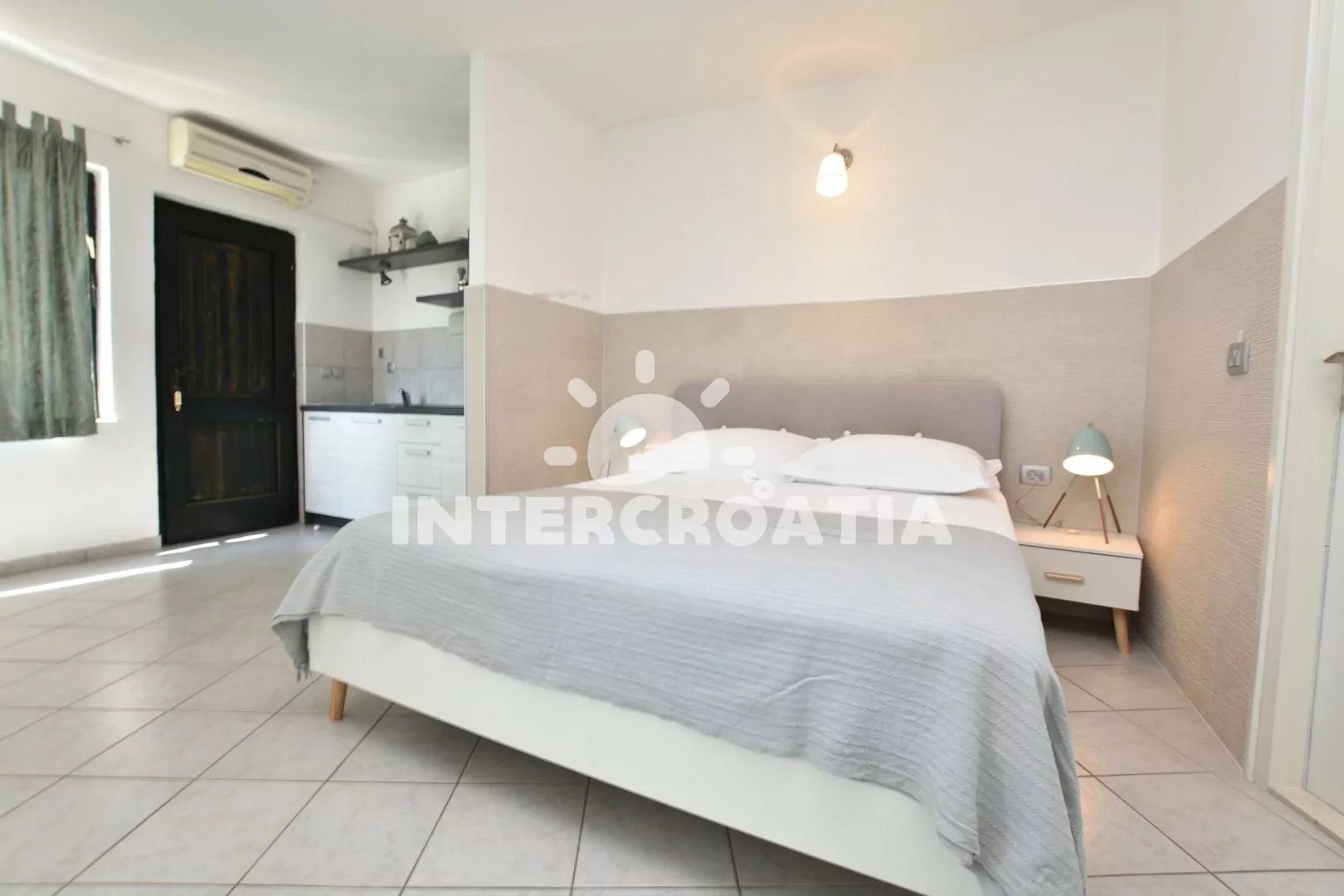 Apartmán (25 m2) typu studio s balkonem a výhledem na moře se nachází v 1. patře domu. Apartmán je vhodný pro 2 osoby. Obývací místnost je spojena s kuchyní. Kuchyňská linka je vybavena dvouplotýnkovým vařičem, rychlovarnou konvicí, kávovarem, nádobím a lednicí s mrazákem. Obývací místnost s jídelním stolem, dvoulůžkem, televizí se satelitním programem, klimatizací a vstupem na balkon. Koupelna se sprchovým koutem, umyvadlem, fénem a wc. Hostům je k dispozici parkování u objektu zdarma.
