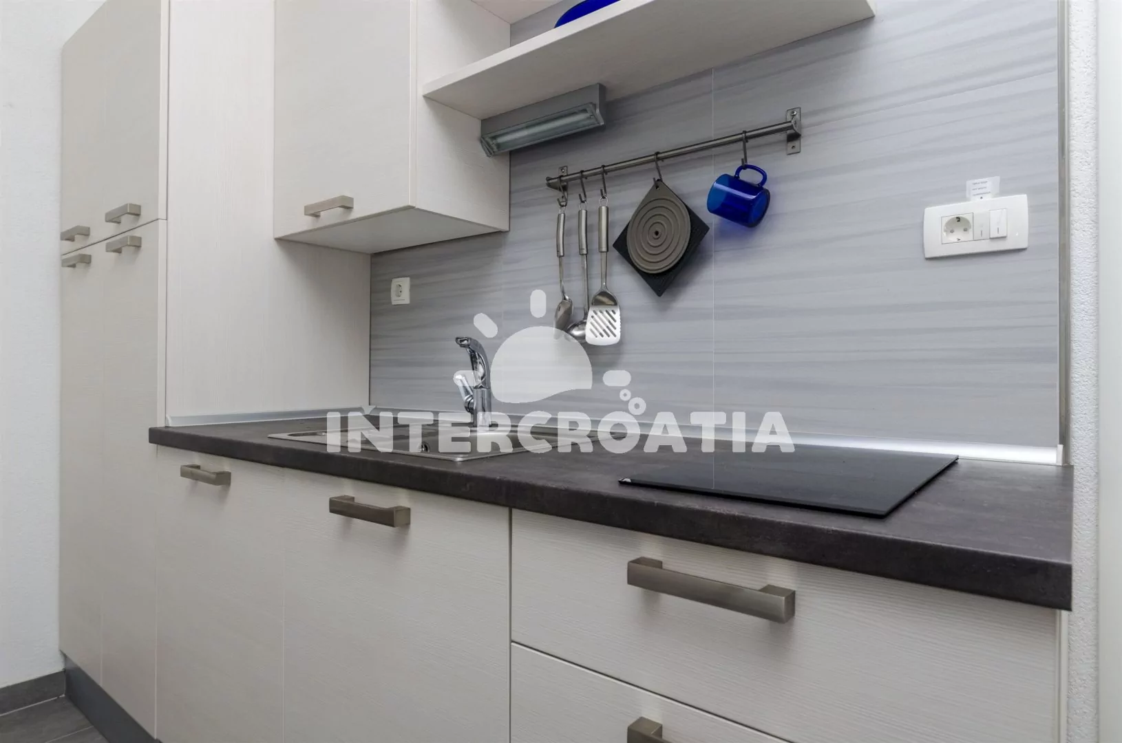 Podkrovní apartmán (25 m2) typu studio s balkonem a výhledem na moře. Apartmán je vhodný pro 2 osoby. Obývací místnost je spojena s kuchyní. Kuchyňská linka je vybavena dvouplotýnkovým vařičem,…