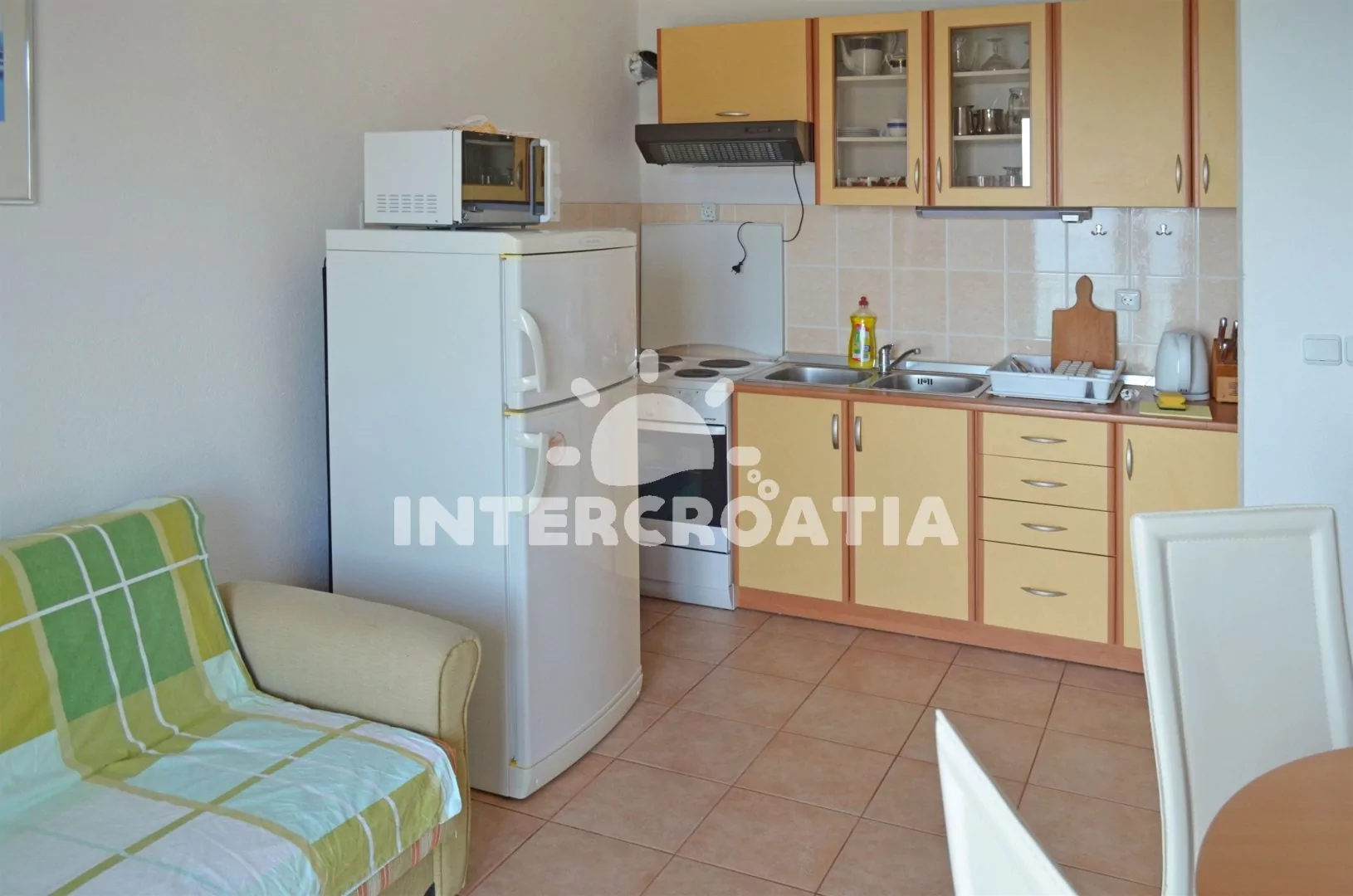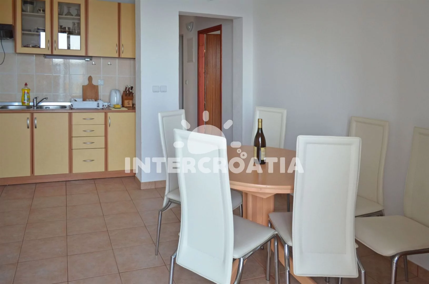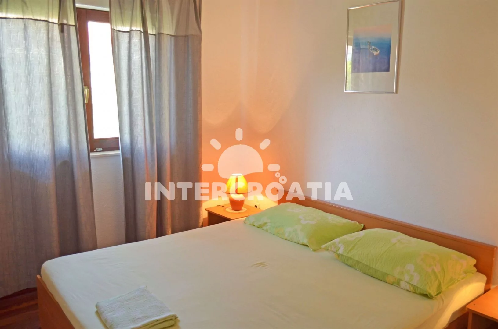Apartmán (55 m2) s balkonem a výhledem na moře se nachází v 1. patře domu. Apartmán má 2 ložnice a je vhodný pro 4 až 5 osob. Obývací pokoj je spojený s kuchyní. Kuchyňská linka je vybavena sporákem…