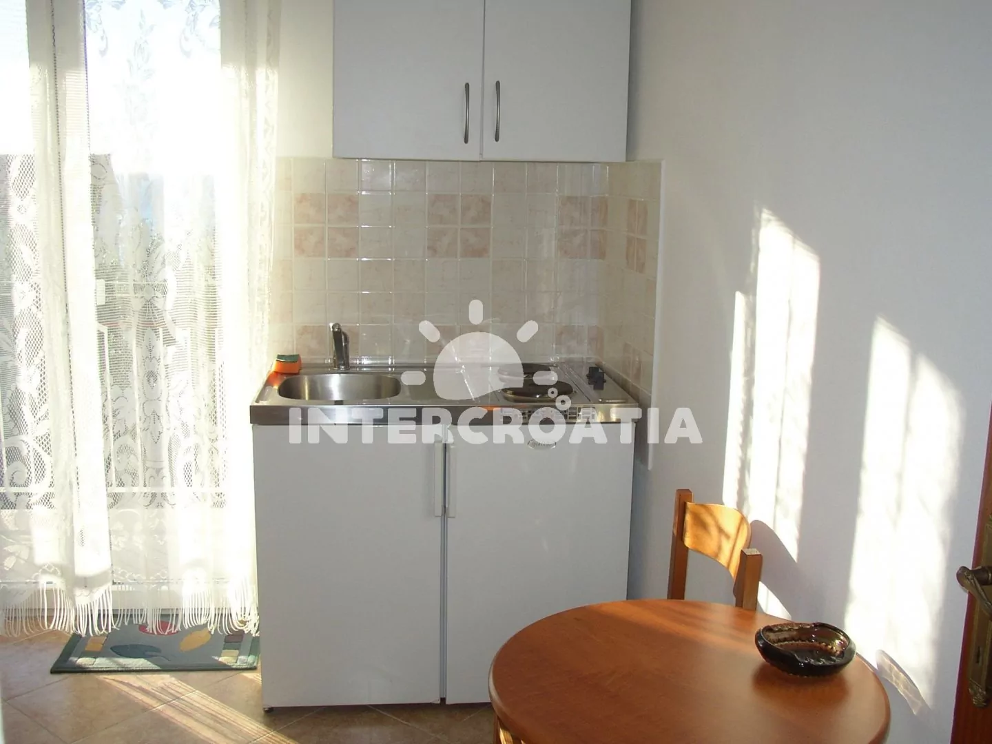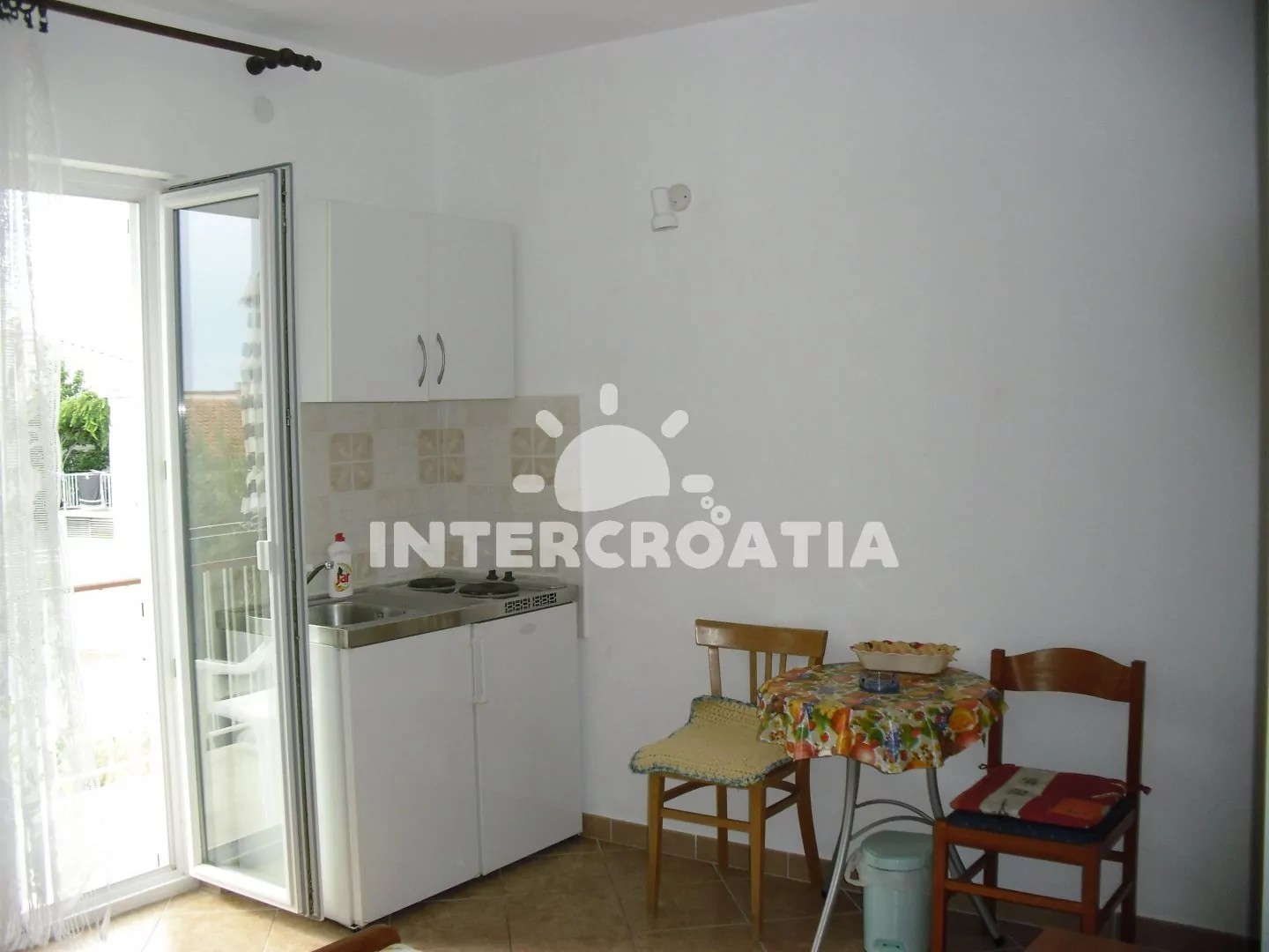 Apartmán (25 m2) typu studio se nachází ve zvýšeném přízemí a je vhodný maximálně pro 2 osoby. Ložnice s dvoulůžkem a vstupem na balkon. Kuchyňský kout s varnou deskou, nádobím, malou chladničkou a jídelním stolem. Klimatizace k dispozici. Koupelna se sprchou, umyvadlem a wc. Hostům je k dispozici parkování u objektu zdarma.