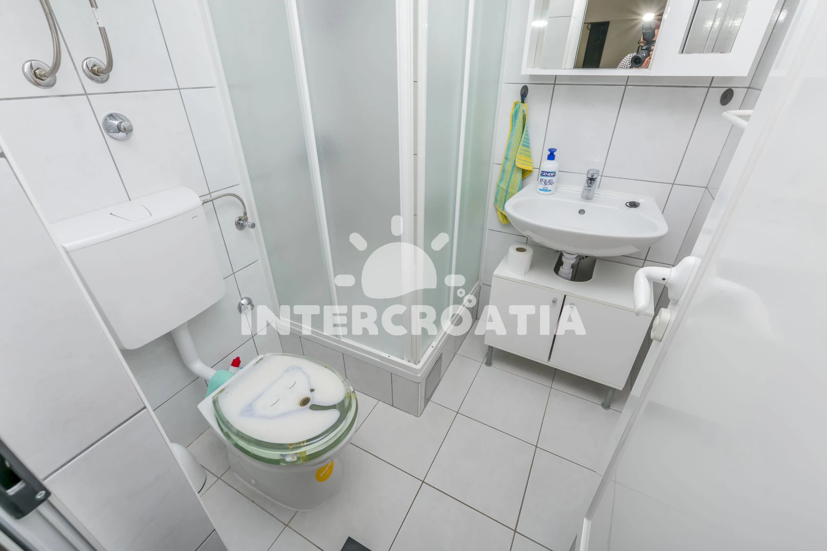 Apartmán se nachází 1920 m od moře a pláže. Pláž je oblázková a větší kamení. Parkování je před domem.