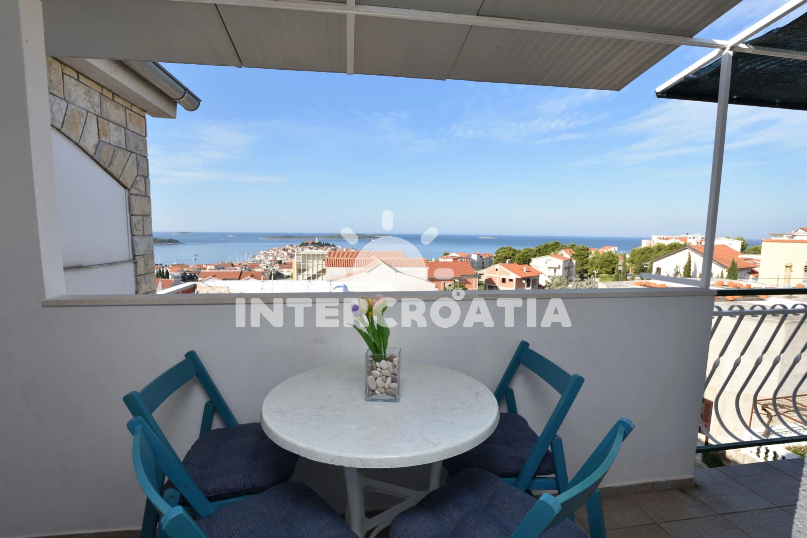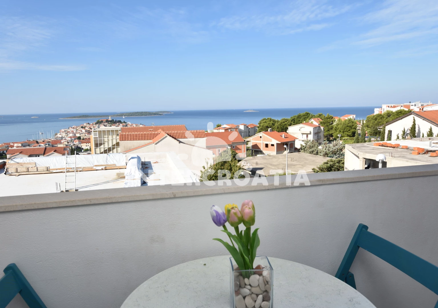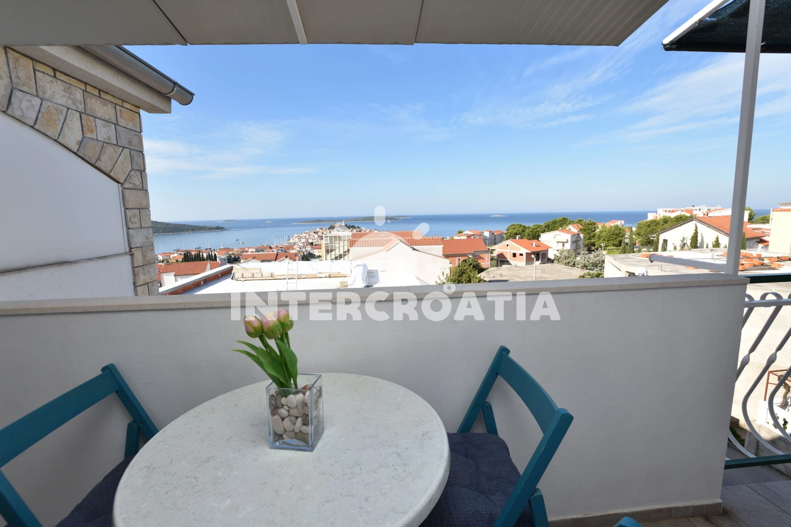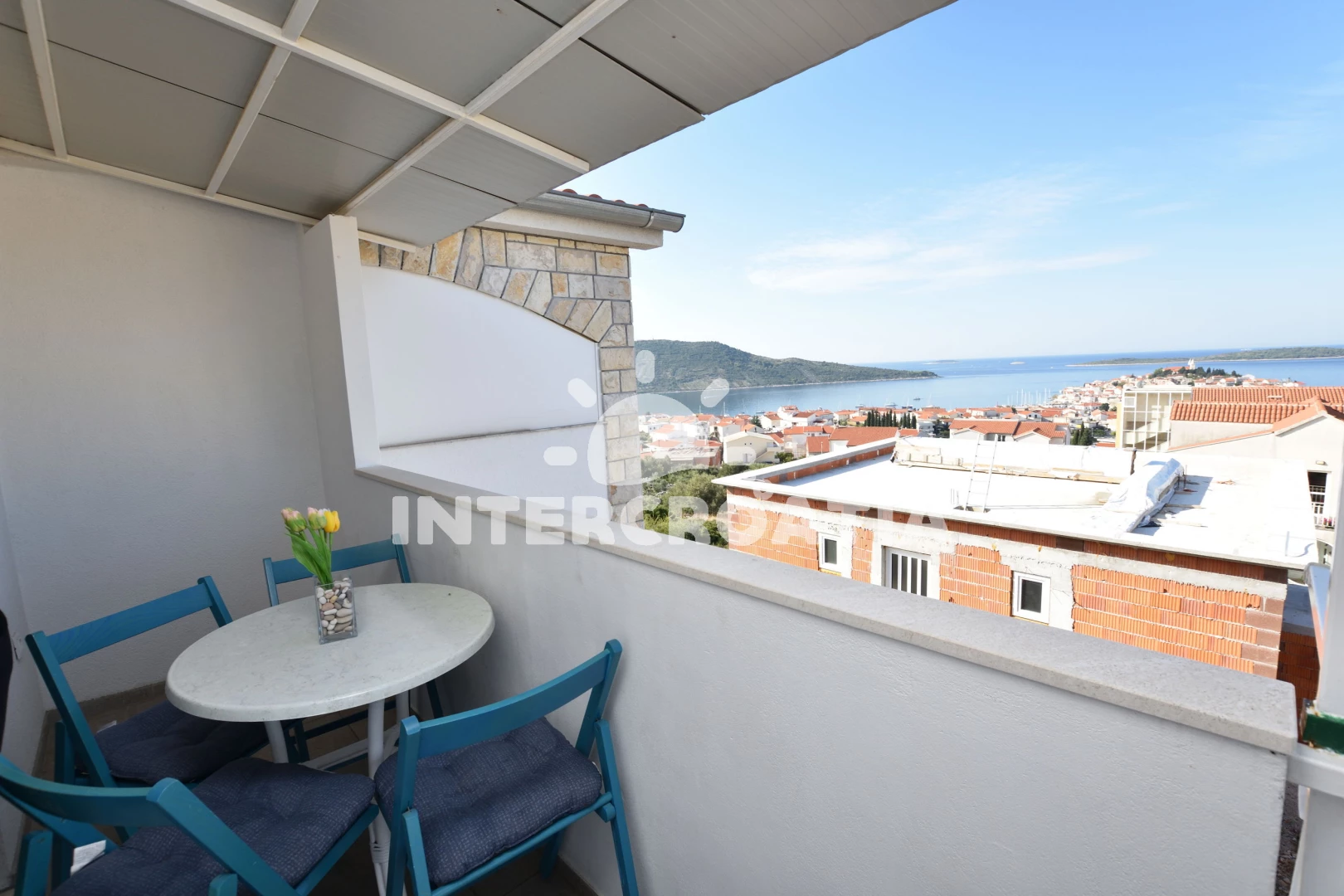 Apartmán (55 m2) s balkonem, a výhledem na moře. Nachází se ve 2. patře objektu. Apartmán má 2 ložnice a je vhodný pro až 4 osoby. Kuchyňská linka je vybavena varnou deskou, troubou, toustovačem, kávovarem, myčkou na nádobí, mikrovlnnou troubou, rychlovarnou konvicí, nádobím, lednicí, mrazákem. K dispozici televize se satelitním programem. První ložnice s dvoulůžkem. Druhá ložnice s dvoulůžkem. Koupelna se sprchovým koutem, umyvadlem, fénem a WC.