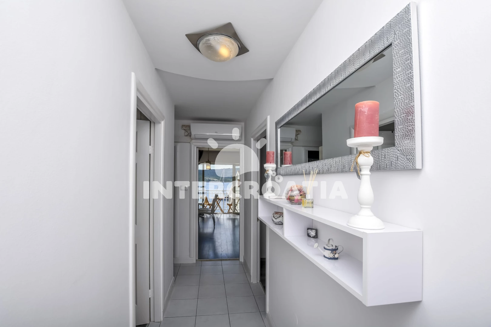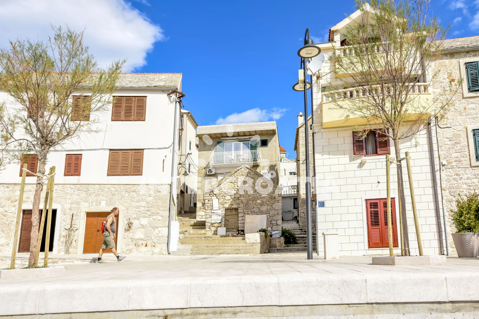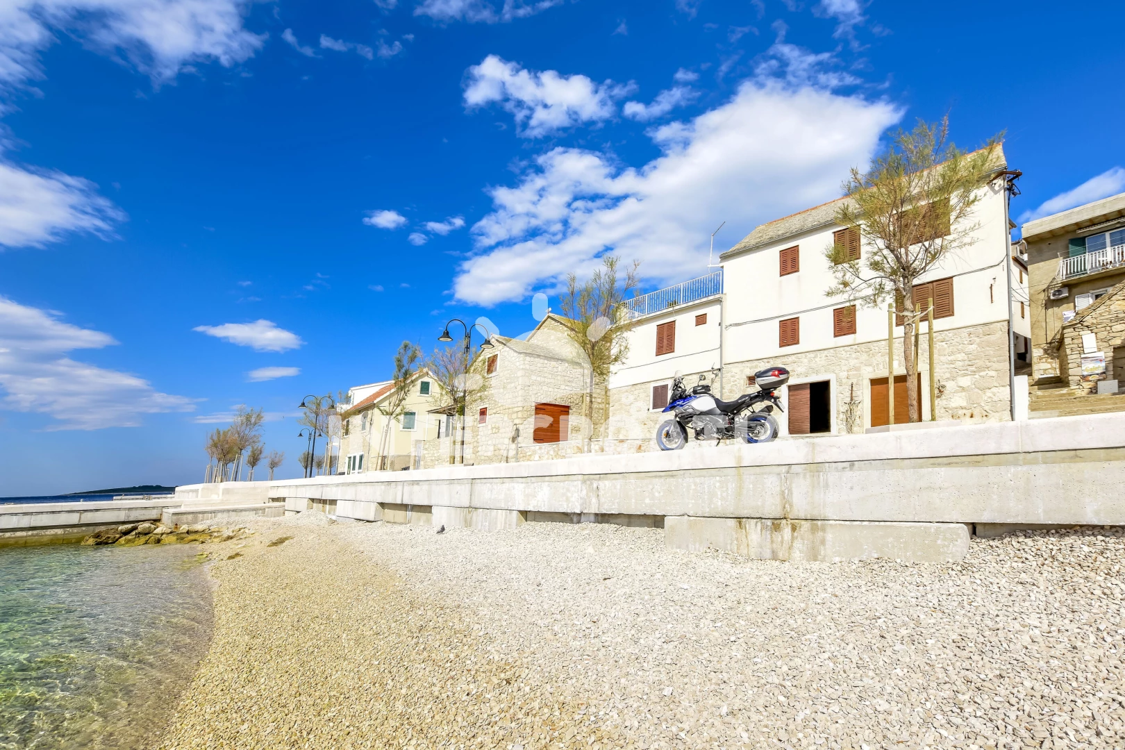 Vzdálenosti: Moře 40 m, pláž 118 m (oblázková a větší kamení), restaurace 20 m, centrum 100 m, bar 100 m, směnárna 200 m, půjčovna motorových člunů 270 m, supermarket 400 m, lékárna 400 m, půjčovna kol 480 m, banka 490 m, tenisové kurty 490 m, mini golf 500 m, pošta 530 m, veřejná doprava 550 m, čerpací stanice 680 m, potápění 800 m, ambulance 1,7 km, diskotéka 2 km, letiště (Split) 31 km, trajekt (Split) 43 km, park Plitvice 45 km,
