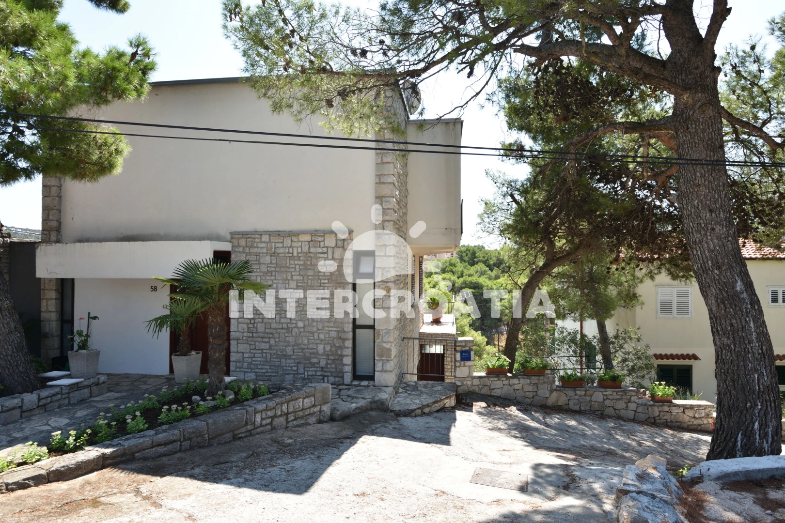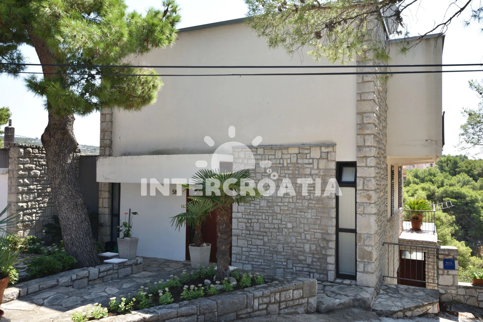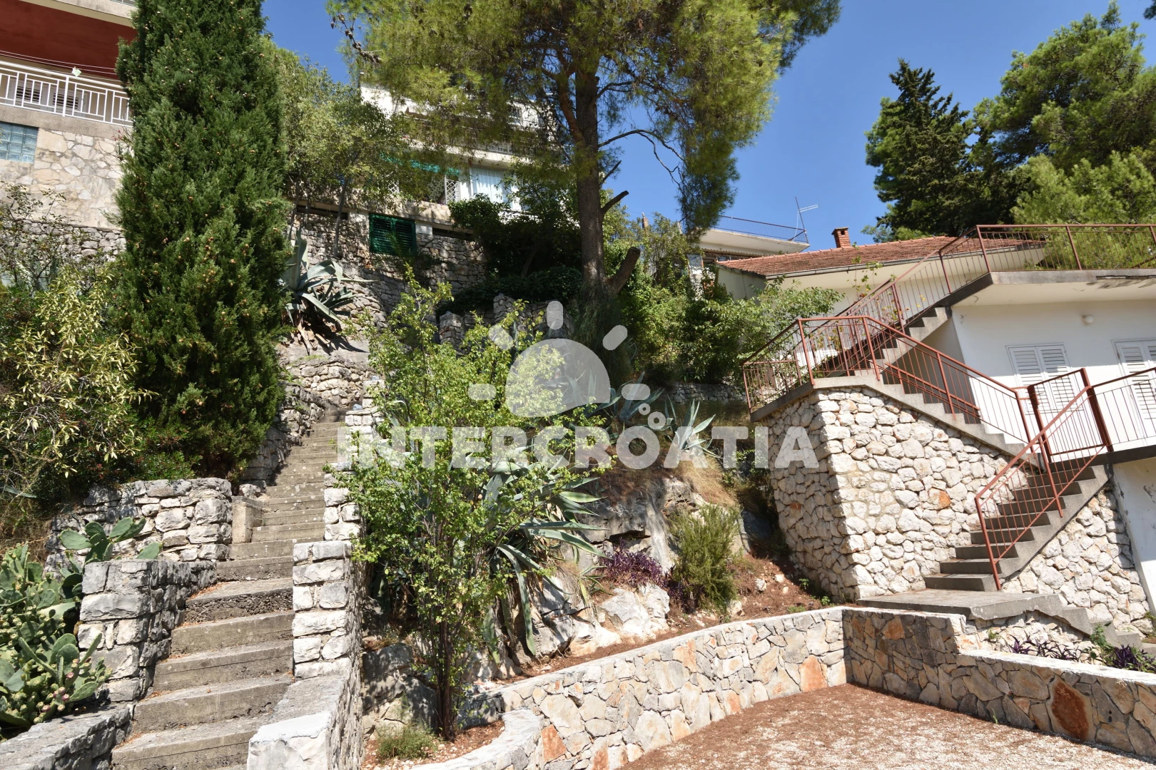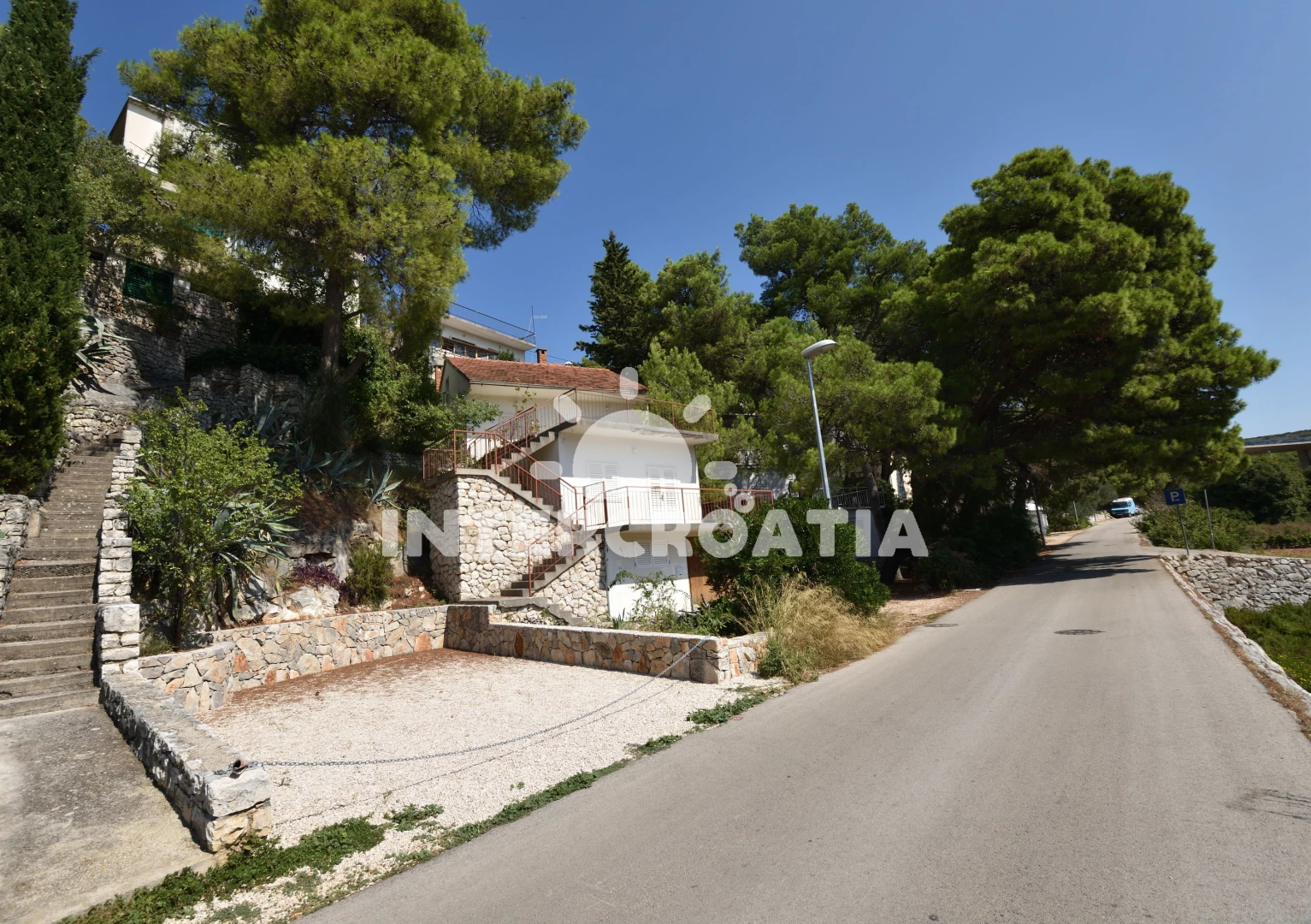 Vzdálenosti: Moře 35 m, pláž 500 m (oblázková a větší kamení), supermarket 390 m, čerpací stanice 430 m, restaurace 450 m, bar 450 m, veřejná doprava 610 m, pošta 620 m, banka 630 m, lékárna 640 m, směnárna 640 m, půjčovna motorových člunů 700 m, ambulance 750 m, půjčovna kol 770 m, tenisové kurty 810 m, centrum 820 m, mini golf 900 m, diskotéka 1 km, potápění 1,1 km, marina 1,9 km, letiště (Split) 30 km, park Plitvice 45 km, trajekt (Split) 60 km,