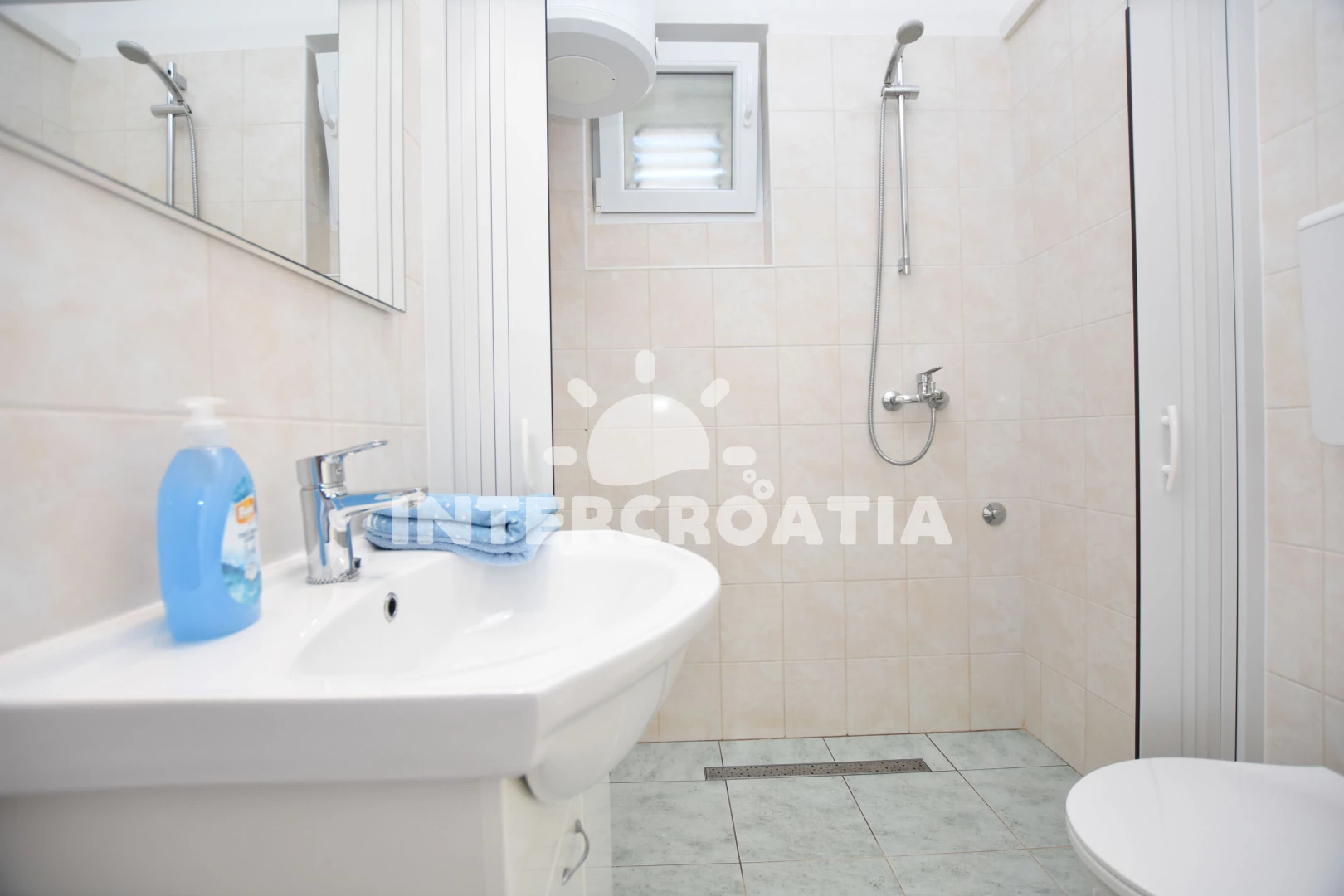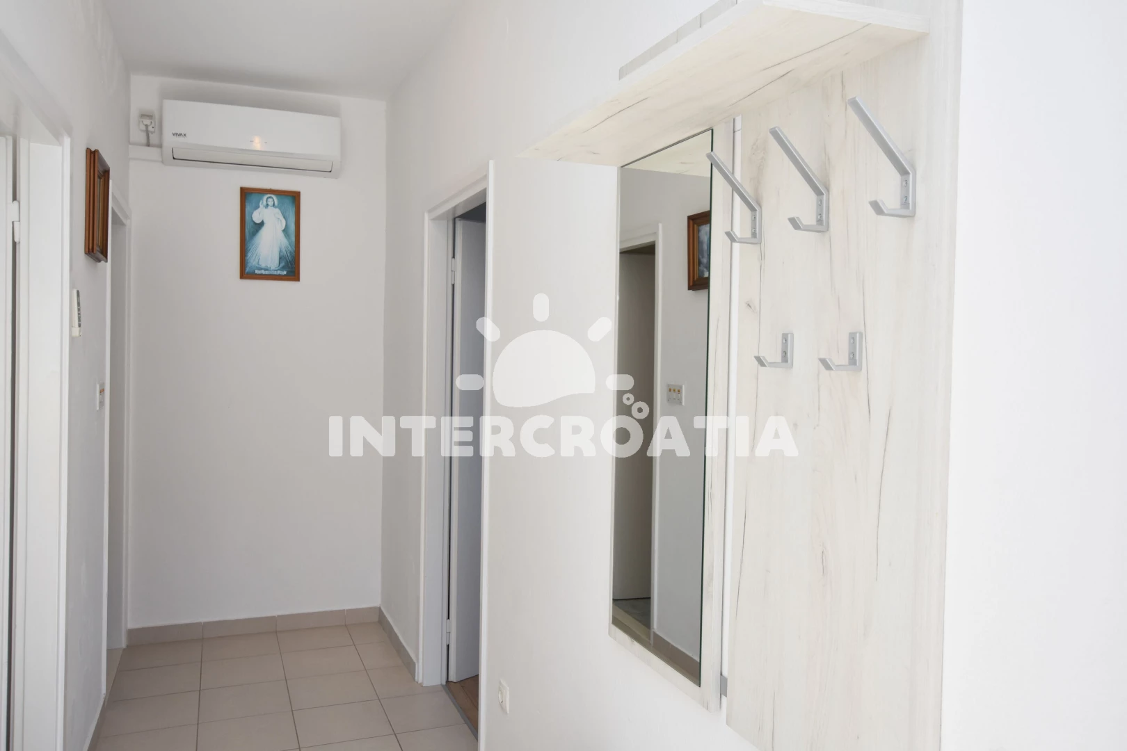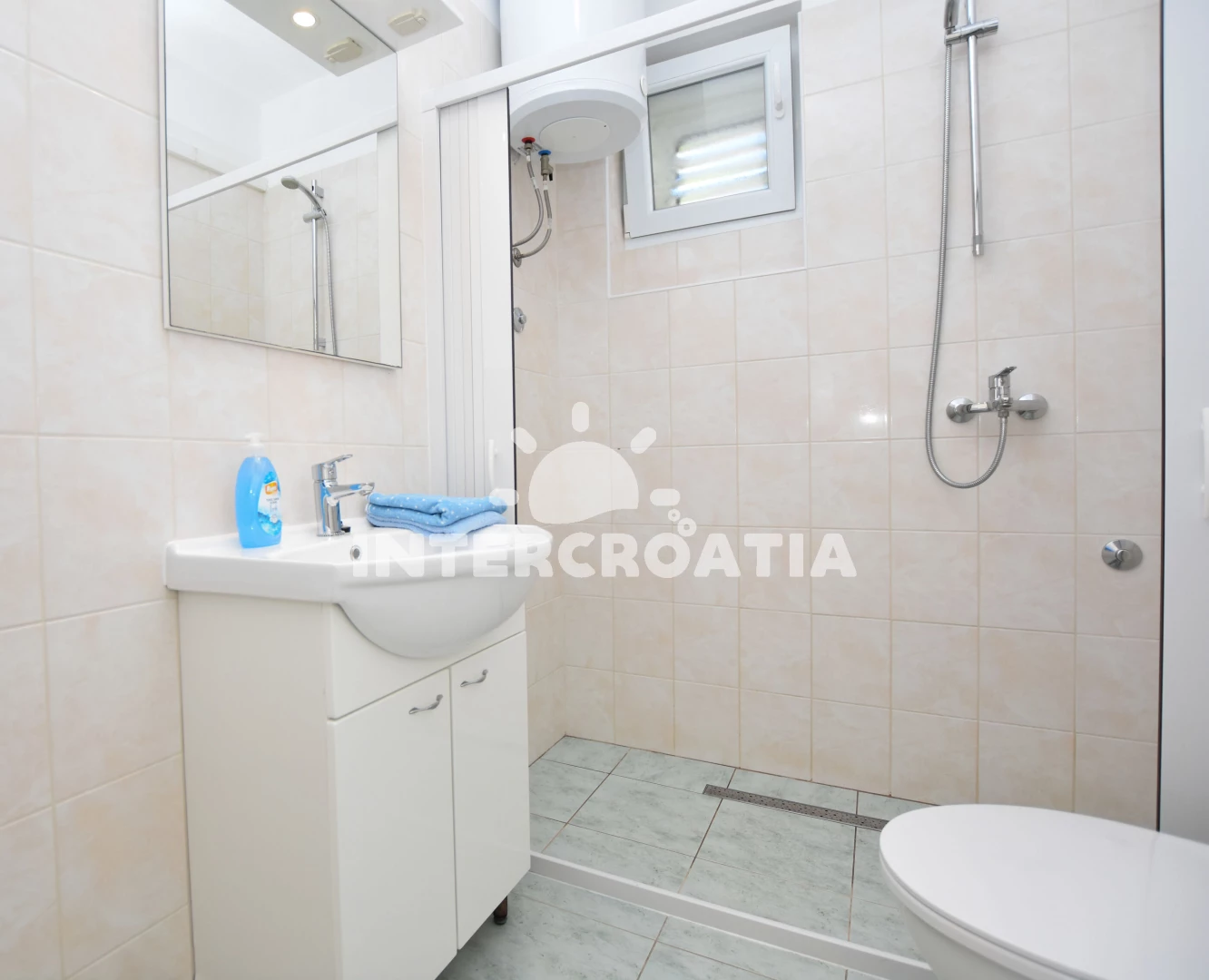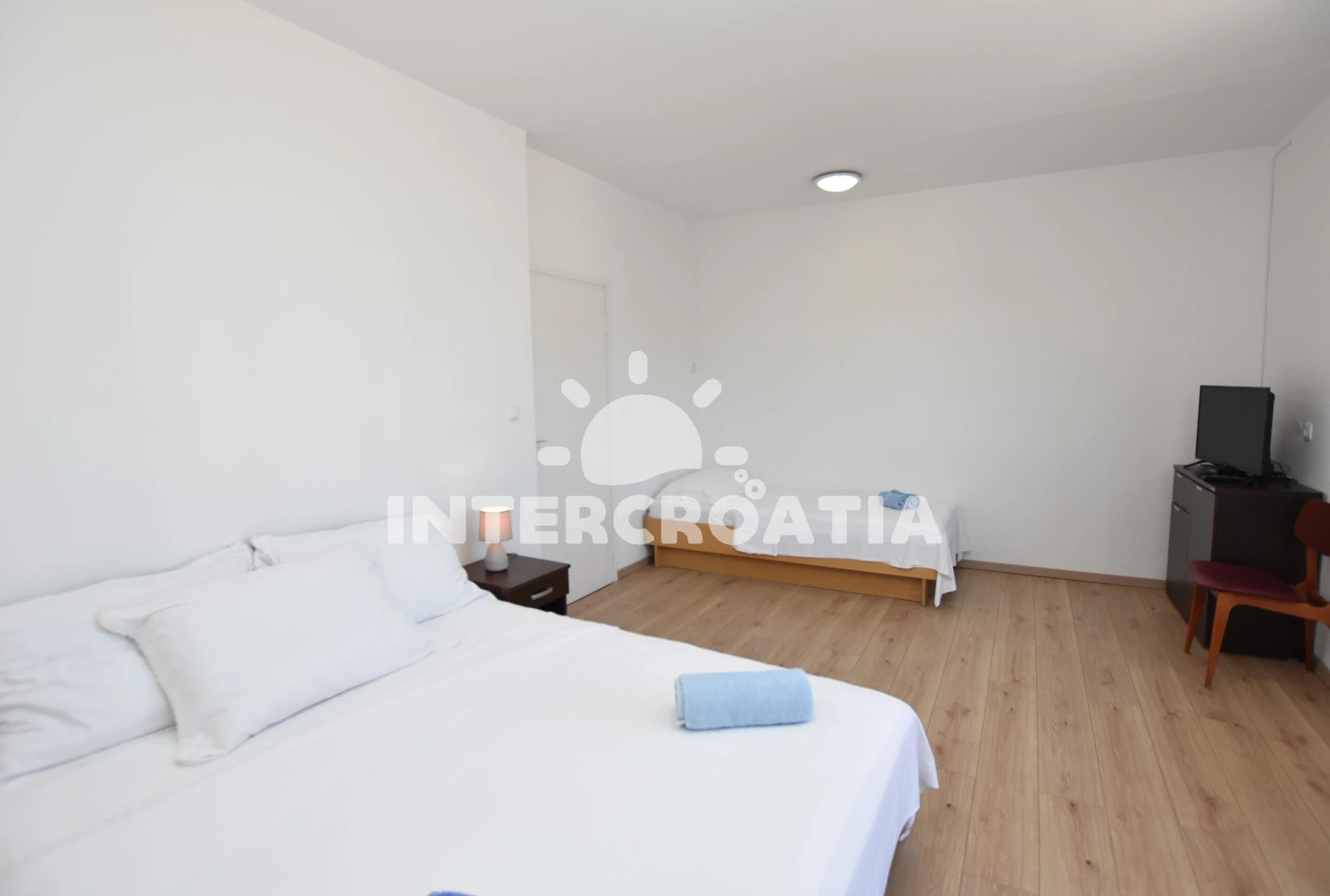 Vzdálenosti: Moře 240 m, pláž 215 m (oblázková a větší kamení), pošta 70 m, směnárna 100 m, centrum 100 m, veřejná doprava 100 m, supermarket 150 m, čerpací stanice 160 m, banka 160 m, bar 170 m, lékárna 195 m, restaurace 200 m, půjčovna kol 210 m, tenisové kurty 230 m, půjčovna motorových člunů 260 m, mini golf 300 m, potápění 600 m, ambulance 1,3 km, diskotéka 1,6 km, marina 2,4 km, park Plitvice 24 km, letiště (Split) 30 km, trajekt (Split) 60 km,