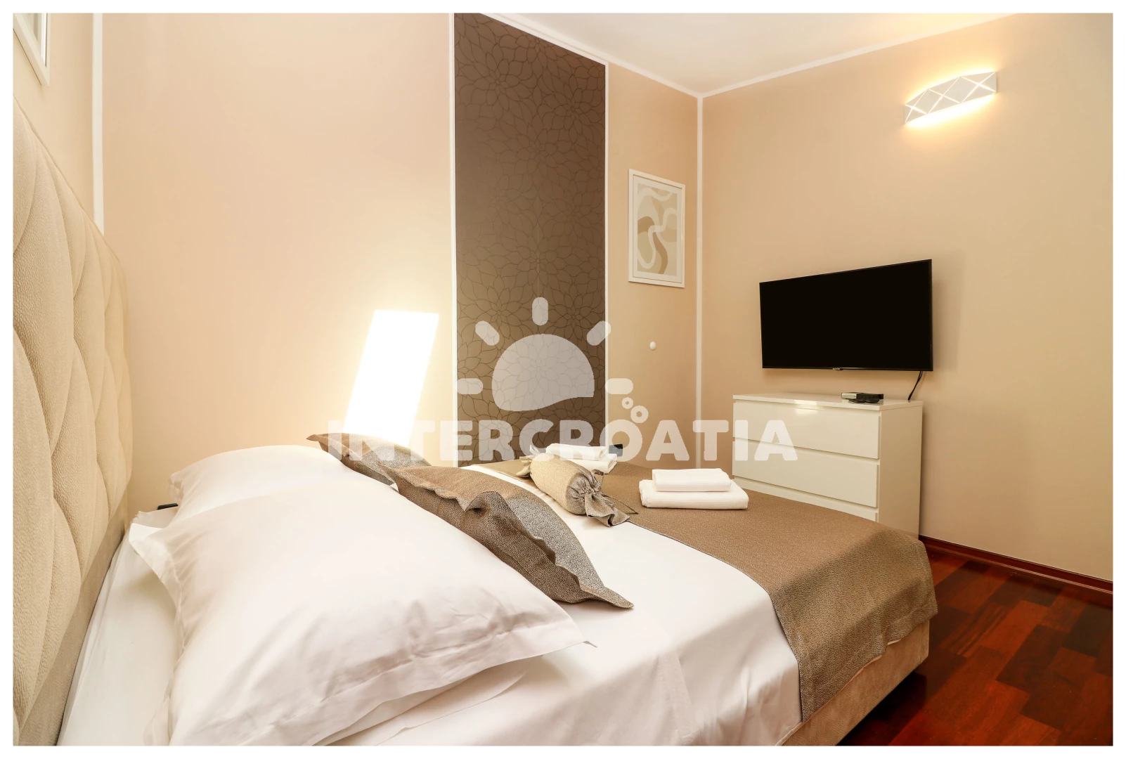Apartmán (2) s balkonem. Nachází se v objektu. Apartmán má 3 ložnice a je vhodný pro až 4 osoby. Kuchyňská linka je vybavena varnou deskou, kávovarem, troubou, myčkou na nádobí, mikrovlnnou troubou, rychlovarnou konvicí, nádobím, lednicí, mrazákem. K dispozici televize, sejf, žehlička. První ložnice s jednolůžky. Druhá ložnice s dvoulůžky. Třetí ložnice s dvoulůžkem. Hostům je k dispozici parkování u objektu zdarma.