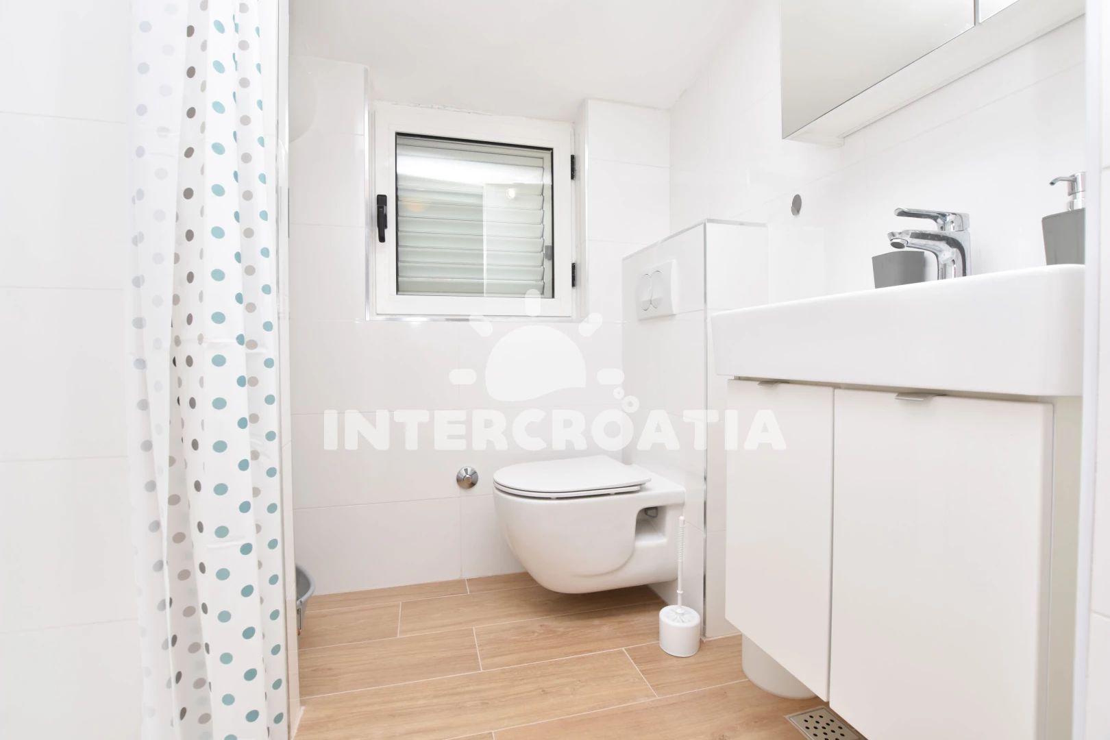 Vzdálenosti: Moře 95 m, pláž 130 m (oblázková a větší kamení), lékárna 25 m, restaurace 50 m, bar 90 m, banka 90 m, půjčovna kol 110 m, směnárna 110 m, veřejná doprava 115 m, půjčovna motorových člunů 120 m, supermarket 120 m, pošta 140 m, centrum 180 m, tenisové kurty 200 m, mini golf 290 m, čerpací stanice 290 m, potápění 560 m, ambulance 1,4 km, diskotéka 1,7 km, marina 2,2 km, letiště (Split) 30 km, park Plitvice 45 km, trajekt (Split) 60 km,