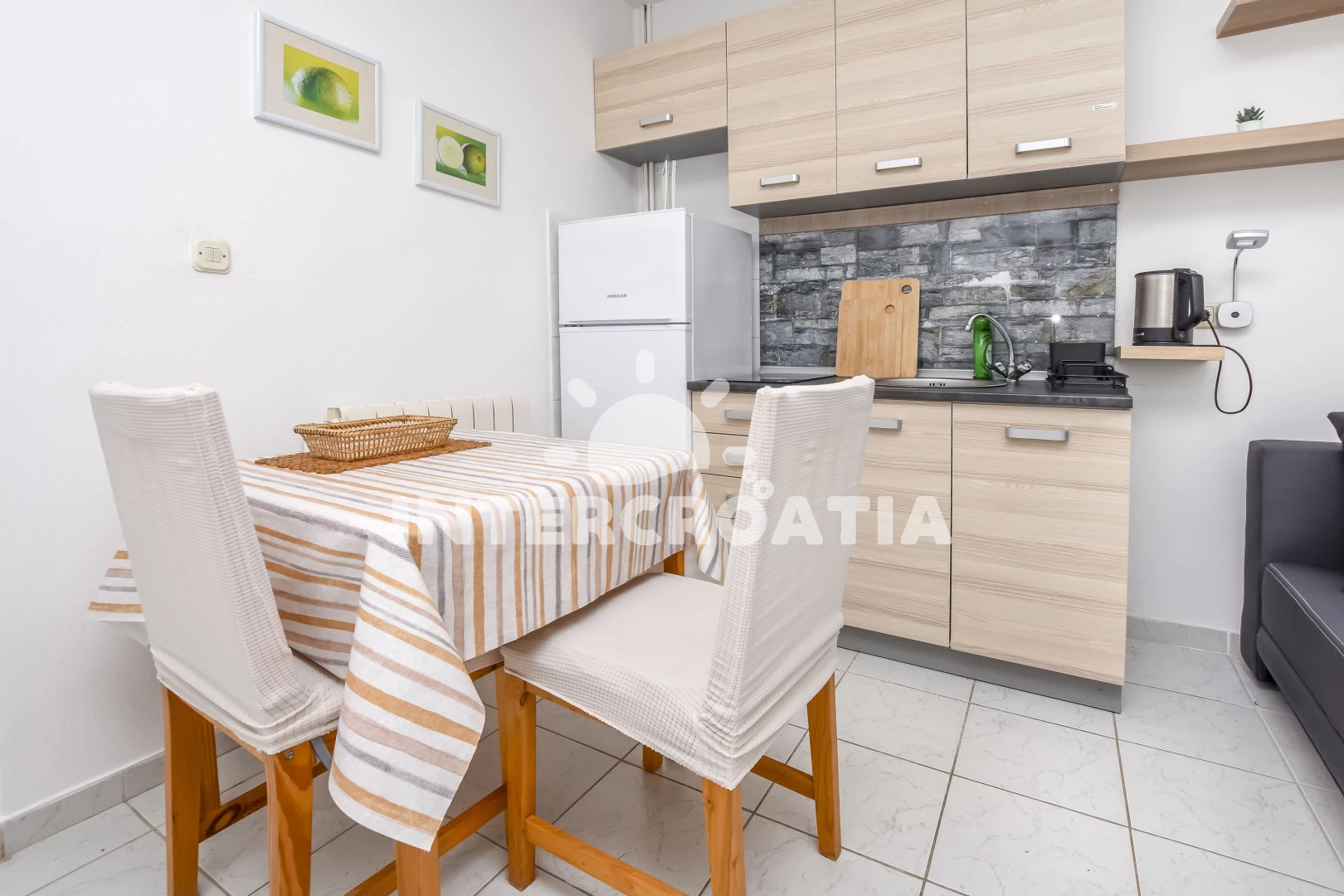 Vzdálenosti: Moře 160 m, pláž 200 m (skalnatá a oblázková), centrum 700 m, supermarket 700 m, veřejná doprava 700 m, směnárna 700 m, čerpací stanice 700 m, lékárna 700 m, banka 700 m, pošta 700 m, bar 700 m, restaurace 700 m, ambulance 1 km, trajekt (Šibenik) 35 km, letiště (Split) 40 km,