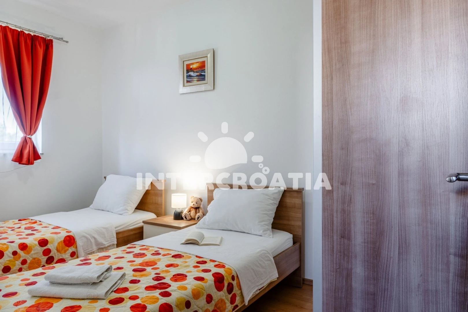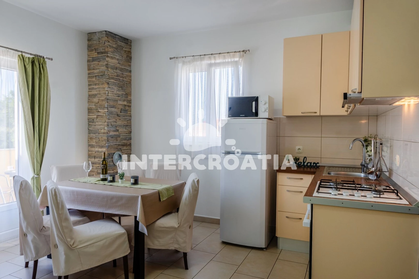 Vzdálenosti: Moře 900 m, pláž 900 m (oblázková a betonové desky), supermarket 1,2 km, restaurace 1,2 km, bar 1,2 km, půjčovna kol 1,5 km, pošta 1,5 km, centrum 1,5 km, směnárna 1,5 km, ambulance 1,5 km, lékárna 1,5 km, veřejná doprava 1,5 km, půjčovna motorových člunů 1,5 km, čerpací stanice 5 km, potápění 5 km, diskotéka 5 km, marina 30 km, banka 30 km, trajekt (Zadar) 35 km, letiště (Zadar) 35 km,