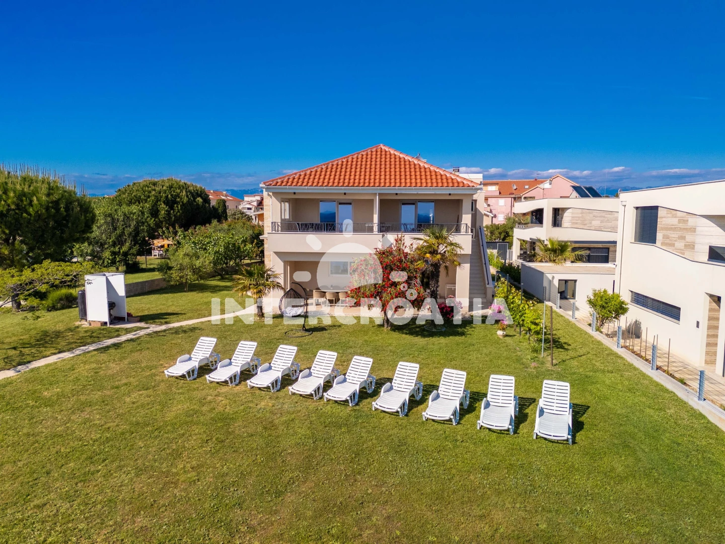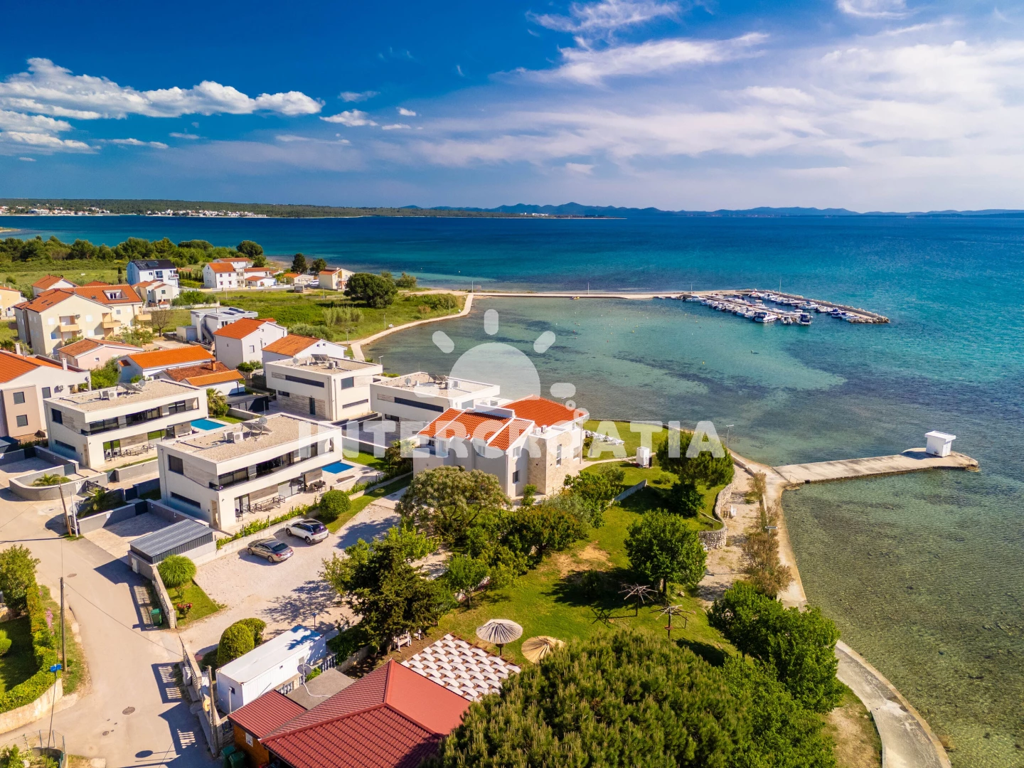 Vzdálenosti: Moře 10 m, pláž 10 m (oblázková a betonové desky), restaurace 20 m, bar 20 m, supermarket 100 m, půjčovna kol 2 km, diskotéka 2 km, pošta 2 km, potápění 2 km, centrum 2 km, směnárna 2 km, ambulance 2 km, lékárna 2 km, půjčovna motorových člunů 2 km, čerpací stanice 5 km, marina 25 km, banka 25 km, trajekt (Zadar) 25 km, letiště (Zadar) 30 km,