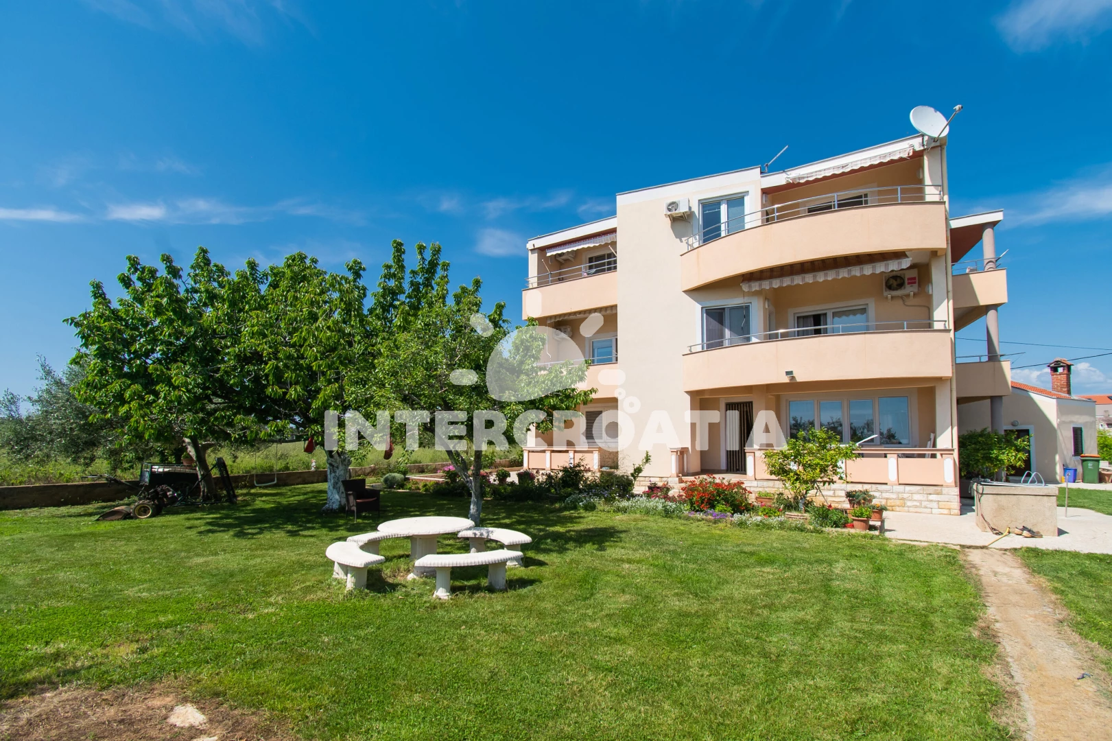 Vzdálenosti: Moře 100 m, pláž (písek) 100 m, obchod 200 m, centrum 2000 m, pošta 2000 m, lékárna 2000 m, zdravotní středisko 1500 m, restaurace 500 m, směnárna 2000 m, banka 3000 m, muzeum 5 km, bar 300 m, půjčovna kol 1000 m, tenisové kurty 4000 m, minigolf 4000 m, čerpací stanice 2500 m, veřejná doprava 200 m, přístav 20 km, Plitvický park 30 km, národní park Kornati 50 km (doprava lodí ze Zadaru), trajekt 20 km (Zadar), letiště 24 km (Zadar).