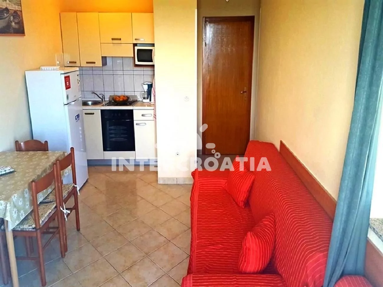Apartmán s výhledem na moře a balkonem s posezením, se nachází v druhém patře domu a je vhodný pro 2 až 5 osob. Obývací pokoj je spojený s kuchyní. Kuchyňská linka se sporákem, mikrovlnnou troubou,…