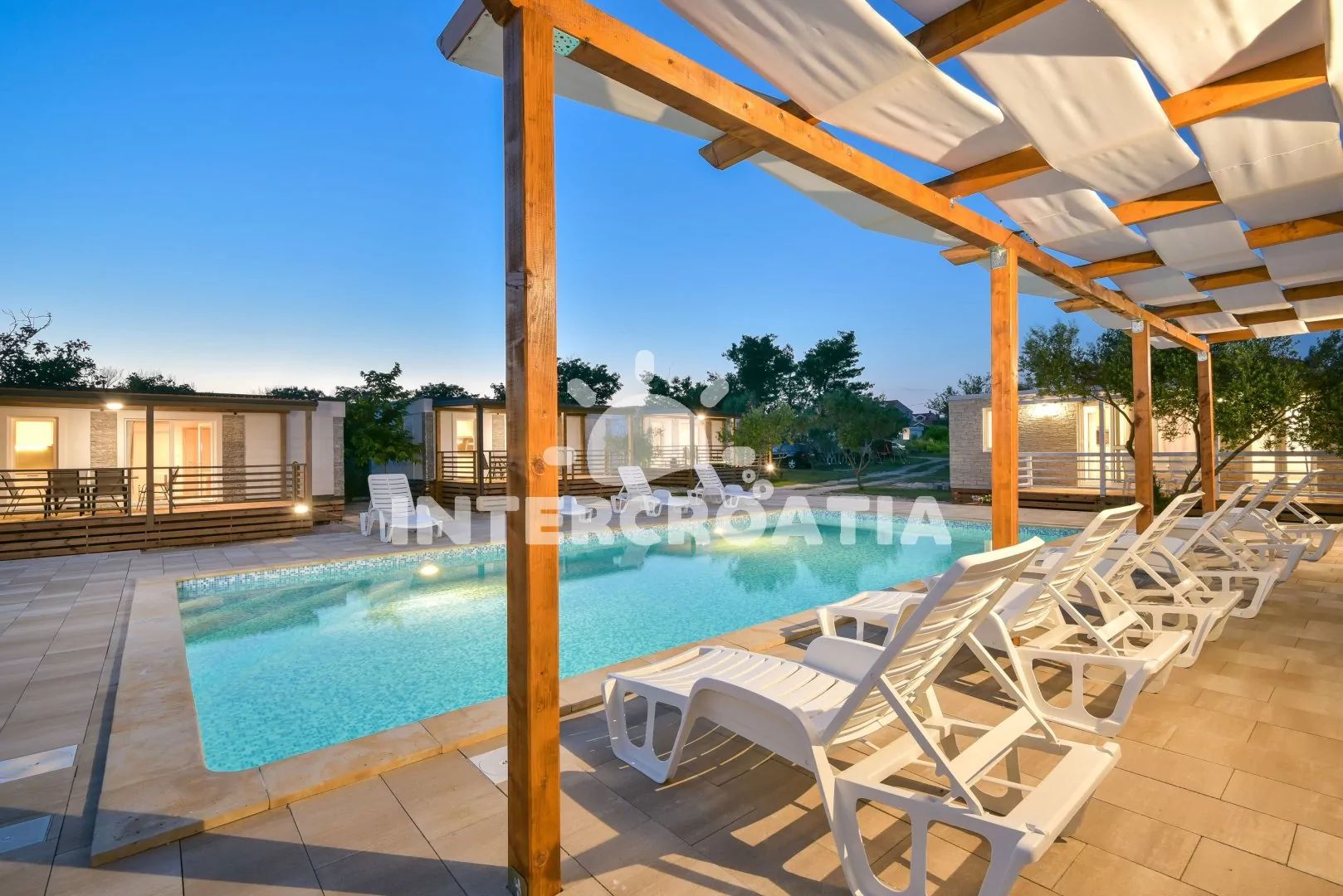 Rezidenční objekt s vilou se nachází na klidném místě v obci Privlaka a je vzdálená pouze 2 minuty chůze od pláže, na kterou nechodí příliš mnoho lidí, takže je ideální pro hosty, kteří hledají klidnější dovolenou. Hosté mají k dispozici velký bazén o rozloze 50 m2, který se nachází za vilou a je k dispozici i pro hosty z kempu a bungalovu. Vedle bazénu je posezení kde si můžete dát osvěžující nápoj a odpočinout na lehátkách, a jen 20 metrů od bazénu se nachází letní kuchyně, kde majitelé připravují místní speciality jako jsou čerstvé ryby a jiné mořské plody , maso a domácí saláty které si lze objednat den předem. V blízkostí se také nachází typická dalmatská restaurace - konoba Planura, kde si můžete vychutnat některé ze specialit místní kuchyně. Hostům jsou k dispozici parkovací místa na pozemku objektu.