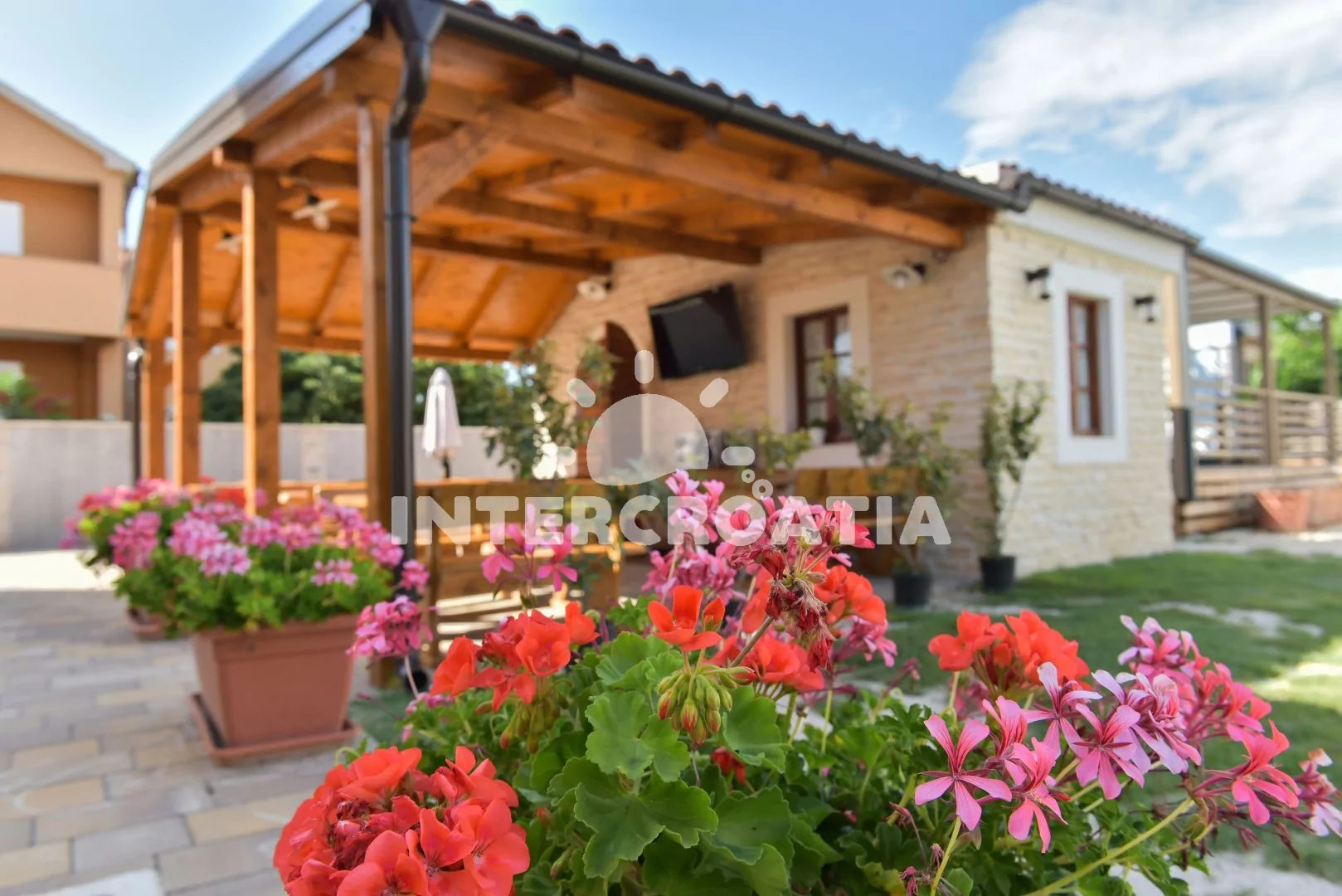 Apartmánová vila se nachází na klidném místě v obci Privlaka a je vzdálená pouze 2 minuty chůze od pláže, na kterou nechodí příliš mnoho lidí, takže je ideální pro hosty, kteří hledají klidnější dovolenou. Hosté mají k dispozici velký bazén o rozloze 50 m2, který se nachází za vilou a je k dispozici i pro hosty z kempu a bungalovu. Vedle bazénu je posezení kde si můžete dát osvěžující nápoj a odpočinout na lehátkách, a jen 20 metrů od bazénu se nachází letní kuchyně, kde majitelé připravují místní speciality jako jsou čerstvé ryby a jiné mořské plody , maso a domácí saláty které si lze objednat den předem. V blízkostí se také nachází typická dalmatská restaurace - konoba Planura, kde si můžete vychutnat některé ze specialit místní kuchyně. Hostům jsou k dispozici parkovací místa na pozemku objektu.