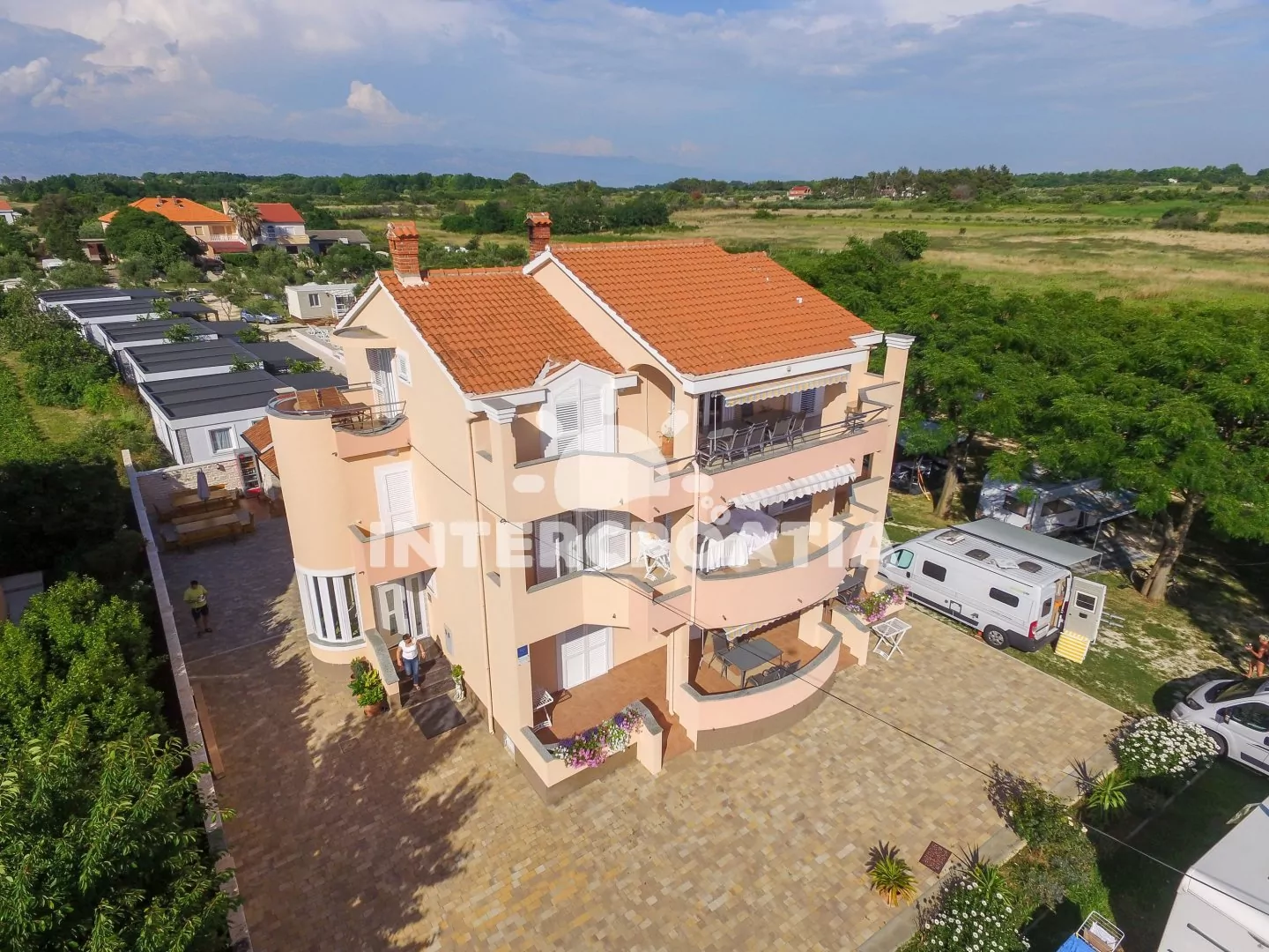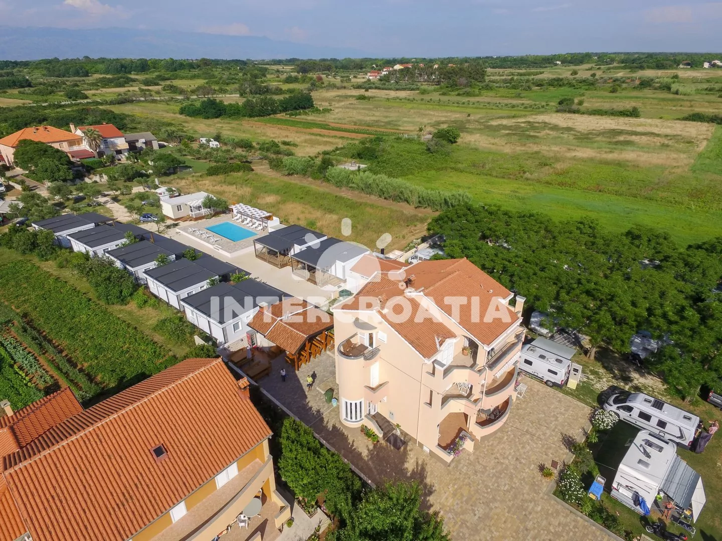 Apartmánová vila se nachází na klidném místě v obci Privlaka a je vzdálená pouze 2 minuty chůze od pláže, na kterou nechodí příliš mnoho lidí, takže je ideální pro hosty, kteří hledají klidnější dovolenou. Hosté mají k dispozici velký bazén o rozloze 50 m2, který se nachází za vilou a je k dispozici i pro hosty z kempu a bungalovu. Vedle bazénu je posezení kde si můžete dát osvěžující nápoj a odpočinout na lehátkách, a jen 20 metrů od bazénu se nachází letní kuchyně, kde majitelé připravují místní speciality jako jsou čerstvé ryby a jiné mořské plody , maso a domácí saláty které si lze objednat den předem. V blízkostí se také nachází typická dalmatská restaurace - konoba Planura, kde si můžete vychutnat některé ze specialit místní kuchyně. Hostům jsou k dispozici parkovací místa na pozemku objektu.
