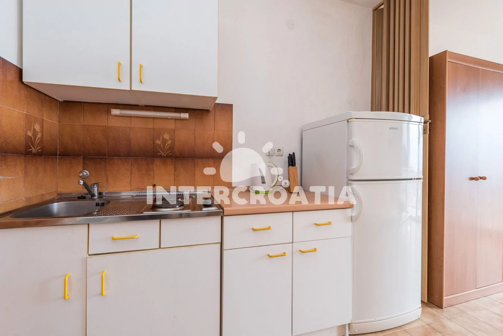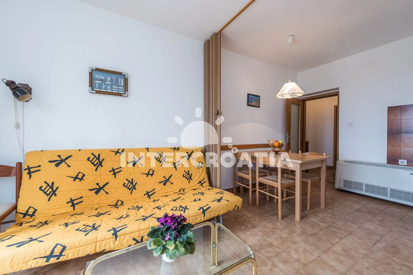 Apartmán (40 m2) s balkonem a výhledem na moře se nachází v 1. patře vily a je vhodný pro 2 až 4 osoby. Obývací pokoj je spojený s kuchyní. Kuchyňská linka je vybavena dvouplotýnkovým vařičem,…