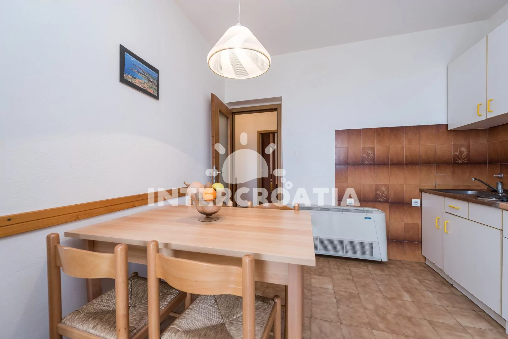 Vzdálenosti: Moře a písečná-oblázková pláž 150 m, centrum 1,5 km, bar 400 m, supermarket, veřejná doprava 600 m, restaurace, půjčovna cyklistických kol 1,5 km, směnárna 2,5 km, lékárna, pošta, banka, ambulance 3 km, potápění, tenis, minigolf 3,5 km, čerpací stanice 4 km, muzeum 4,5 km, trajekt, přístav 20 km, letiště 34 km.