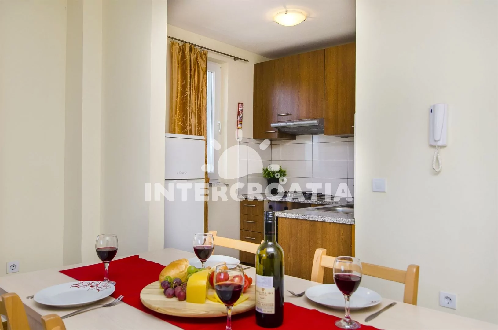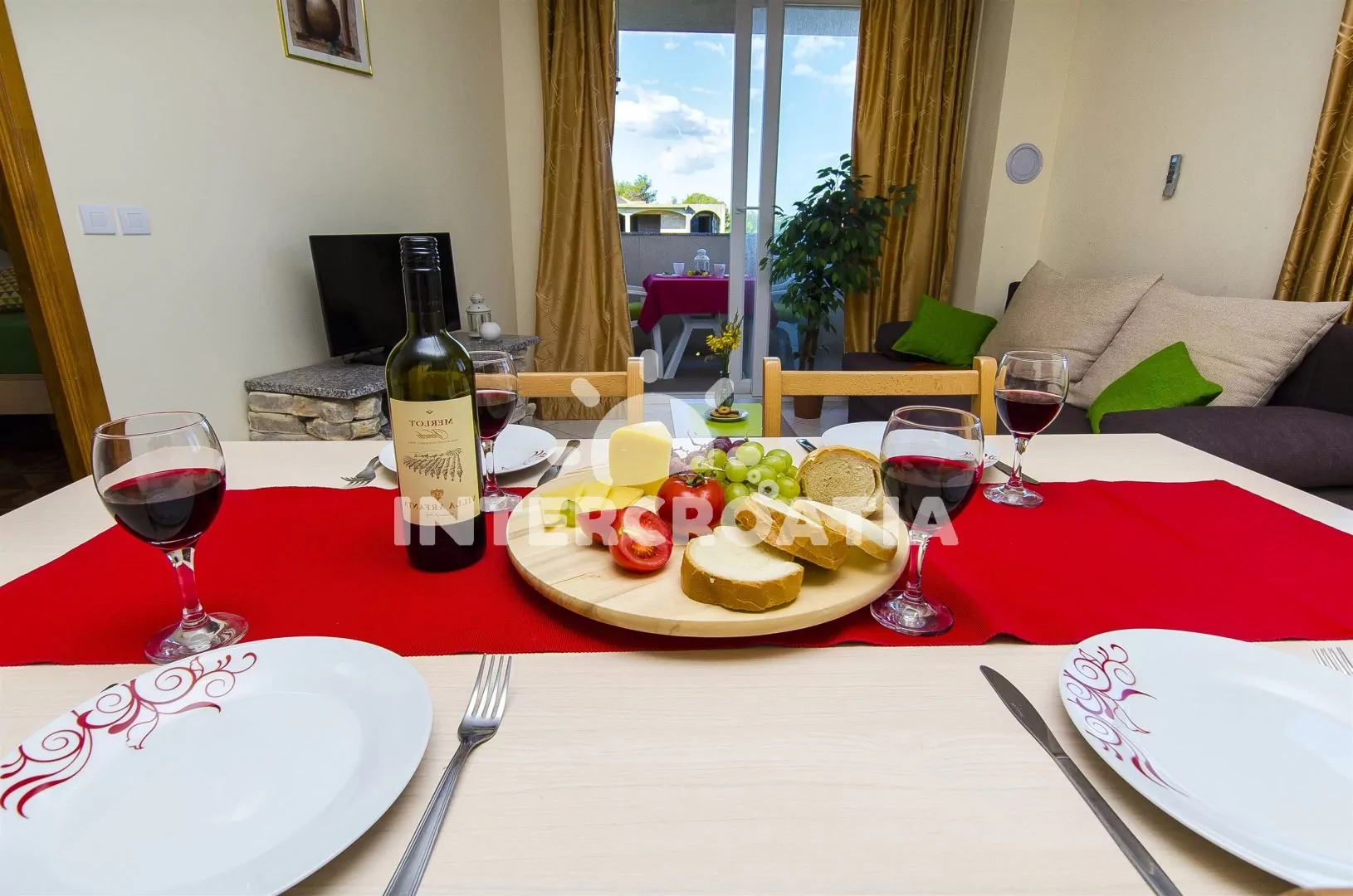 Apartmán (70 m2) s balkonem a venkovním posezením se nachází v 1. patře vily a je vhodný pro 2 až 4 osoby. Obývací pokoj je spojený s kuchyní. Kuchyňská linka je vybavena varnou deskou, digestoří,…