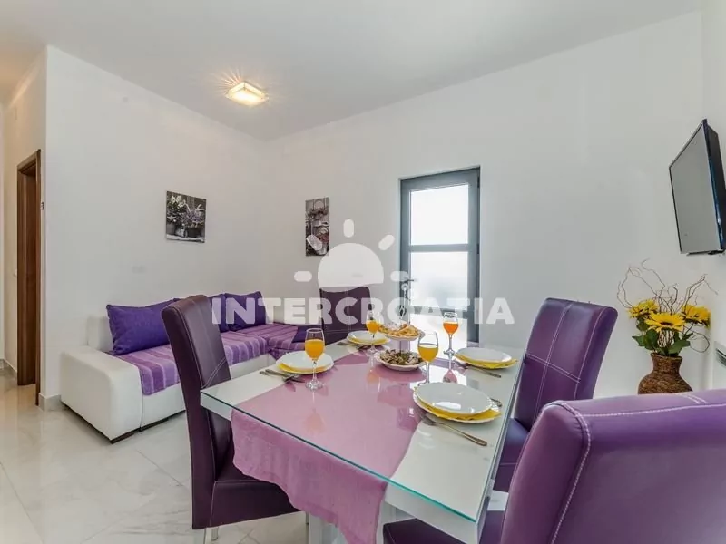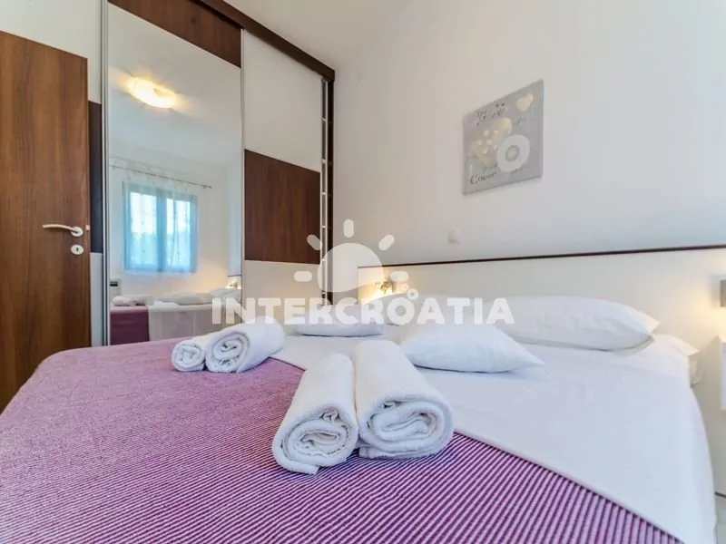Vzdálenosti: Moře a písčitá pláž 300 m, veřejná doprava 20 m, restaurace, supermarket 50 m, bar 300 m, ambulance 400 m, centrum, pošta, směnárna, lékárna 1 km, banka 4 km, čerpací stanice 5 km, trajekt 20 km, letiště 30 km.