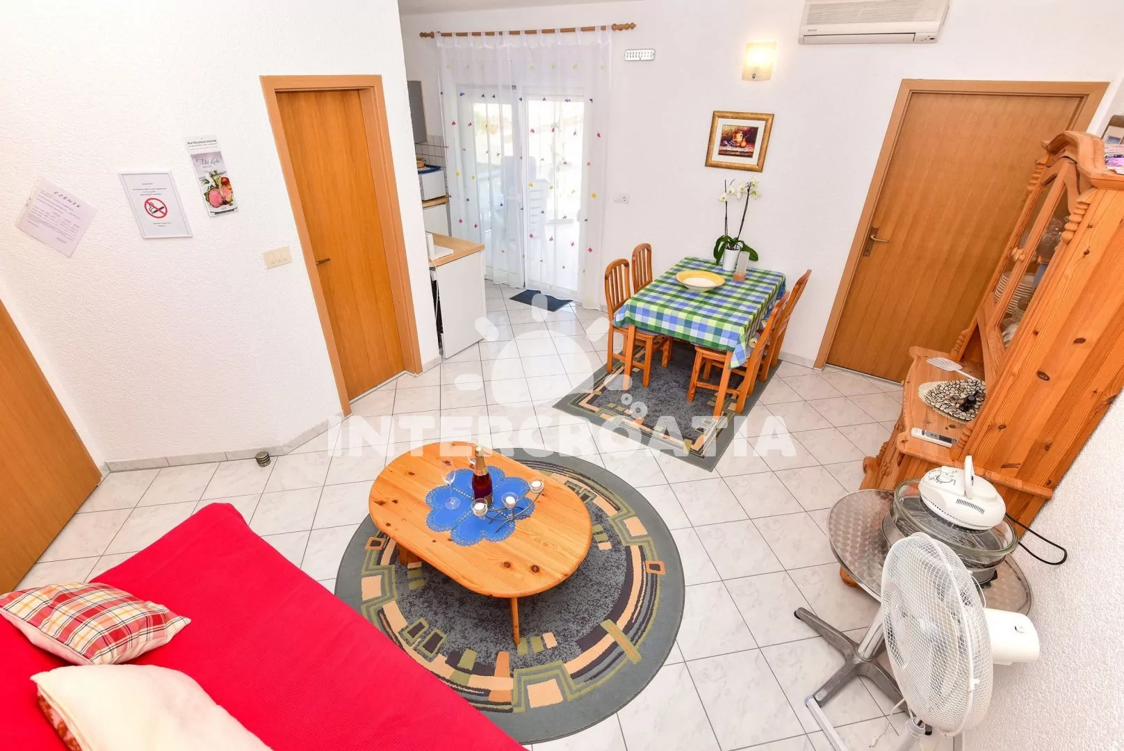 Domácí zvířata nejsou povolena. V ceně pobytu zahrnuto: WiFi, klimatizace/topení, povlečení, ručníky, závěrečný úklid a pobytová taxa. Dětská postýlka, žehlička, pračka a fén k zapůjčení u pronajímatele. Registrační poplatek (180 Kč/osoba/pobyt, se připočte automaticky k ceně objednávky). Pronajímatel se dorozumí chorvatsky a německy.
