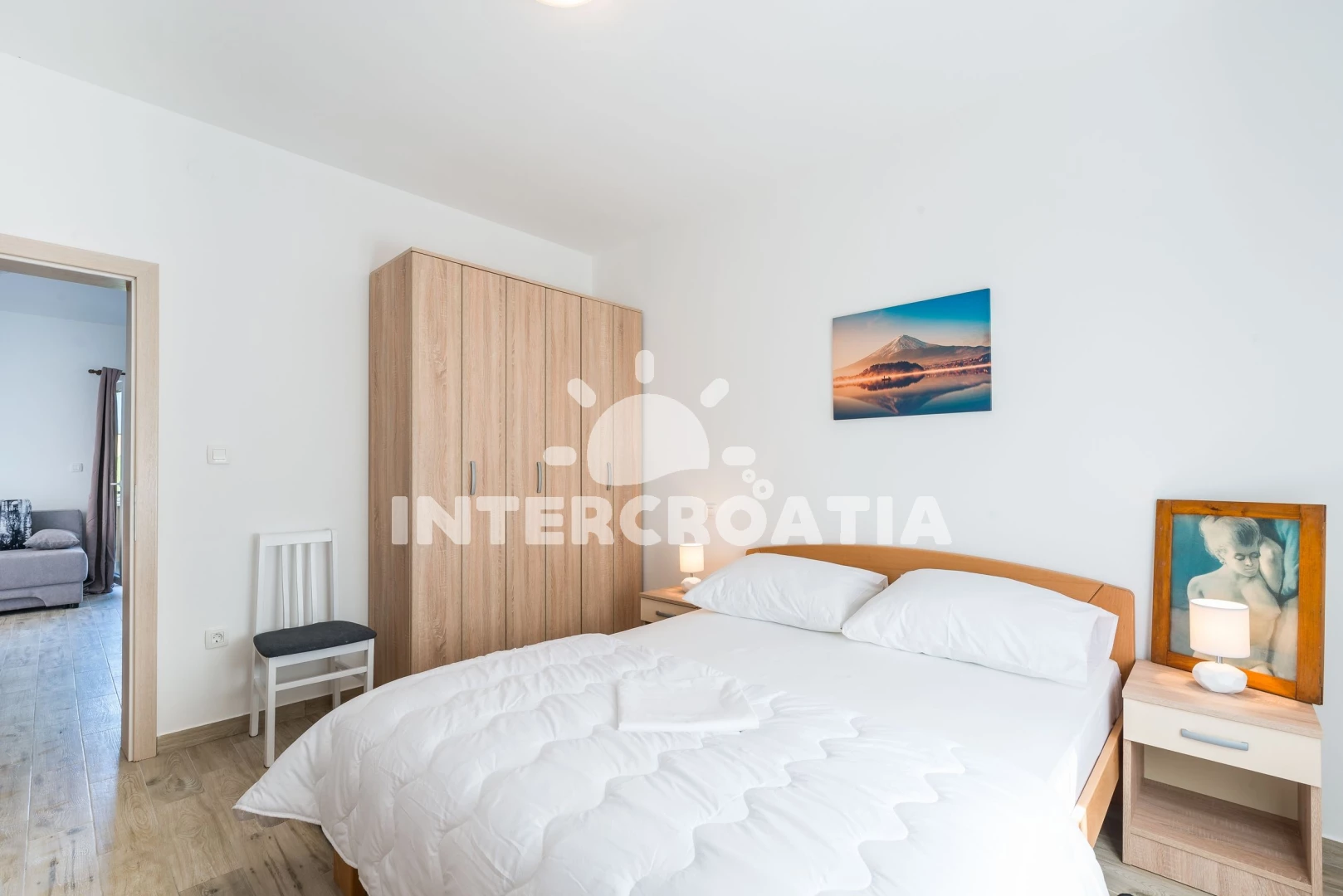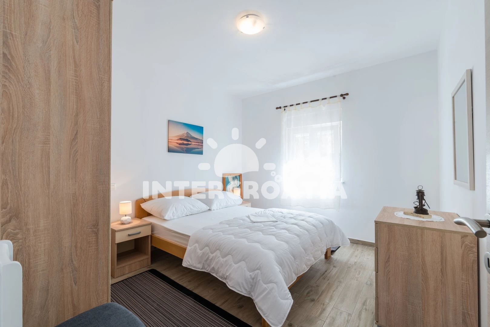 Apartmán se nachází 30 m od moře a pláže. Pláž je oblázková a betonové desky. U objektu je k dispozici společná zahrada s posezením a grilem. Parkování je před domem.