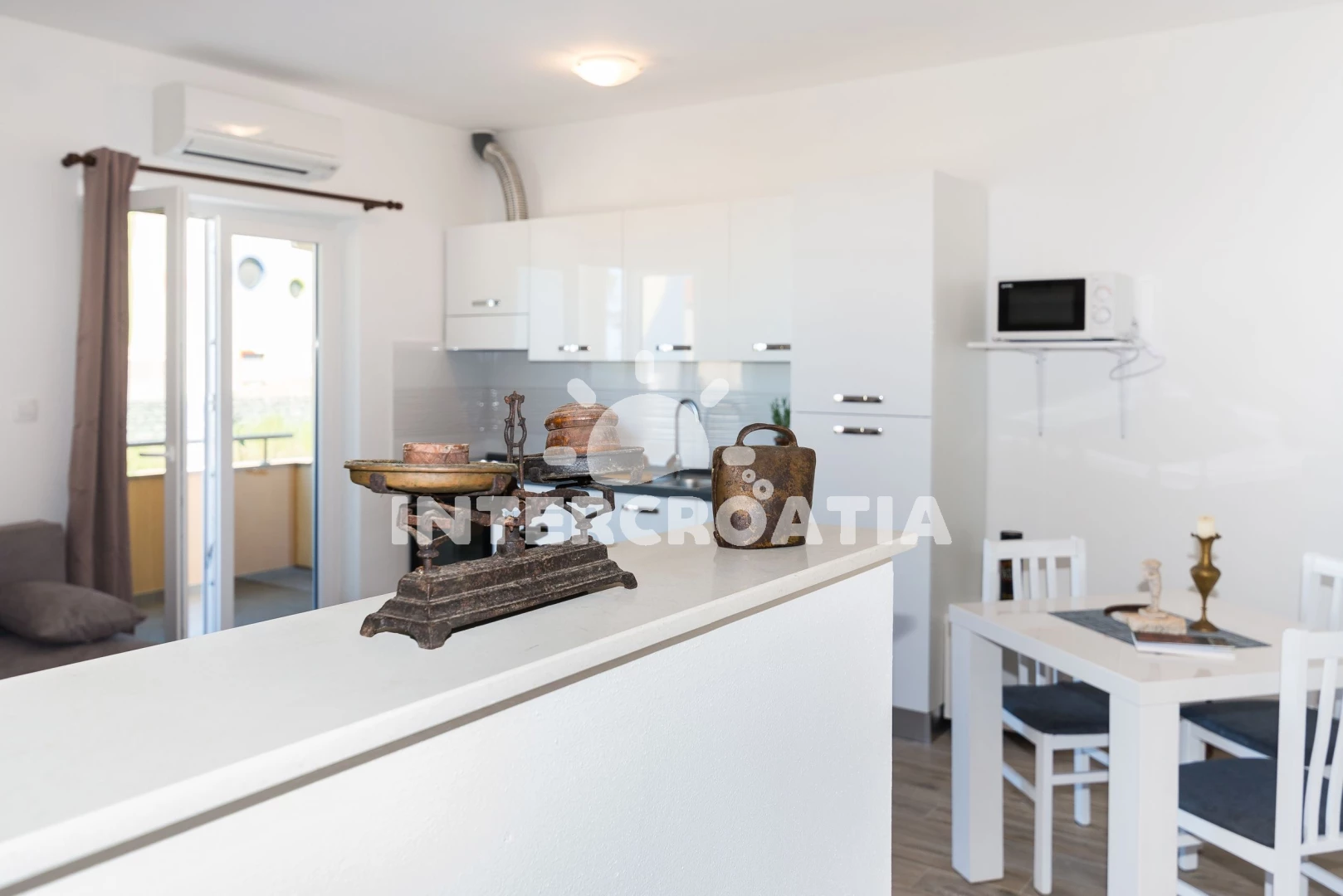 Vzdálenosti: Moře 30 m, pláž 30 m (oblázková a betonové desky), restaurace 20 m, bar 20 m, potápění 500 m, centrum 500 m, pošta 500 m, supermarket 500 m, lékárna 500 m, směnárna 500 m, čerpací stanice 1 km, banka 5 km, ambulance 5 km, diskotéka 5 km, trajekt (Zadar) 25 km, letiště (Zadar) 30 km,