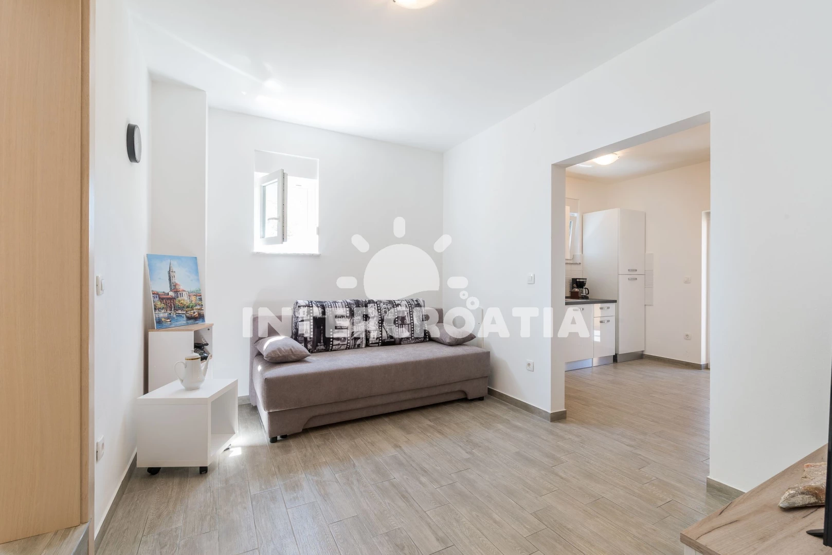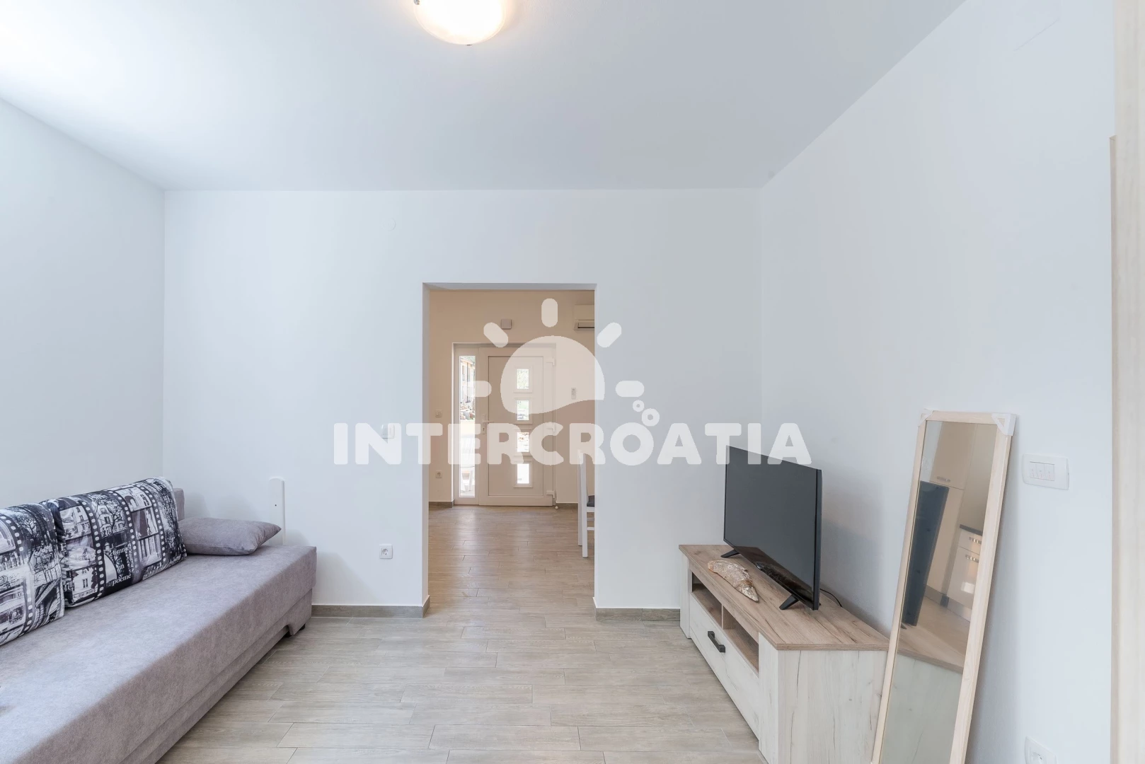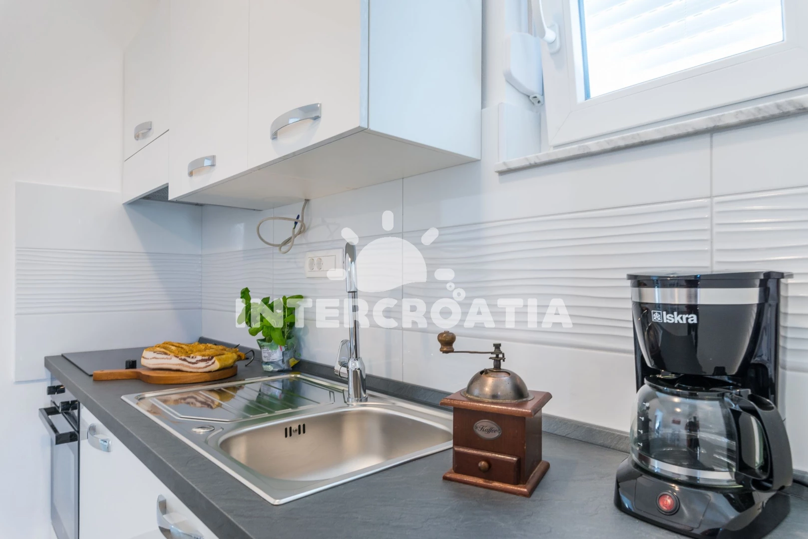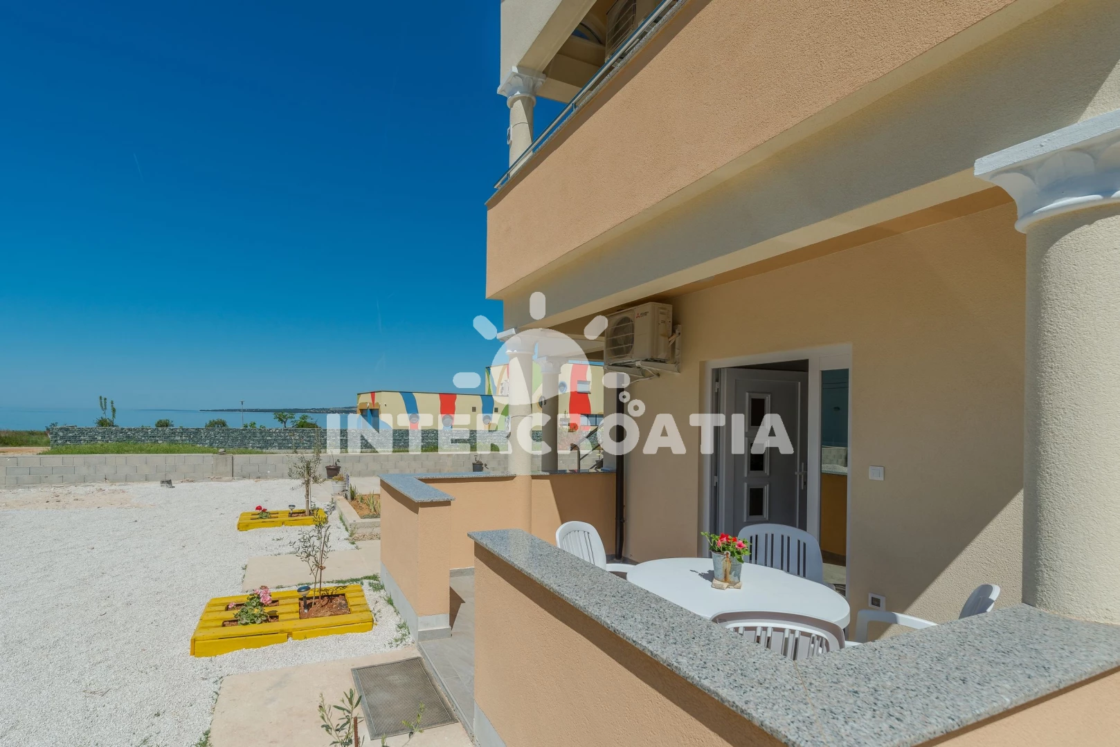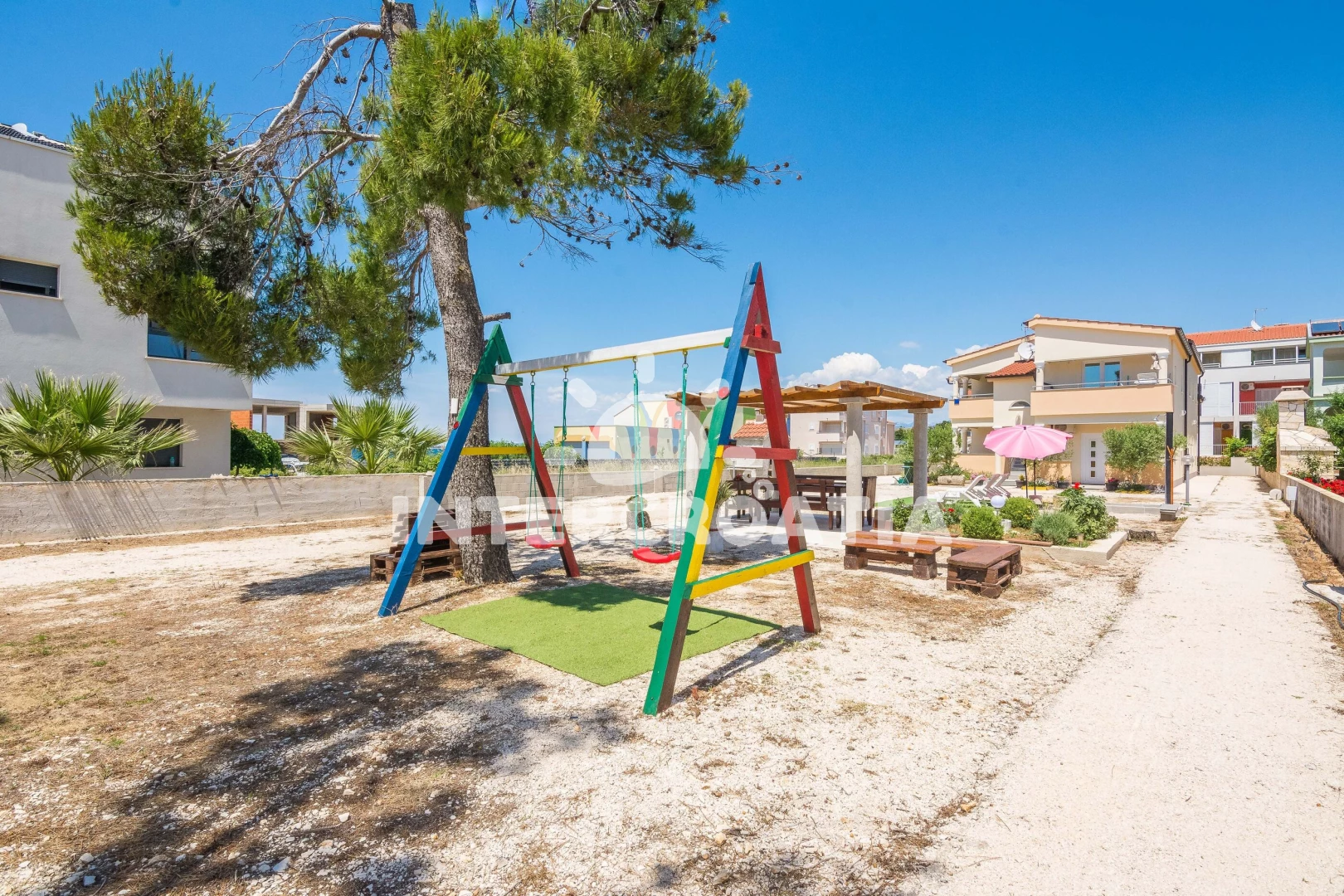 Vzdálenosti: Moře 30 m, pláž 30 m (oblázková a betonové desky), restaurace 20 m, bar 20 m, potápění 500 m, centrum 500 m, pošta 500 m, supermarket 500 m, lékárna 500 m, směnárna 500 m, čerpací stanice 1 km, banka 5 km, ambulance 5 km, diskotéka 5 km, trajekt (Zadar) 25 km, letiště (Zadar) 30 km,