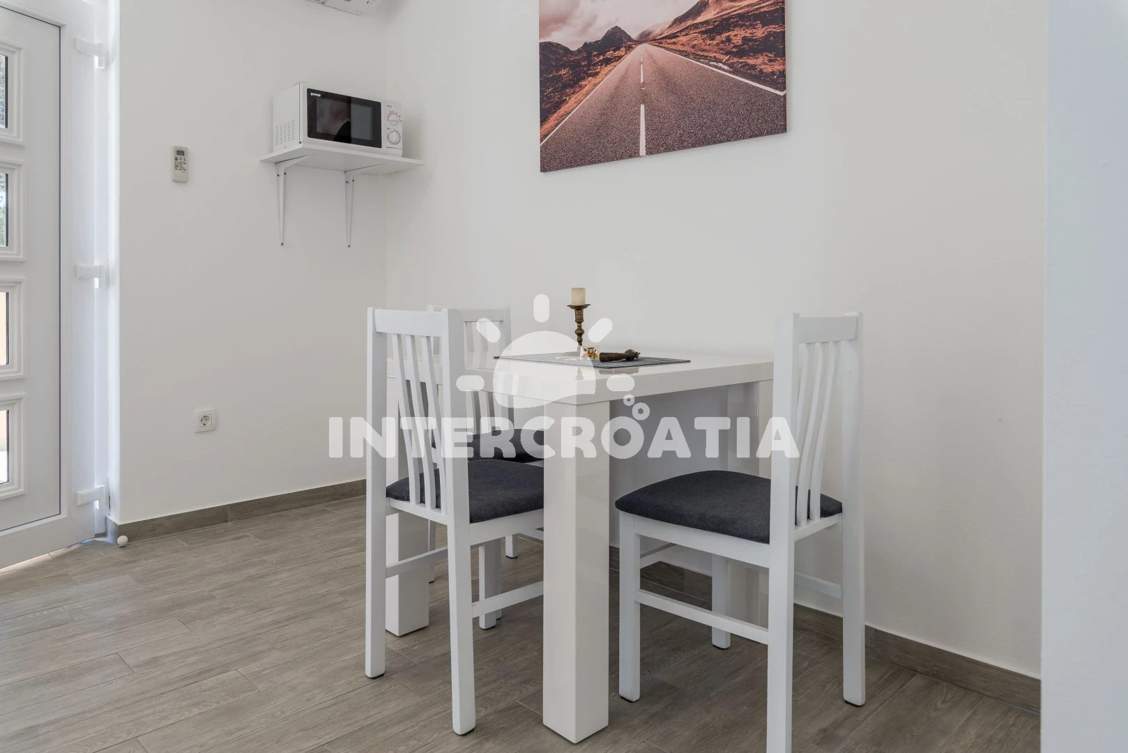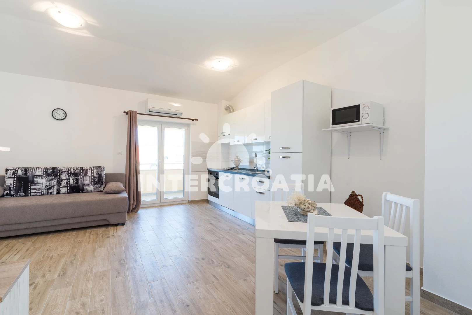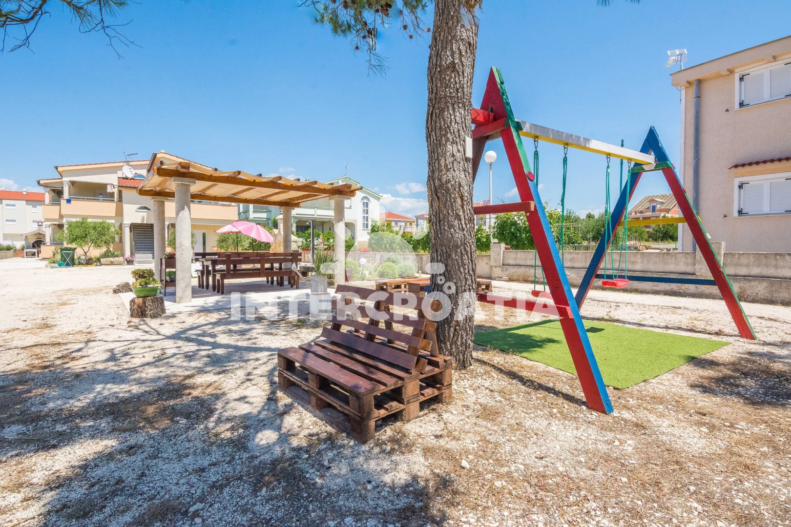 Vzdálenosti: Moře 30 m, pláž 30 m (oblázková a betonové desky), restaurace 20 m, bar 20 m, potápění 500 m, centrum 500 m, pošta 500 m, supermarket 500 m, lékárna 500 m, směnárna 500 m, čerpací stanice 1 km, banka 5 km, ambulance 5 km, diskotéka 5 km, trajekt (Zadar) 25 km, letiště (Zadar) 30 km,