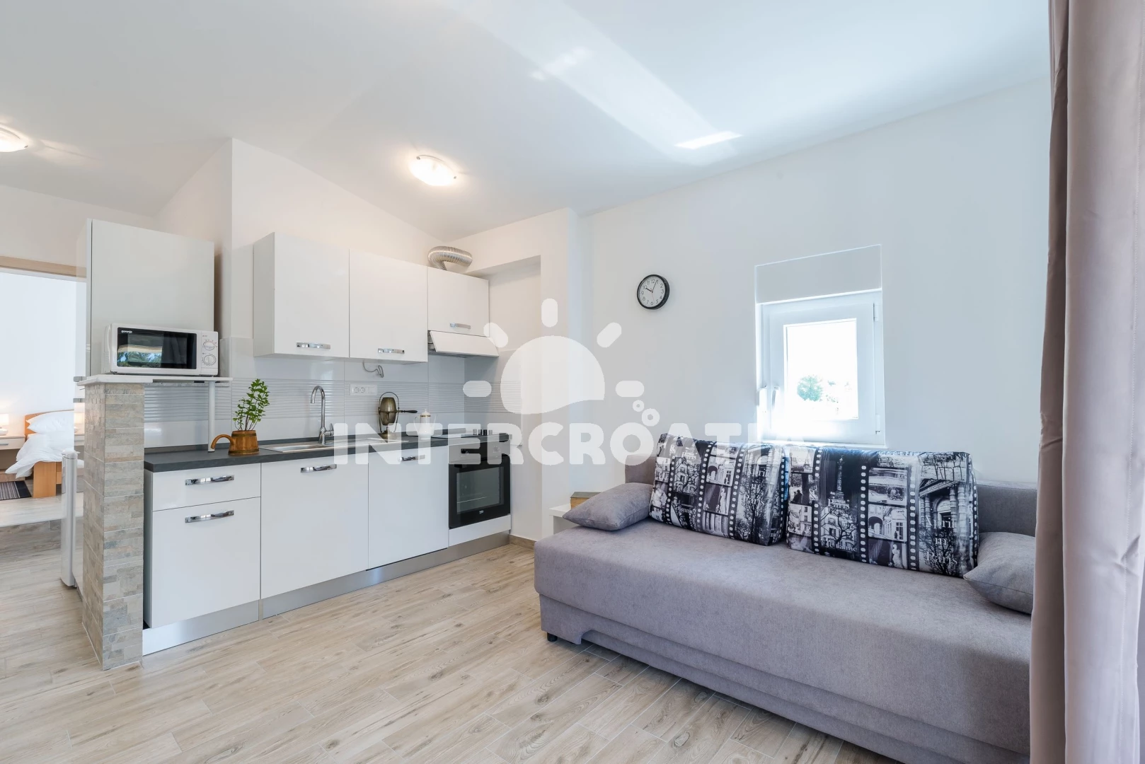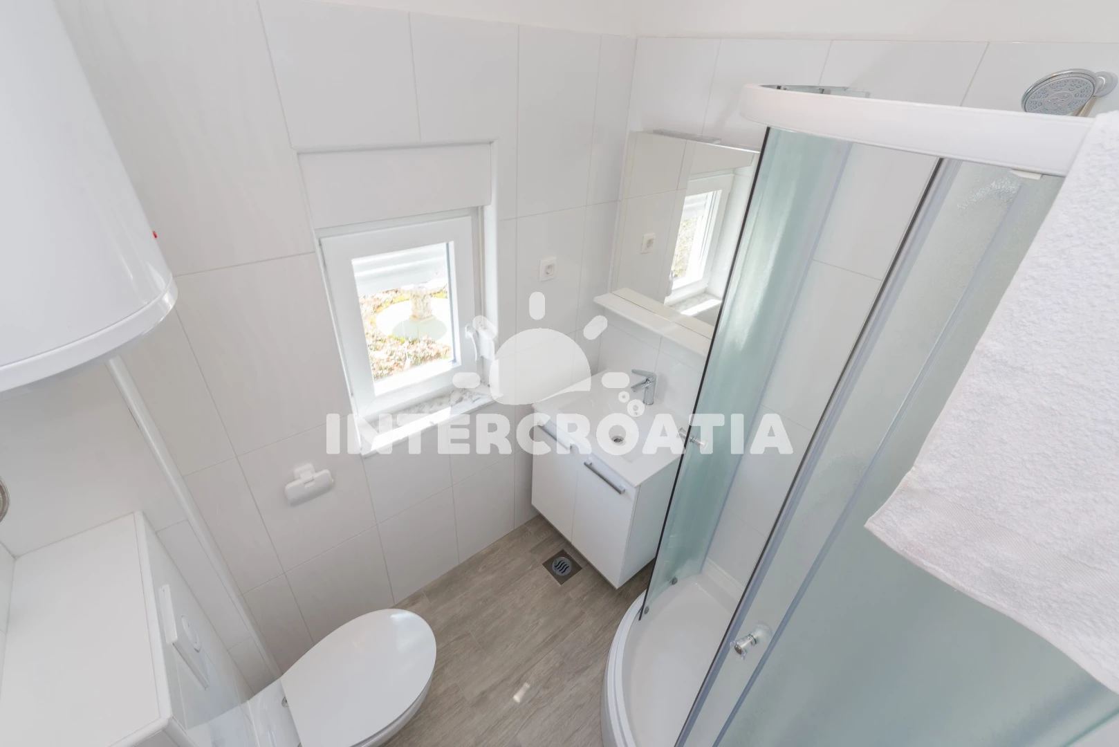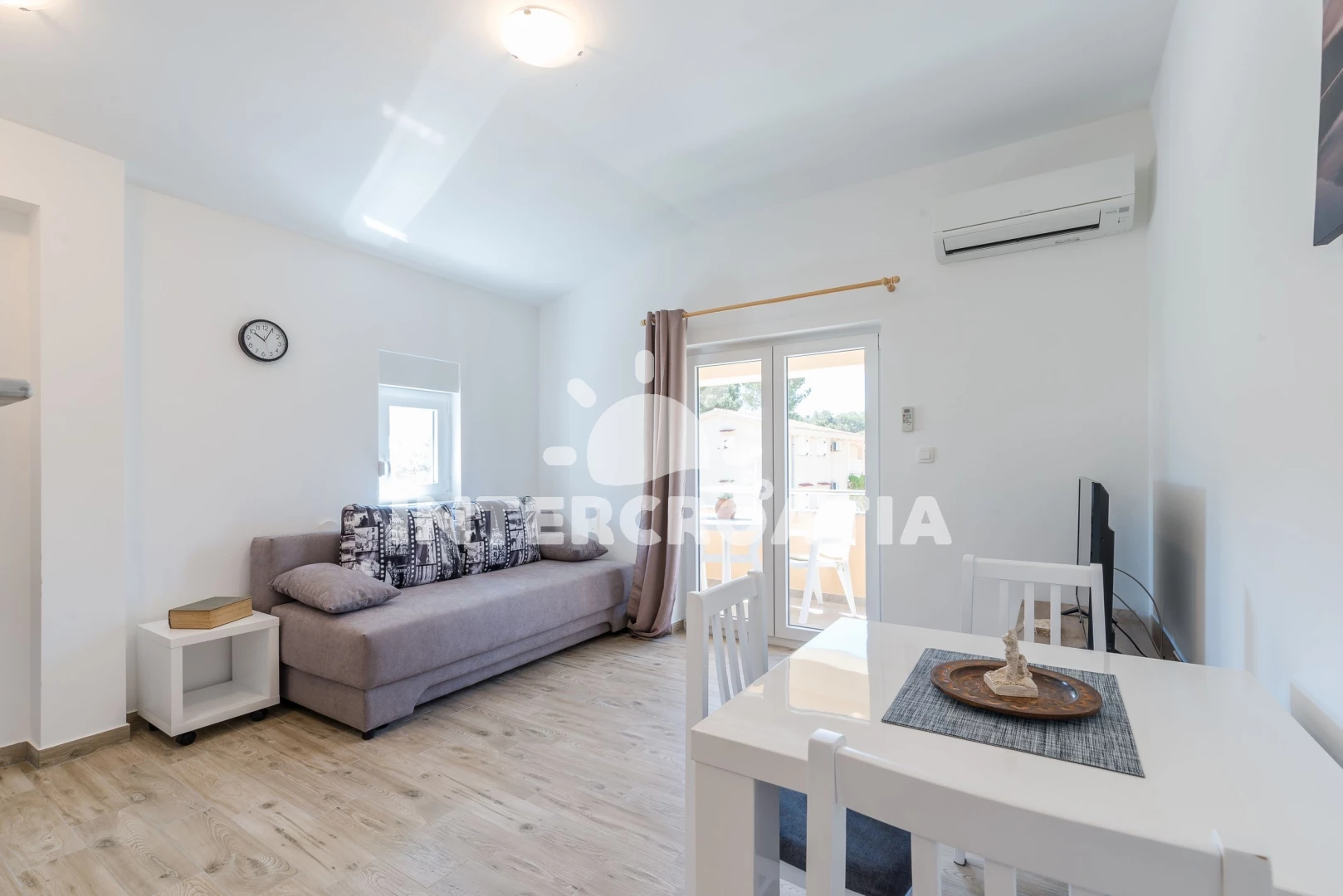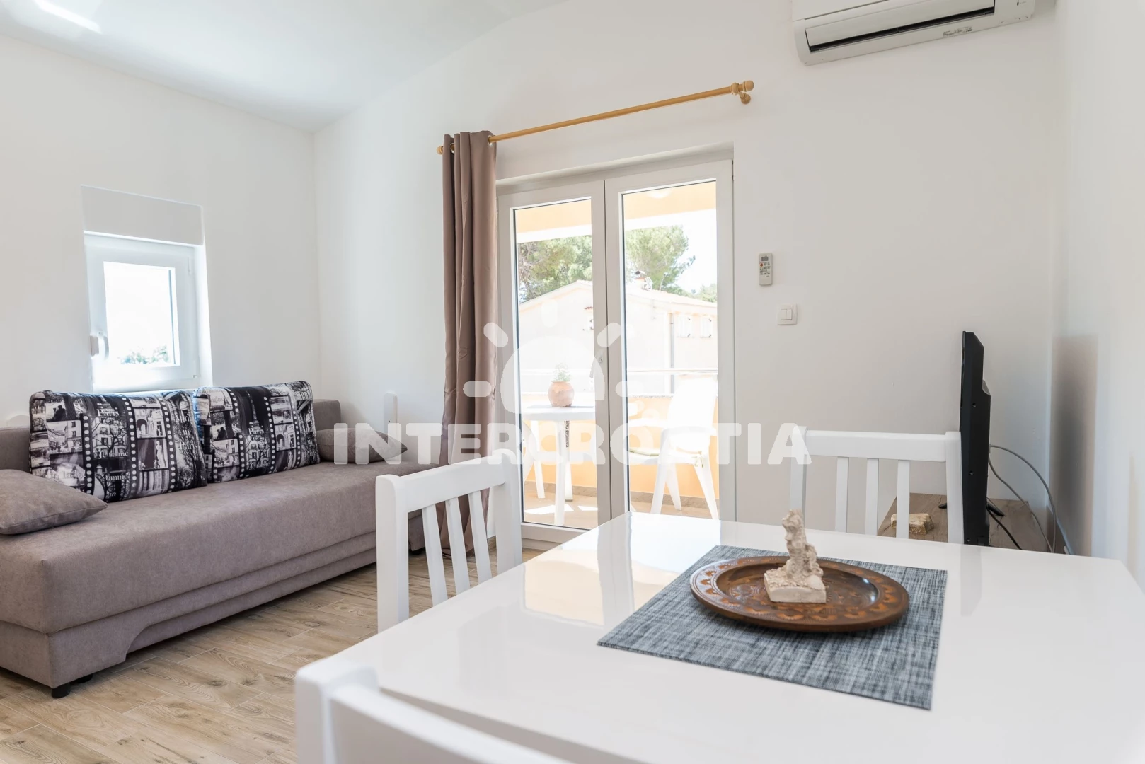 Vzdálenosti: Moře 30 m, pláž 30 m (oblázková a betonové desky), restaurace 20 m, bar 20 m, potápění 500 m, centrum 500 m, pošta 500 m, supermarket 500 m, lékárna 500 m, směnárna 500 m, čerpací stanice 1 km, banka 5 km, ambulance 5 km, diskotéka 5 km, trajekt (Zadar) 25 km, letiště (Zadar) 30 km,