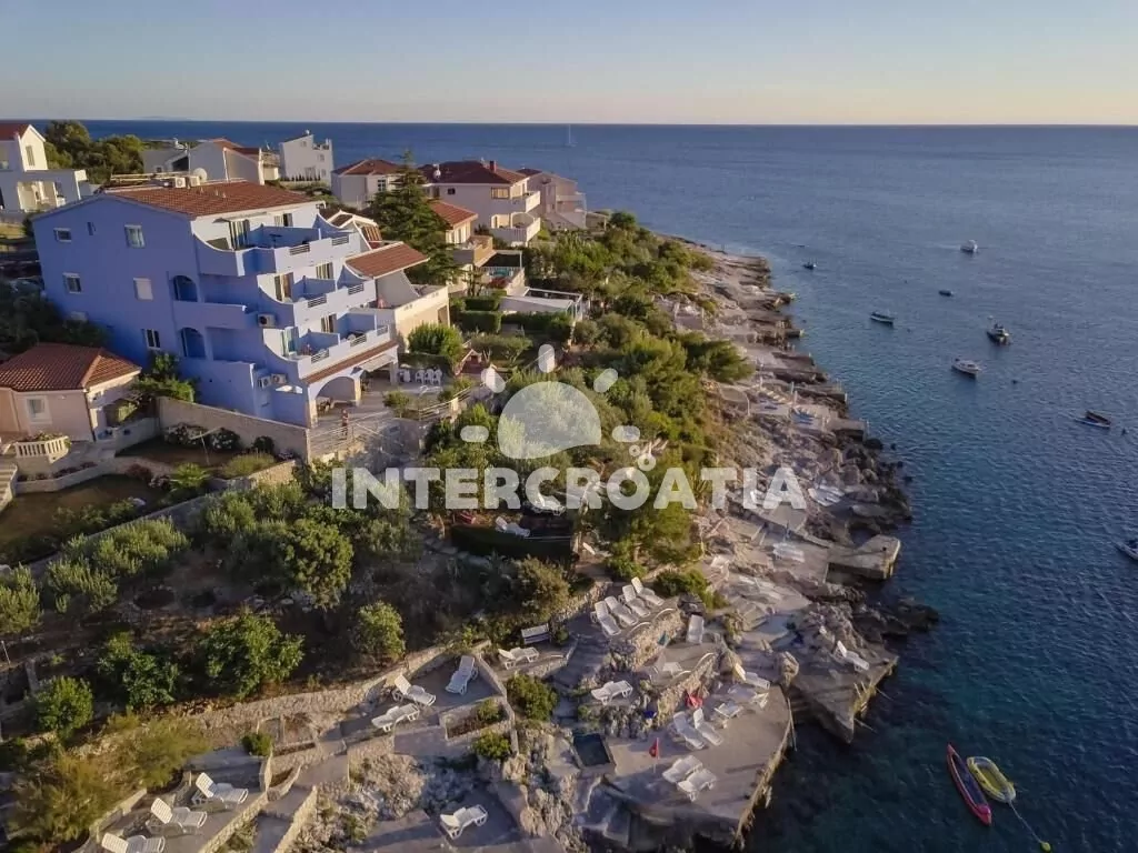 Výborně umístěný dům se nachází přímo u břehu moře a betonové pláže. Dům nabízí ubytování v klimatizovaných apartmánech s lodžiemi a venkovním posezením. K dispozici je společná terasa s posezením a grilem. Parkovací místa pro automobily jsou u domu.