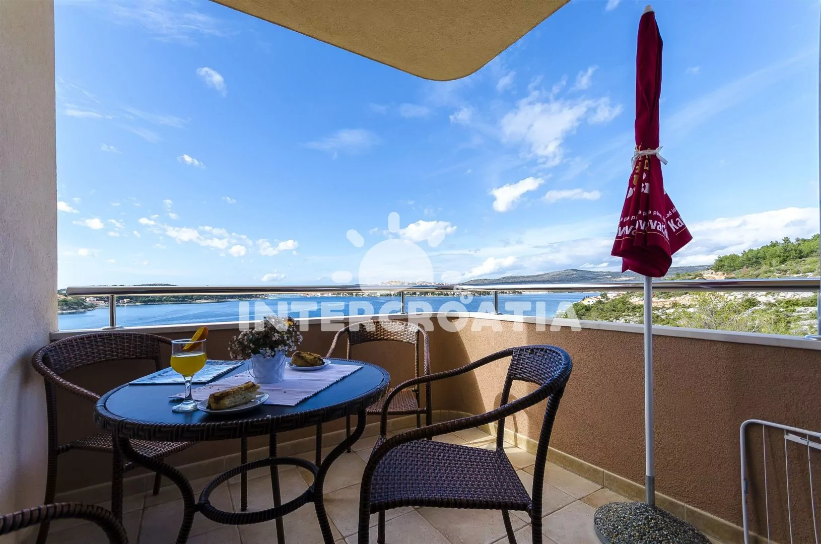 Dvoupatrový apartmánový dům s balkonem, krásným výhledem na moře a velmi krátkou dostupností na pláž.