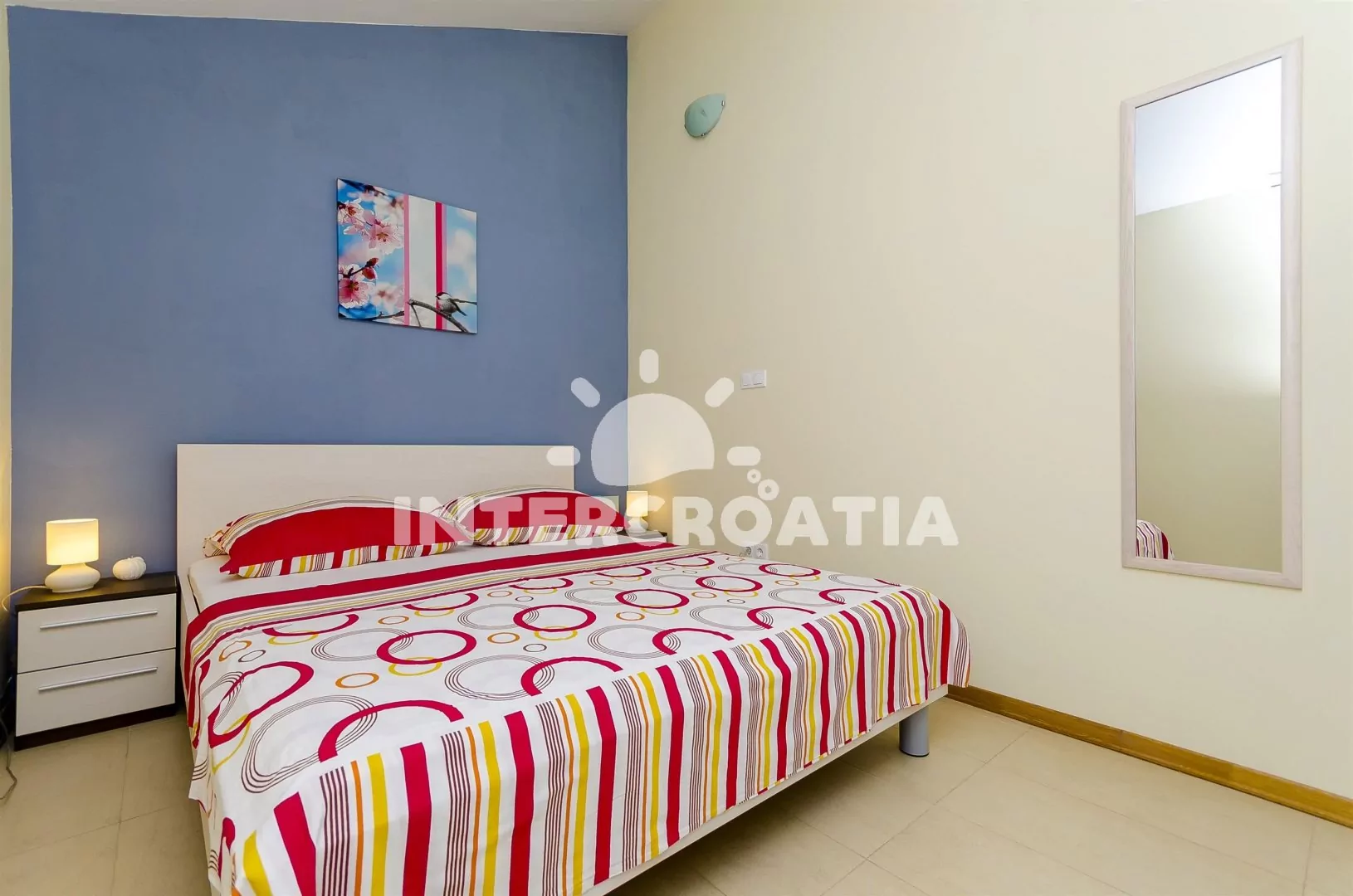 Vkusně a příjemně zařízený apartmán s balkonem, posezením a výhledem na moře, nacházející se v 2. patře domu. Vstup, obývací místnost spojená s kuchyní. Kuchyňská linka s varnou deskou (elektřina/plyn), troubou, lednicí s mrazákem, kávovarem, rychlovarnou konvicí, toustovačem a nádobím. V obývacím pokoji jídelní stůl pro 4 osoby, pohovka (rozložitelná na extra lůžko pro 2 osoby) a LCD televize se satelitem. Ložnice s dvoulůžkem. Koupelna se sprchovým koutem, umyvadlem a wc. Hosté mají k dispozici balkon s posezením, krásným výhledem na lagunu a v zahradě gril. Parkování u objektu.