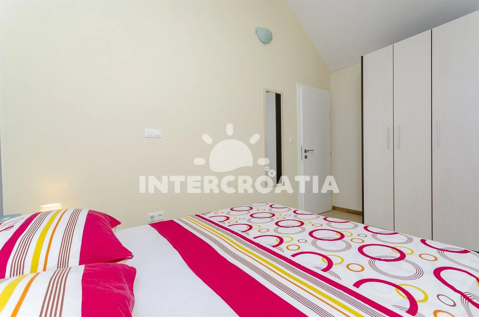 Třípodlažní apartmánový dům s balkonem, pěkným výhledem na moře a minimální vzdáleností na pláž.