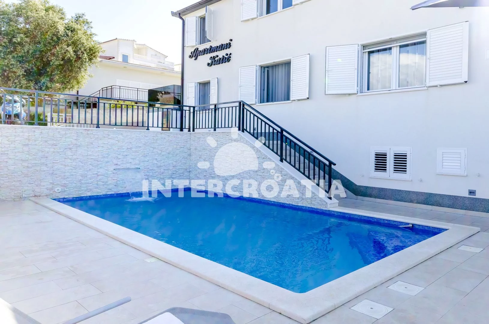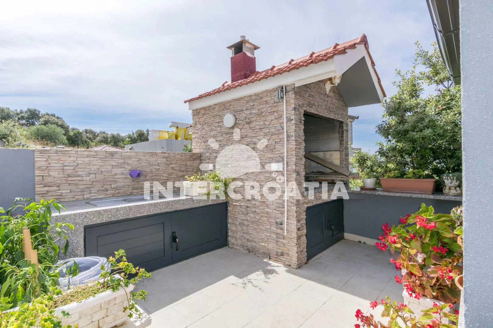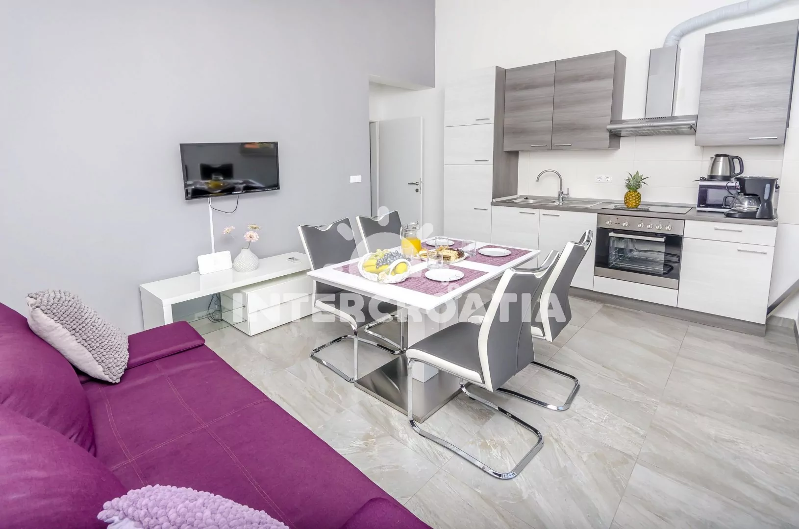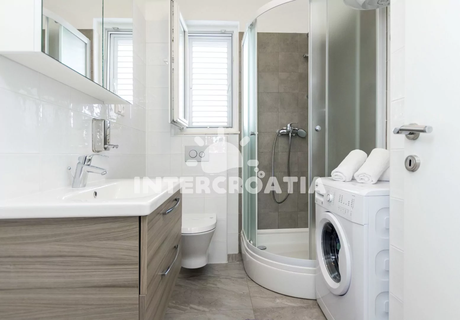 Moderně zařízený apartmán v přízemí vily, pro 3 až 4 osoby s výhledem na moře a venkovním posezením. Obývací pokoj spojený s kuchyní. Kuchyňská linka s varnou deskou, digestoří, vestavěnou troubou,…