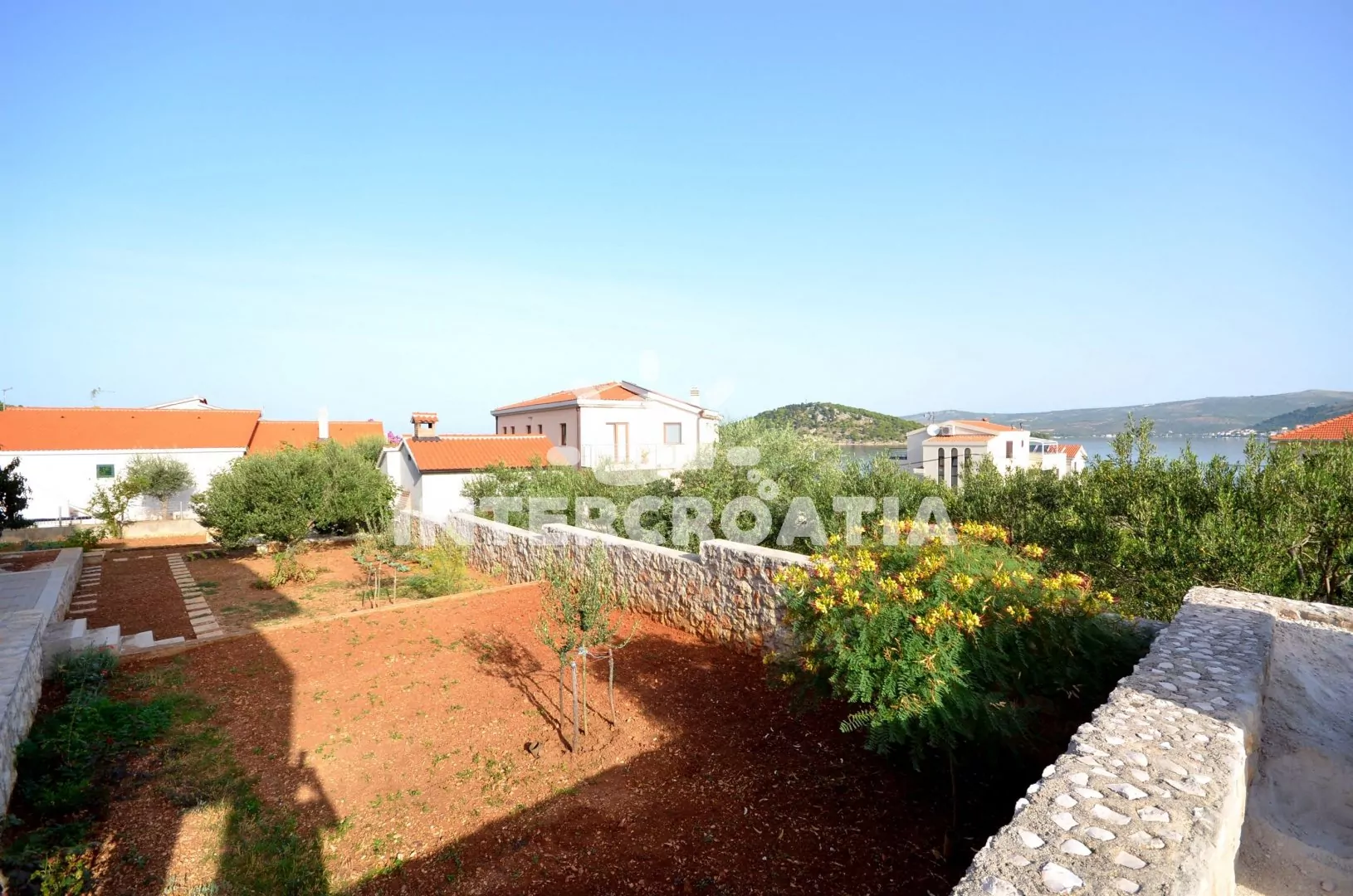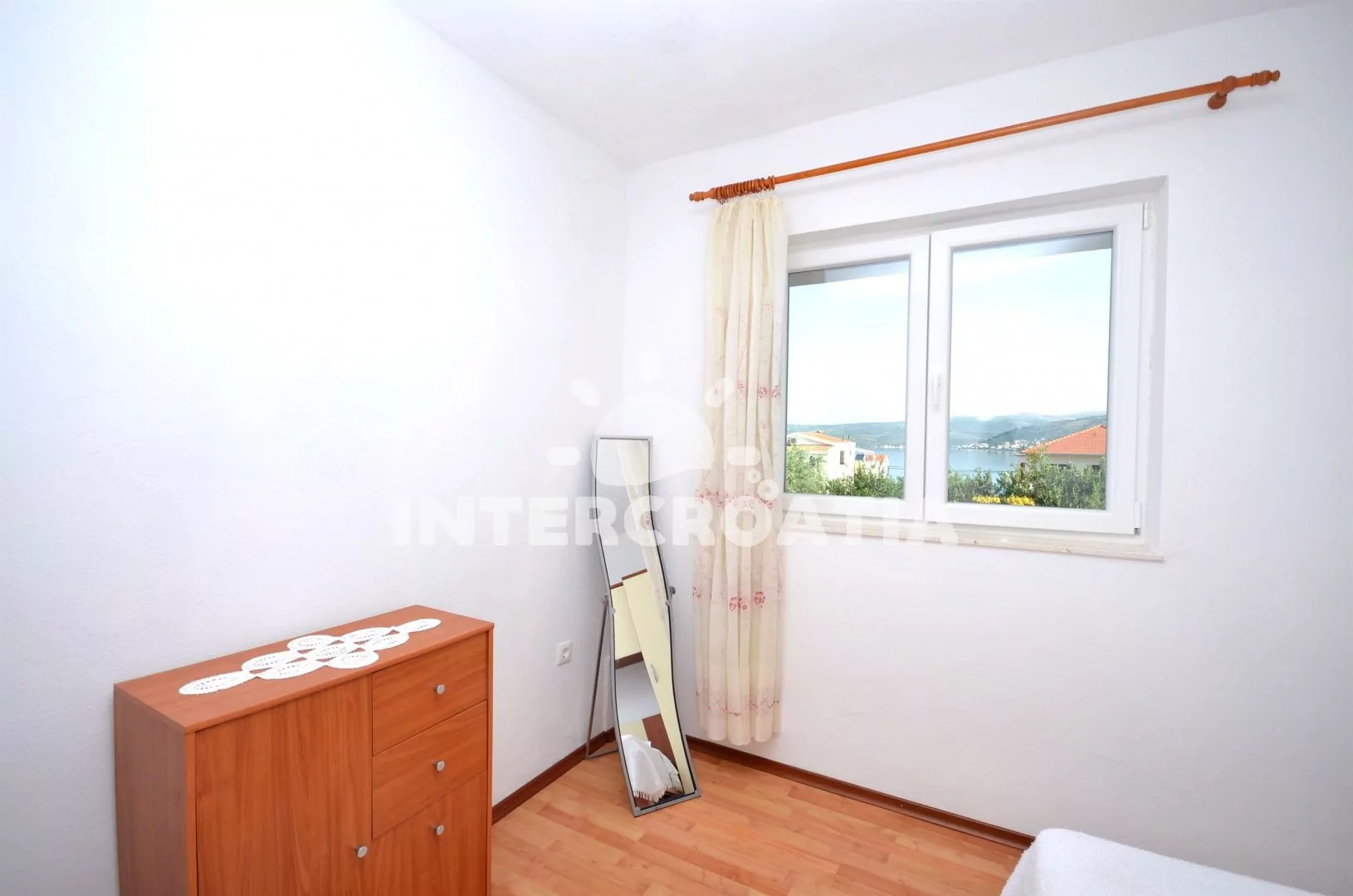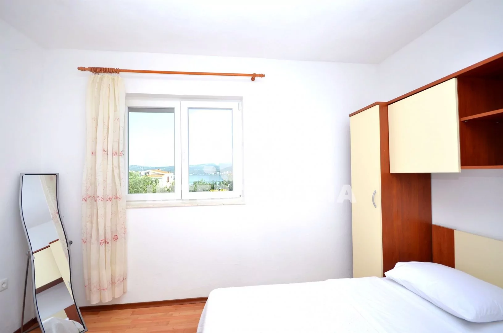 Apartmán se třemi pokoji a terasou s výhledem na moře, nacházející se ve zvýšeném přízemí. Obývací místnost spojená s kuchyní. Kuchyňská linka se sporákem, troubou, mikrovlnnou troubou, lednicí s mrazákem a nádobím. V obývací místnosti jídelní stůl pro 4 osoby, pohovka (rozložitelná na extra lůžko pro 2 osoby) a televize. Dvě ložnice, každá s dvoulůžkem. Koupelna se sprchovým koutem, umyvadlem a wc. Hosté mají k dispozici balkon s posezením a v zahradě společný gril. Parkování u objektu.