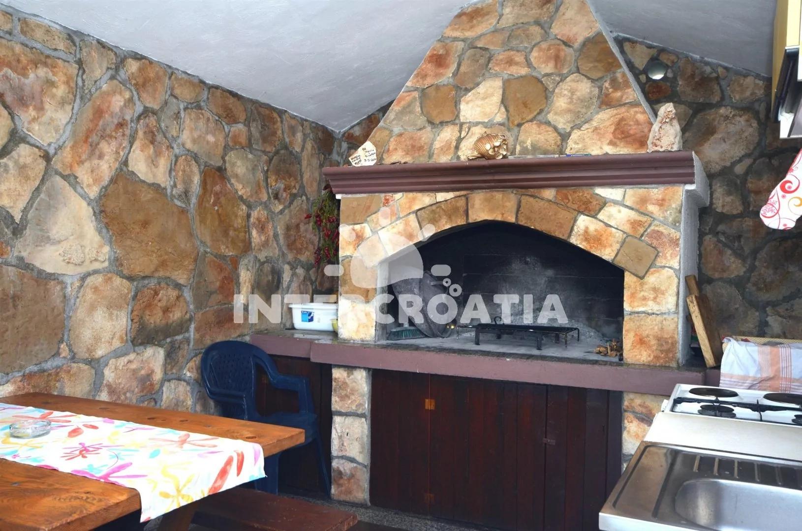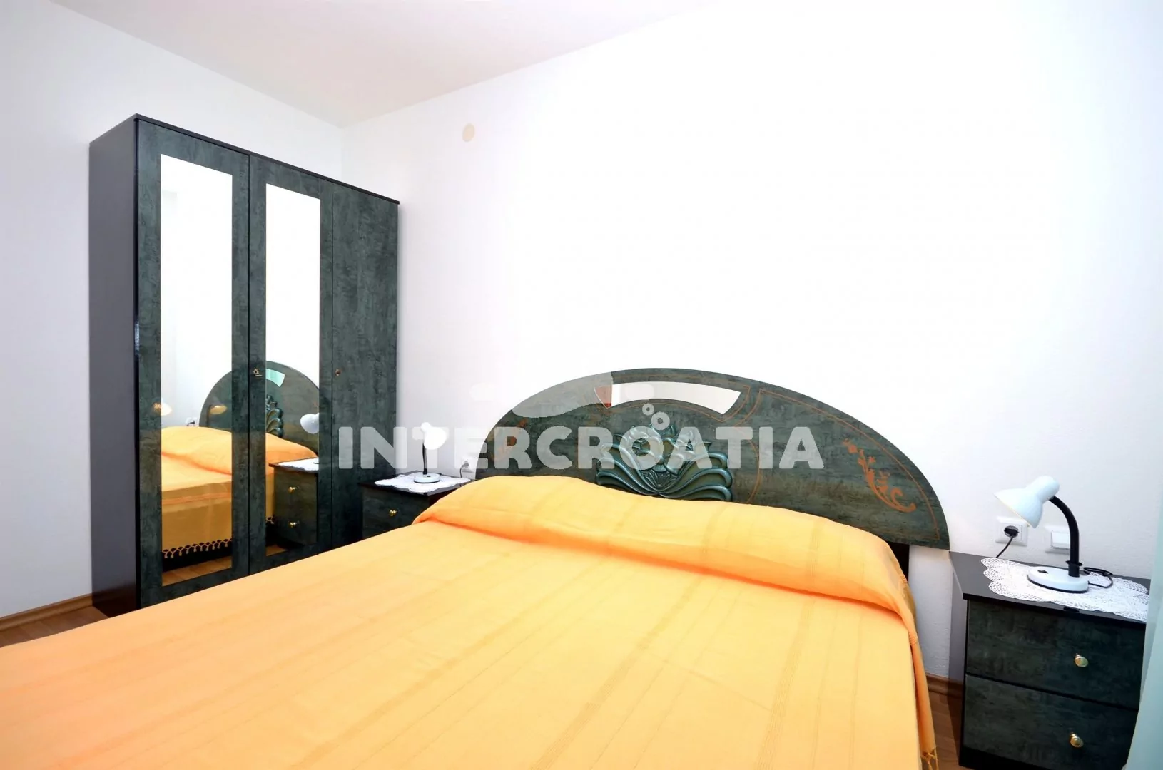 Dvoupokojový apartmán s balkonem a výhledem na moře, nacházející se v 1. patře domu. Obývací místnost spojená s kuchyní. Kuchyňská linka s dvouplotýnkovým elektrickým vařičem, lednicí s mrazákem a nádobím. V obývací místnosti jídelní stůl pro 4 osoby, pohovka (rozložitelná na extra lůžko pro 2 osoby) a televize. Ložnice s dvoulůžkem. Koupelna se sprchovým koutem, umyvadlem a wc. Hosté mají k dispozici balkon s posezením a v zahradě společný gril. Parkování u objektu.