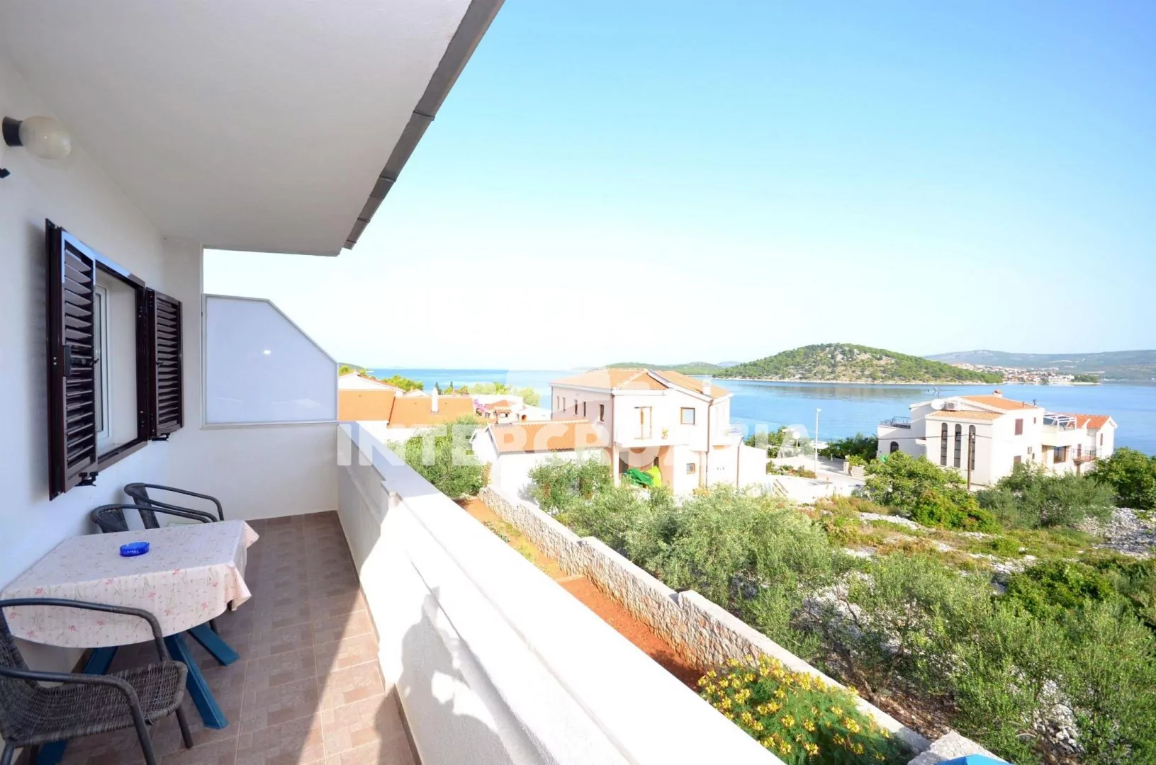 Patrový apartmánový domek s balkonem, výhledem na moře a krátkou pěší vzdáleností na pláž.