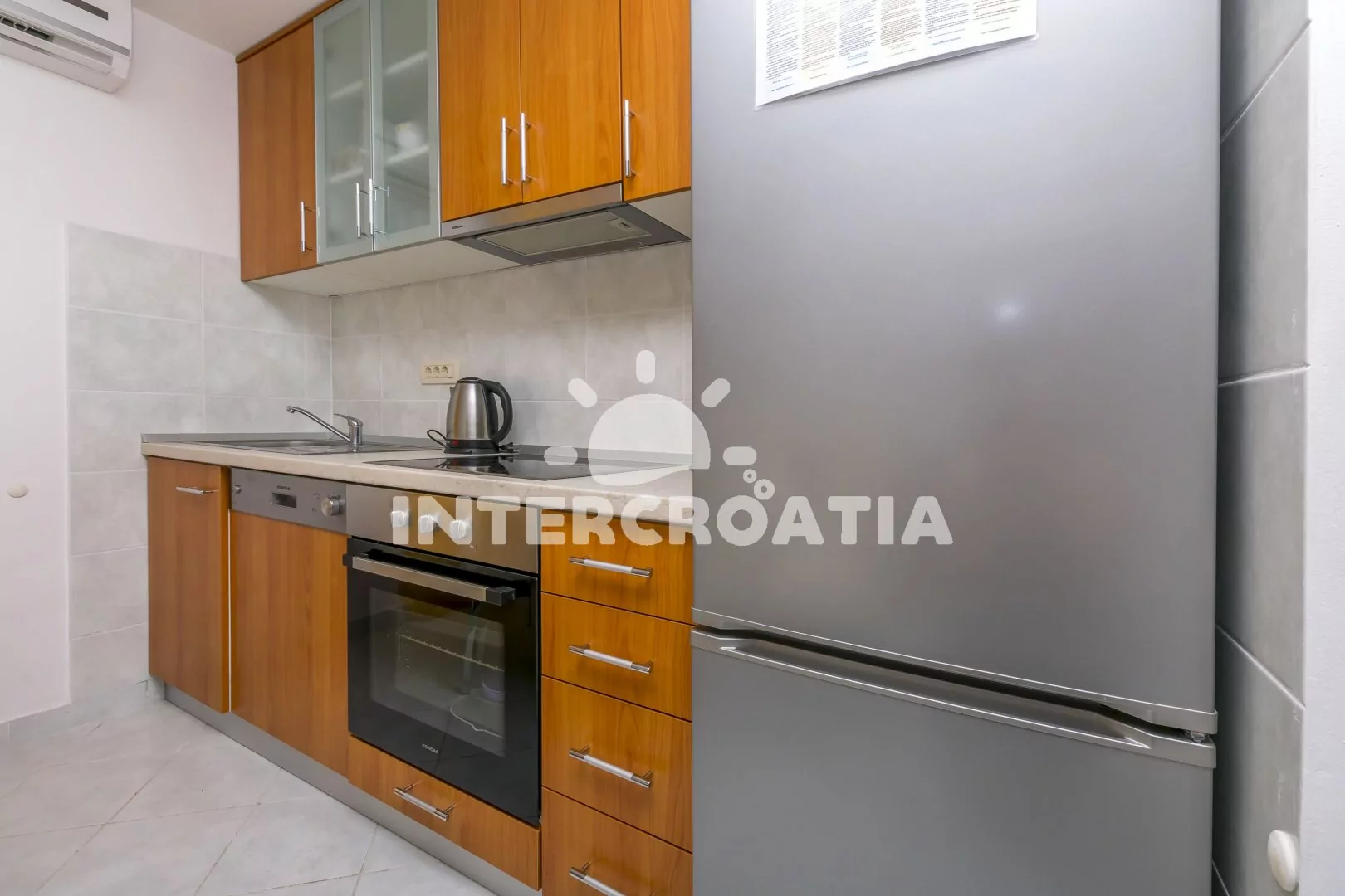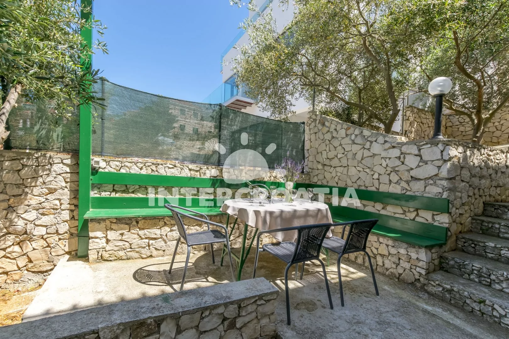 Vzdálenosti: Moře 20 m, pláž (oblázky, skalky a betonové desky) 20 m, obchod 600 m, centrum 600 m, pošta 600 m, lékárna 600 m, zdravotní středisko 13 km, restaurace 600 m, směnárna 600 m, banka 13 km, muzeum 25 km, bar 600 m, půjčovna kol 13 km, půjčovna motorových člunů 13 km, potápěčský klub 600 m, diskotéka 13 km, čerpací stanice 13 km, veřejná doprava 8 km, trajekt 45 km (Split), letiště 26 km (Split).