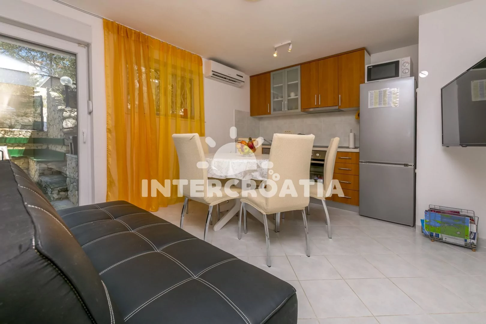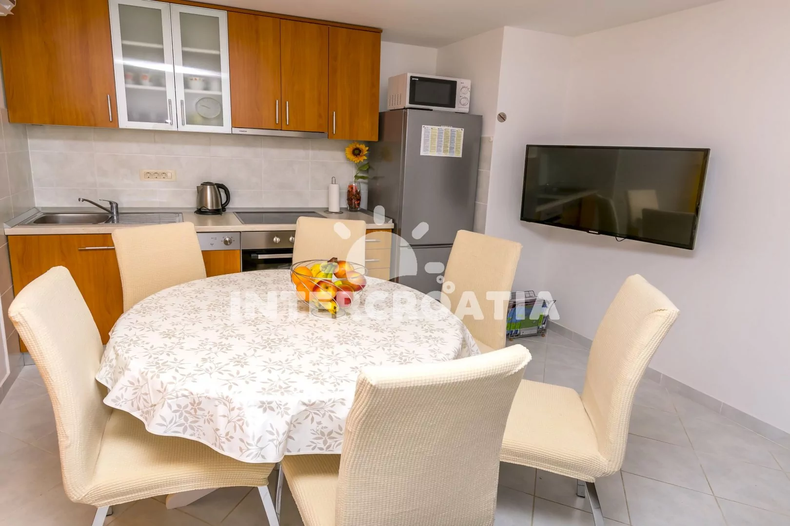 Moderně zařízený čtyřpokojový apartmán pro až 6 osob s výhledem na moře, nachází se v přízemí vilky. Obývací pokoj je spojený s kuchyní. Kuchyňská linka je vybavena sklokeramickou varnou deskou,…