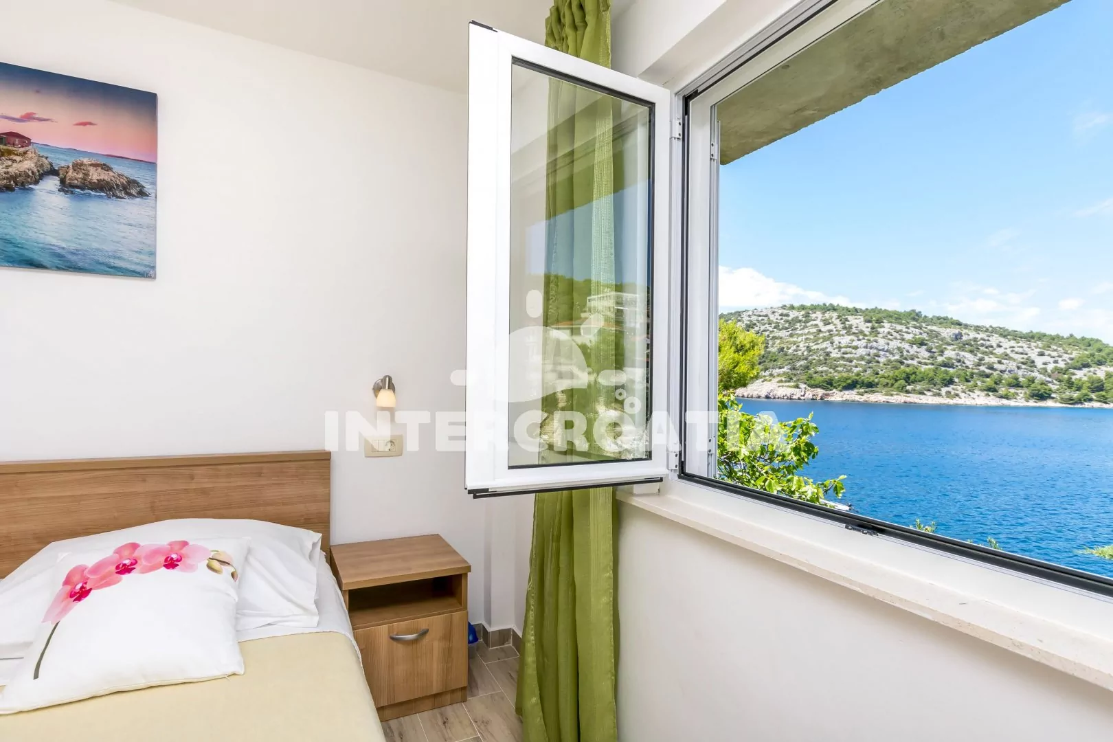 Vilka přímo u břehu moře s malou a klidnou pláží, disponuje terasou s posezením, grilem a výhledem na moře. Hostům je k dispozici parkování u objektu.