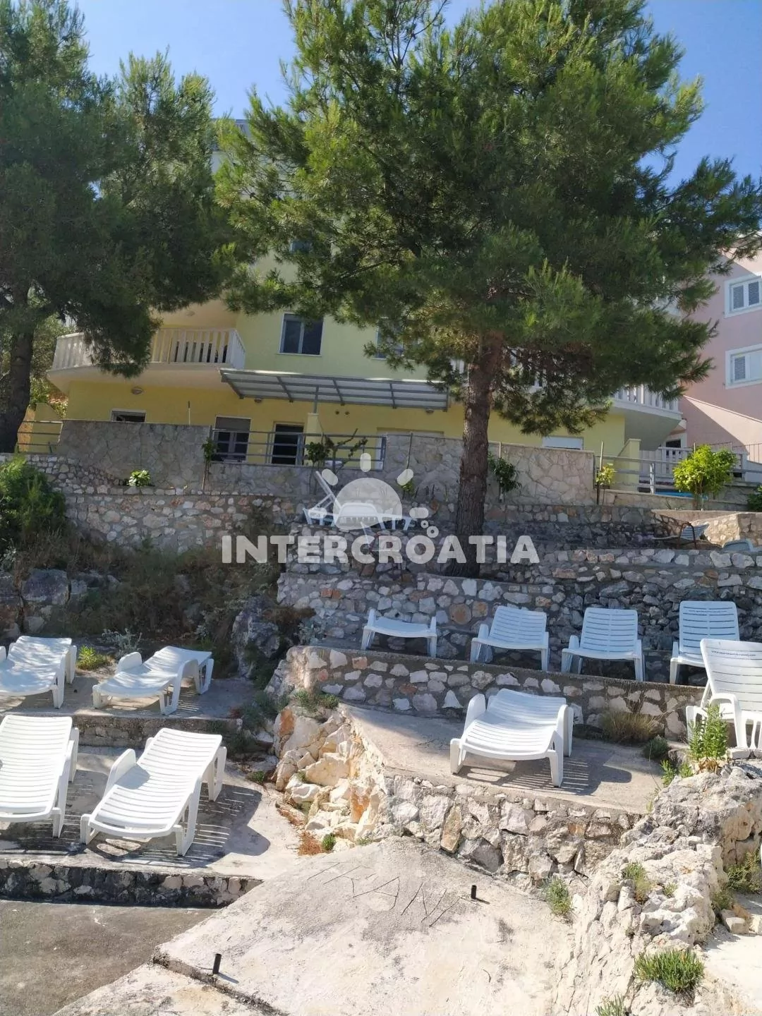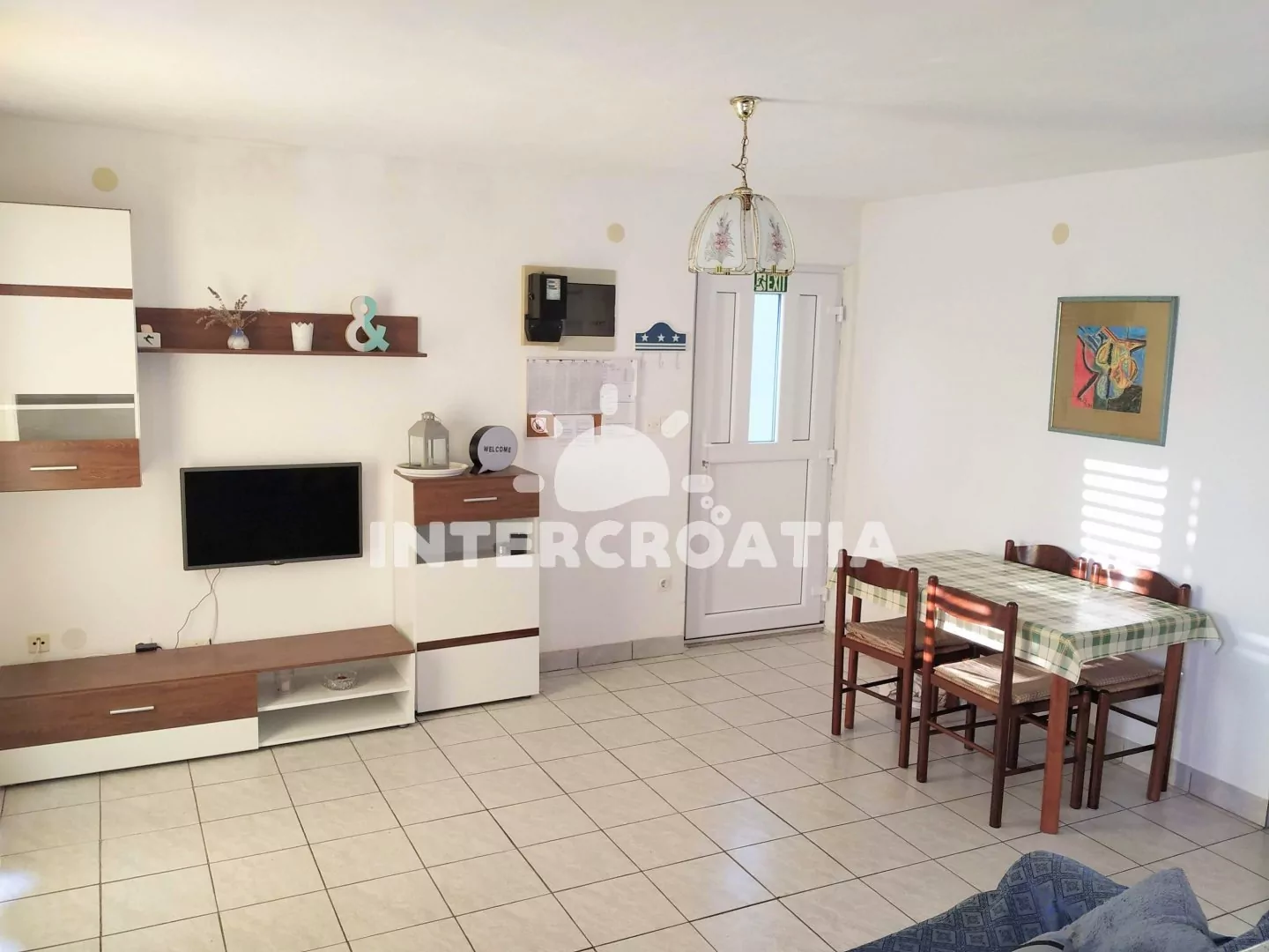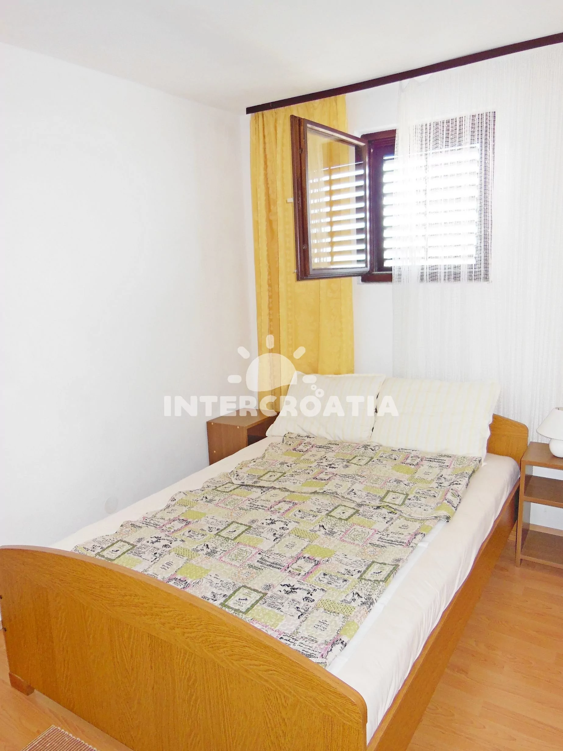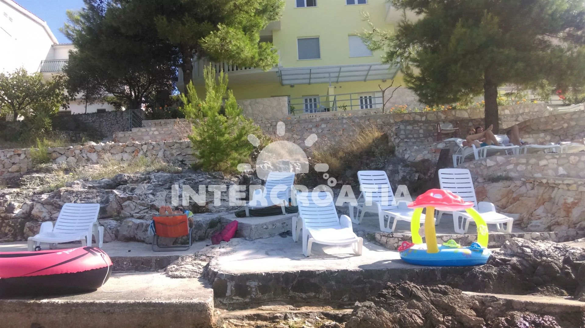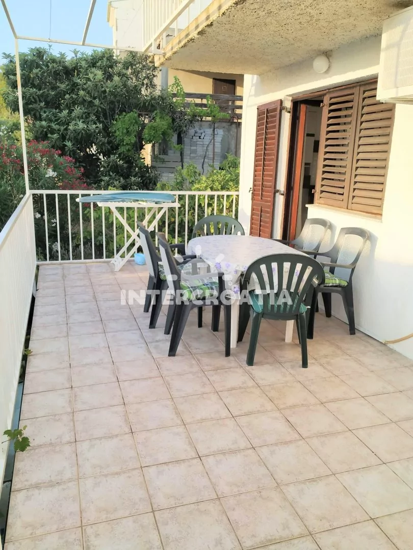 Apartmán pro 4 osoby, nachází se v přízemí a disponuje terasou s venkovním posezením a výhledem na moře. Obývací pokoj je spojený s kuchyní. Kuchyňská linka se sporákem, troubou, nádobím a lednicí s mrazákem. Obývací pokoj s jídelním stolem pro 4 osoby, pohovkou, televizí, klimatizací a vstupem na terasu. První ložnice je vybavena s jedním dvoulůžkem. Druhá ložnice s dvěma jednolůžky. Koupelna s vanou, sprchovou zástěnou, umyvadlem a wc. Hostům je k dispozici stolní tenis a parkování u objektu zdarma.